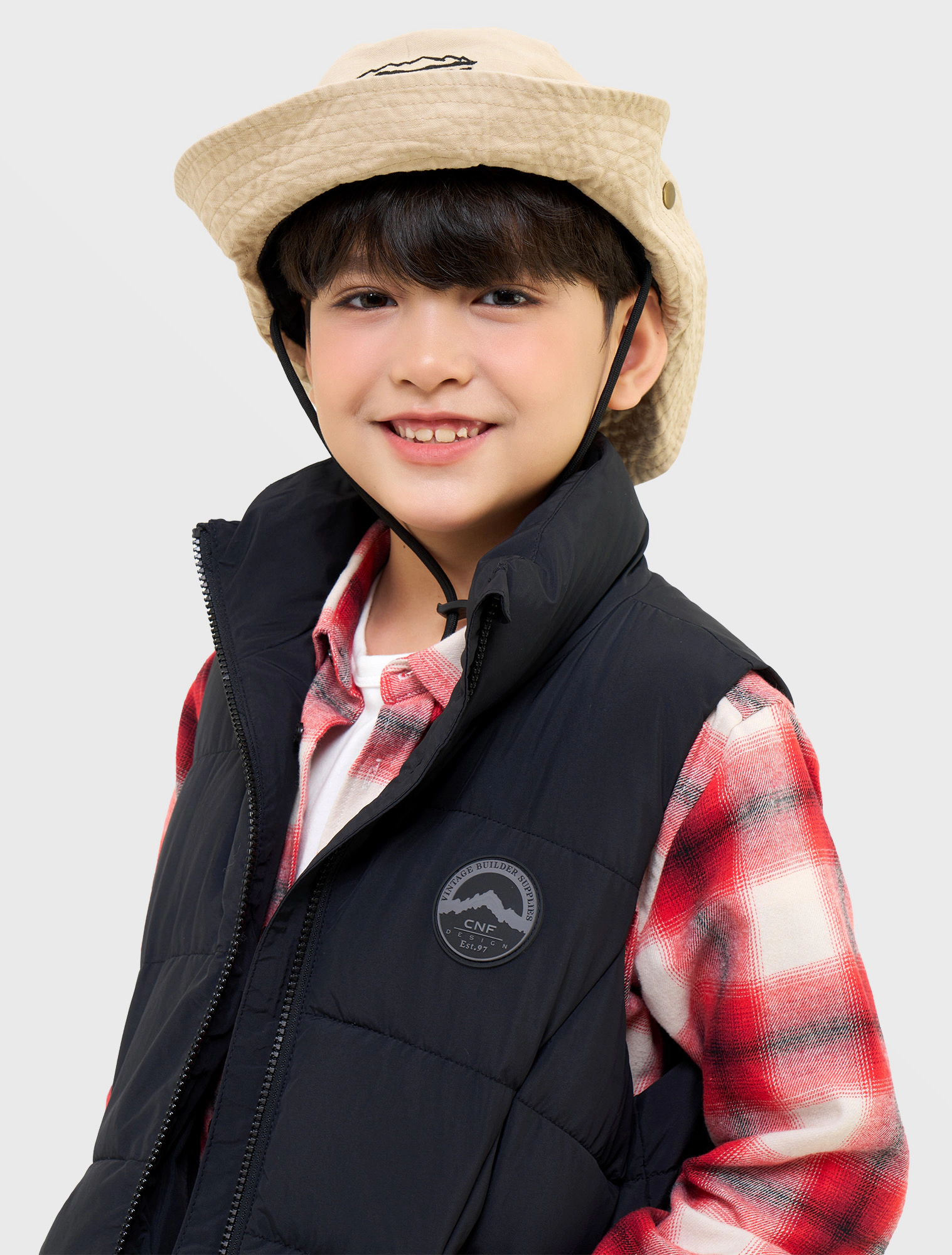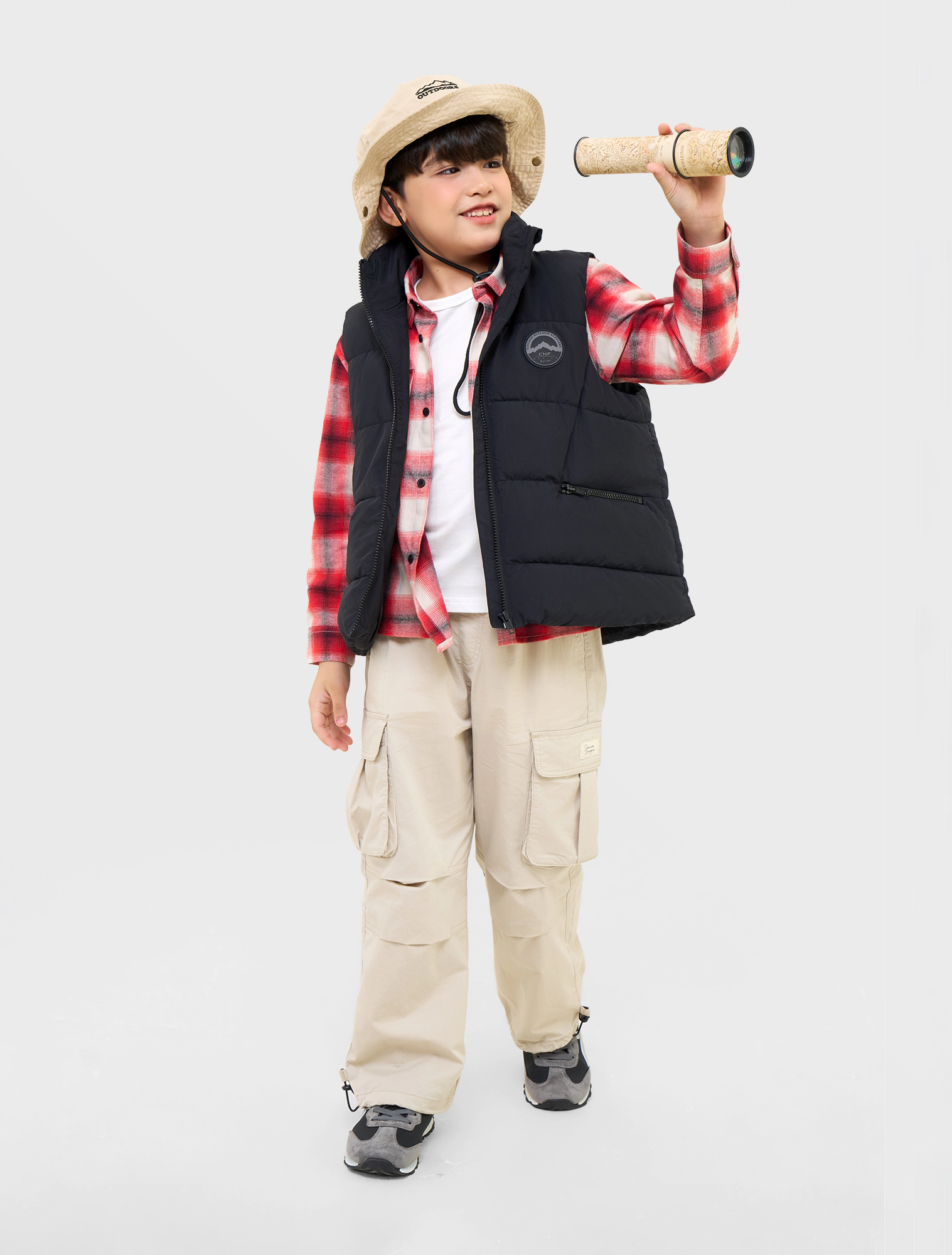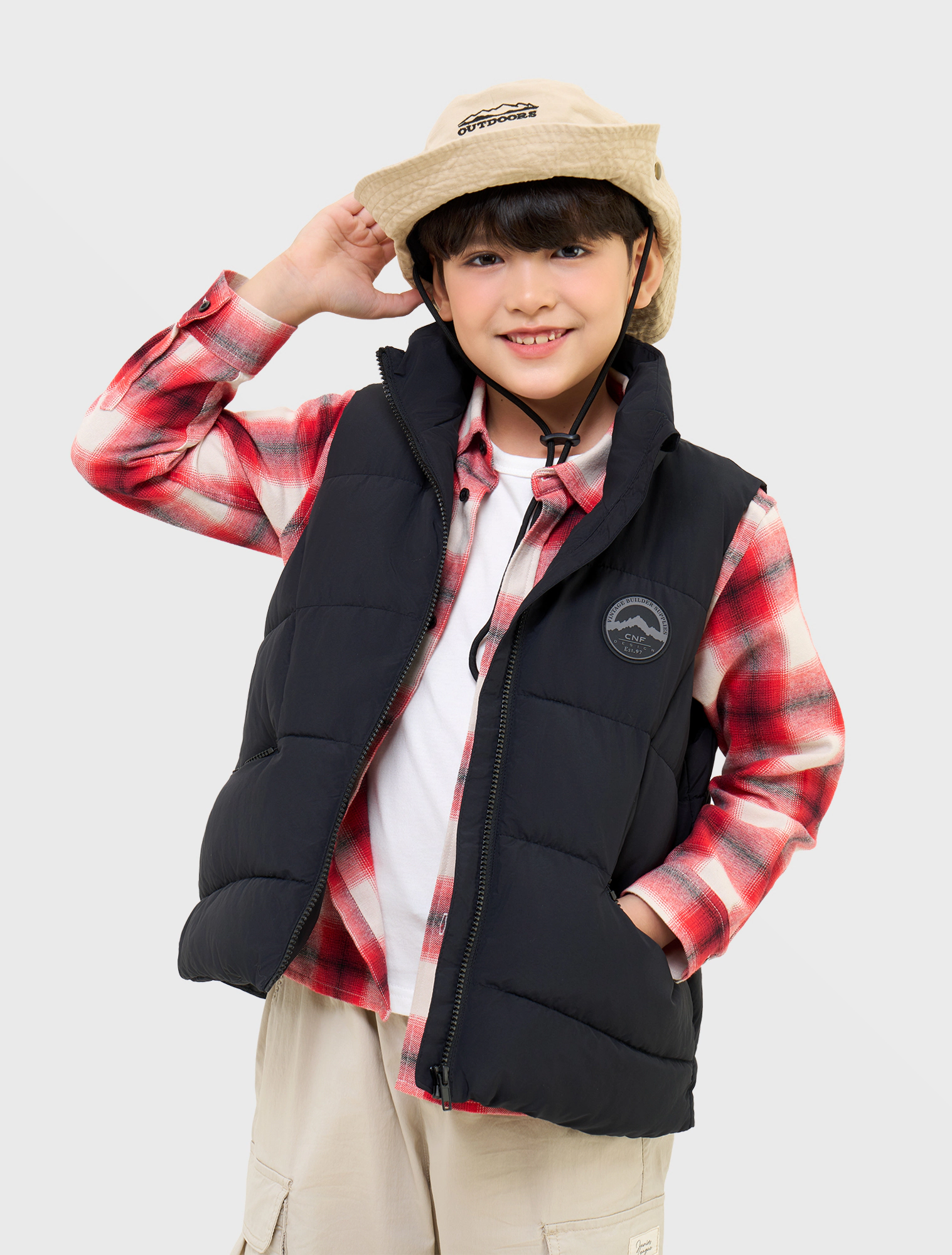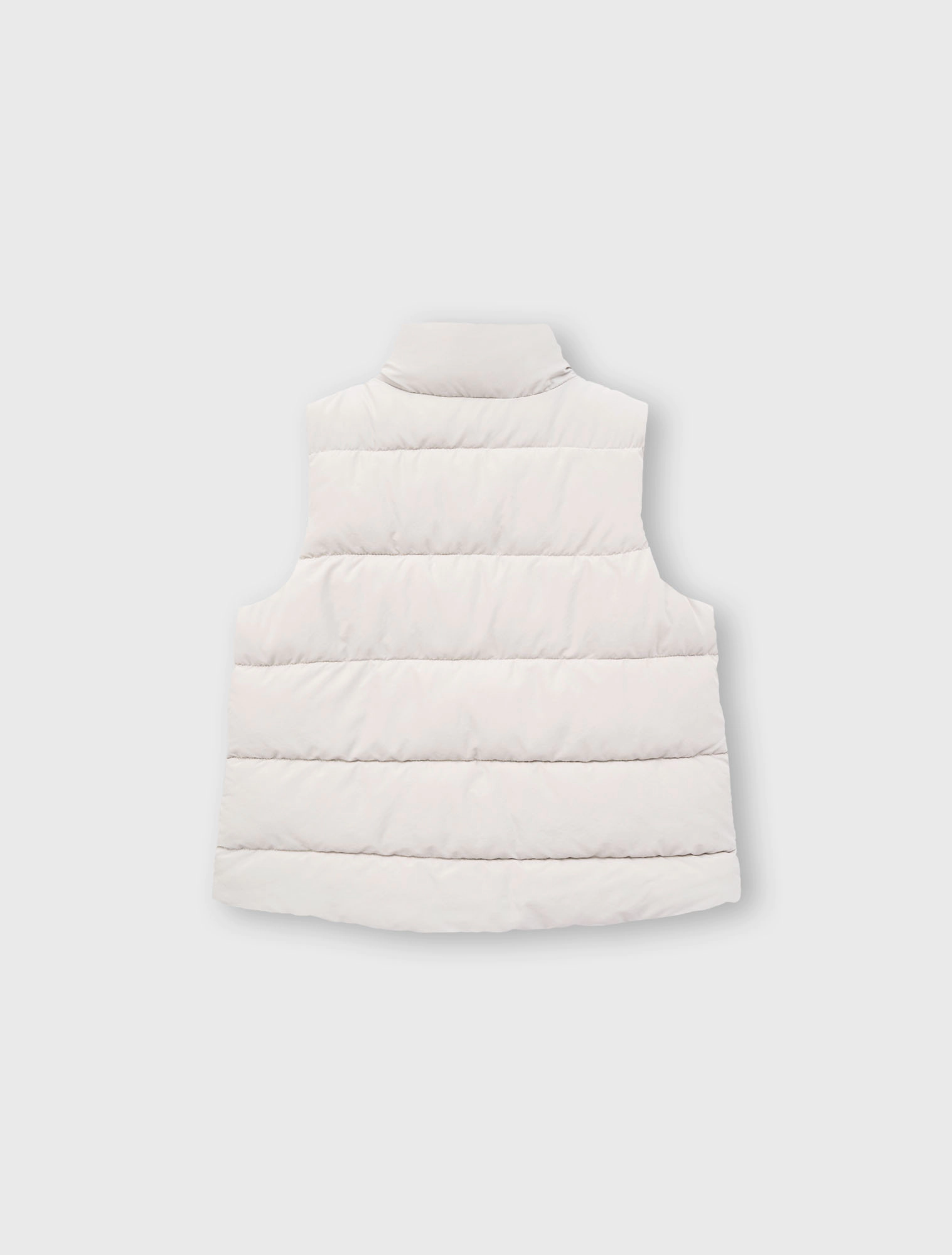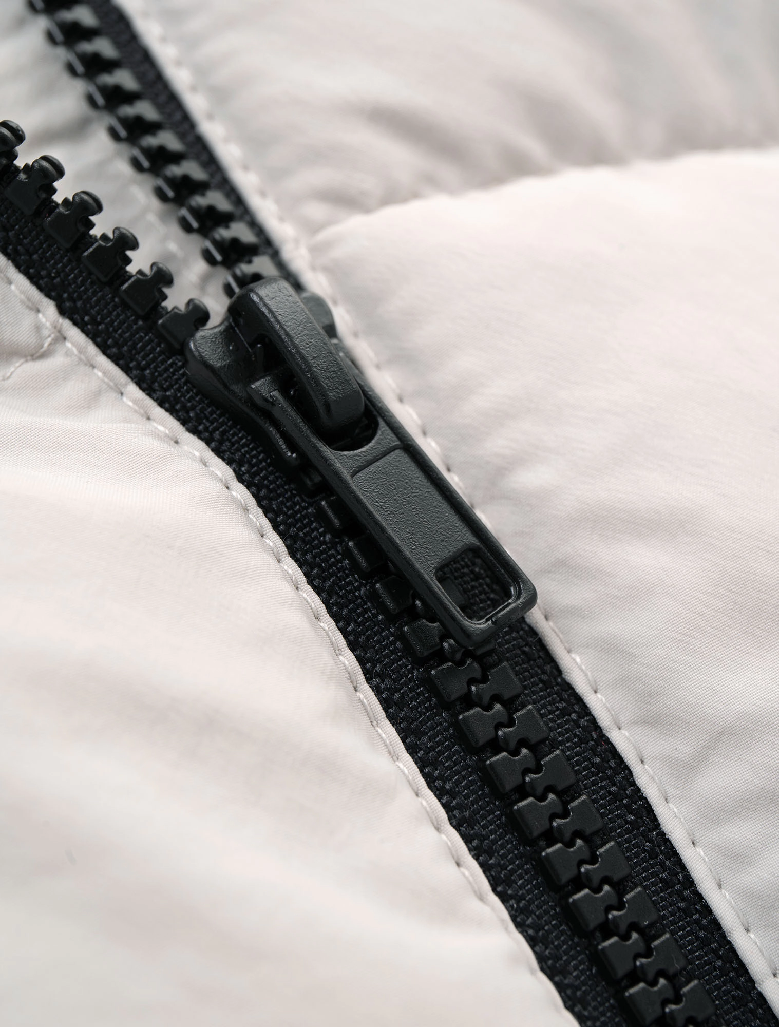 Áo gilet chất liệu vải đặc biệt chống thấm nước, có cổ cao, tay sát nách. Cài khóa kéo phía trước. Có hai túi kéo khóa phía trước, đính nhãn cao su trang trí ở bên.