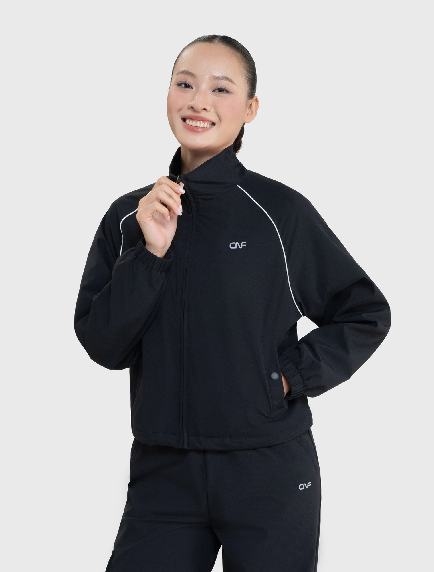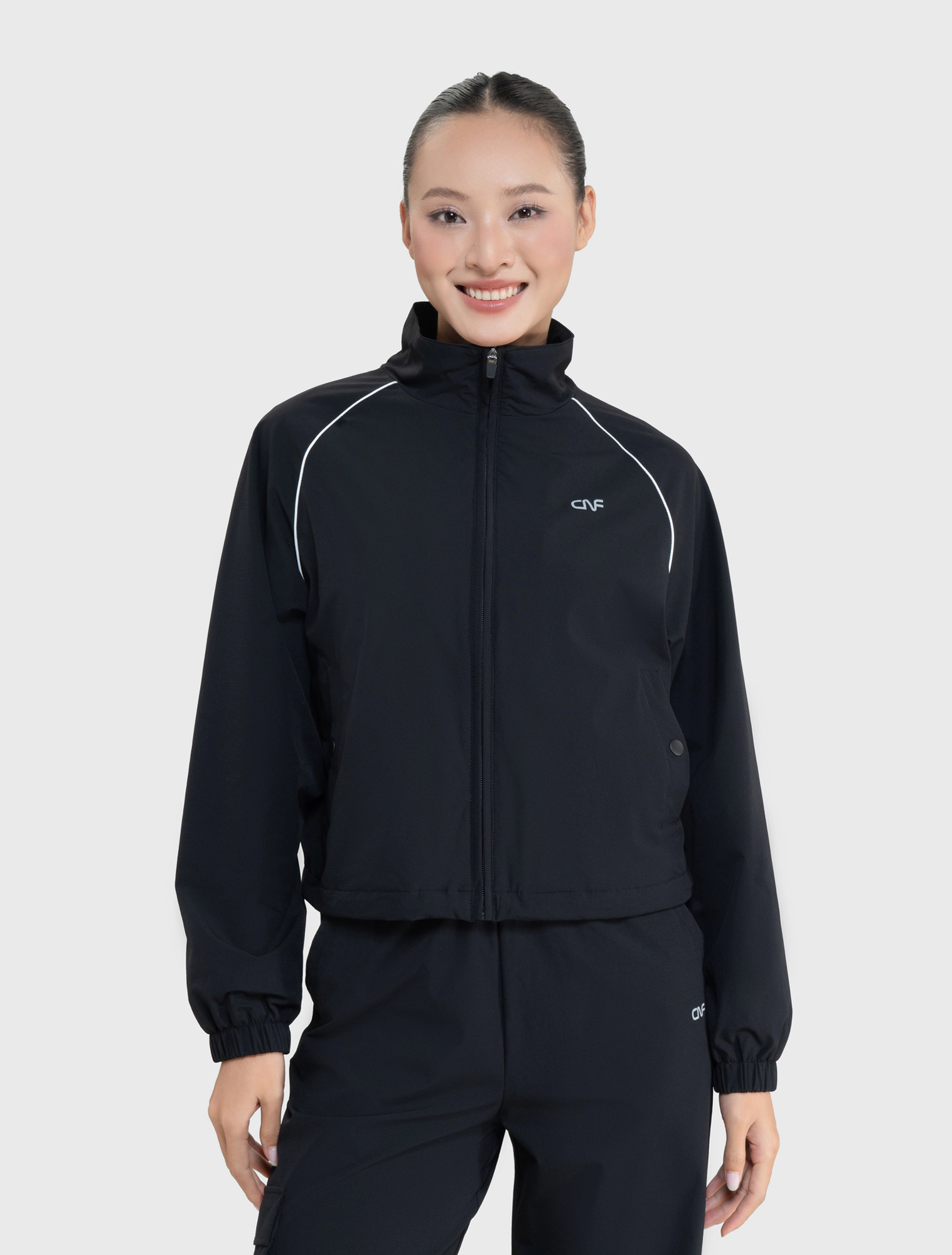 Áo khoác active nữ phom regular. Điểm nhấn đồ họa tinh tế dành riêng cho đồ active. Vải có tính năng cản gió nên phù hợp với nhiều hoàn cảnh sử dụng ngoài trời trong thời tiết lạnh