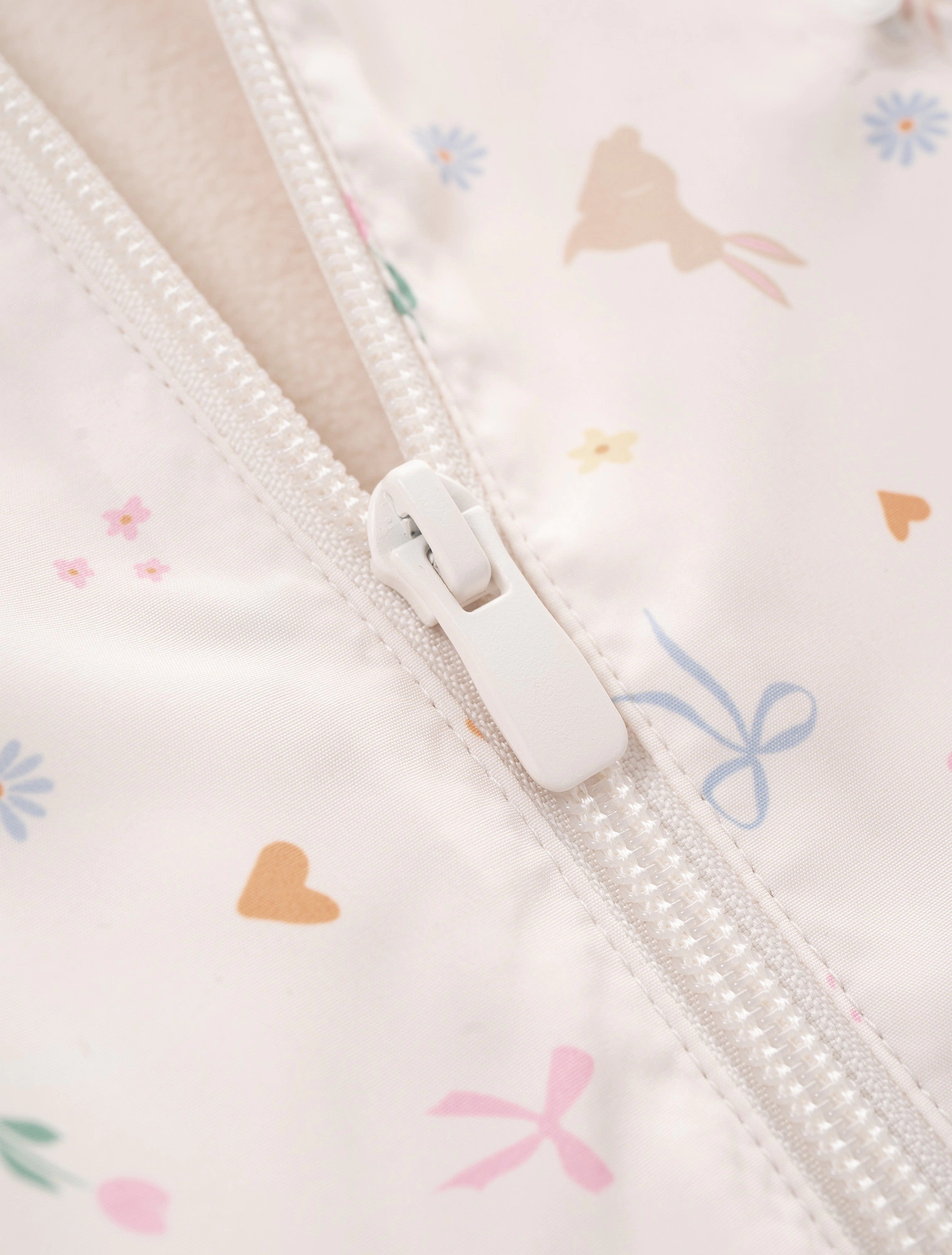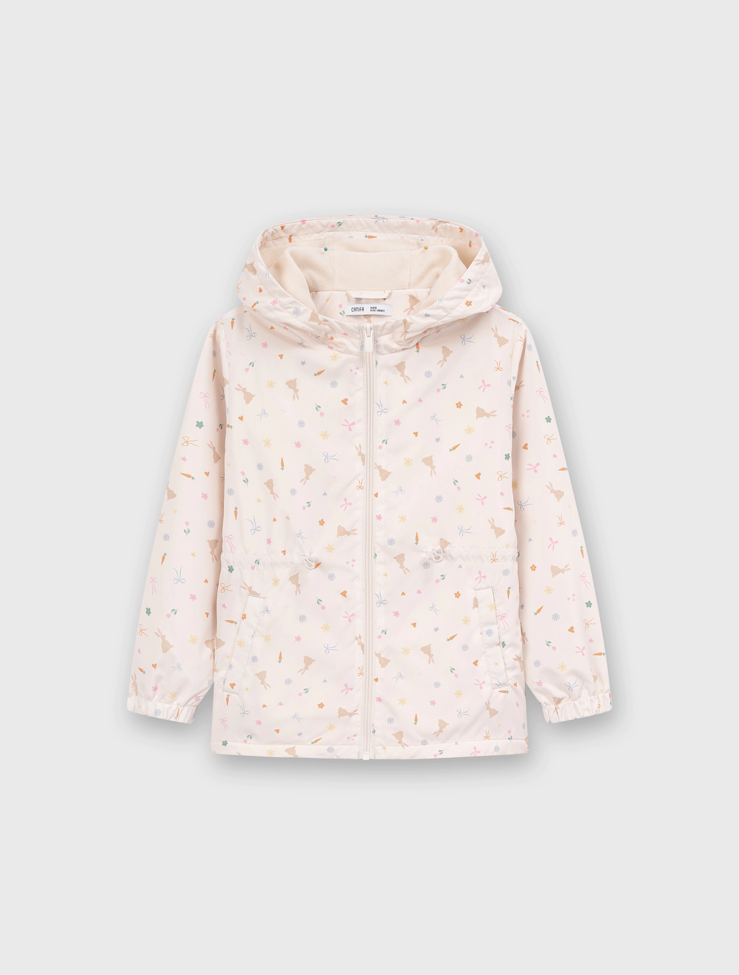 Áo khoác gió có mũ bé gái. Phom dáng cơ bản dễ mặc. Mặt trong lót nỉ ấm áp. Màu sắc tươi sáng, họa tiest dễ thương