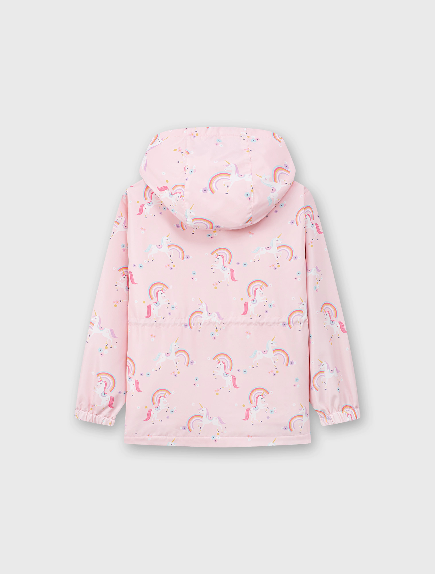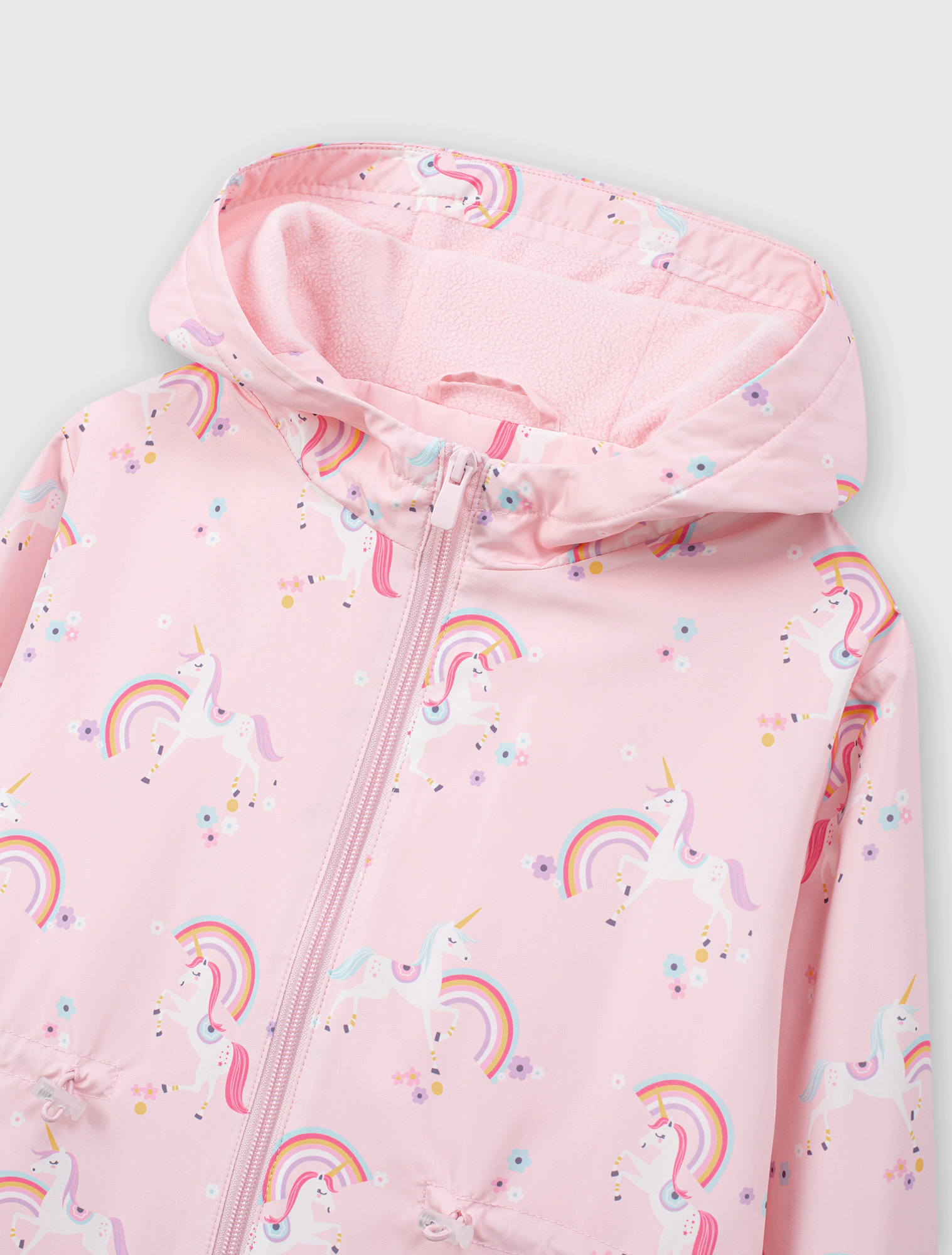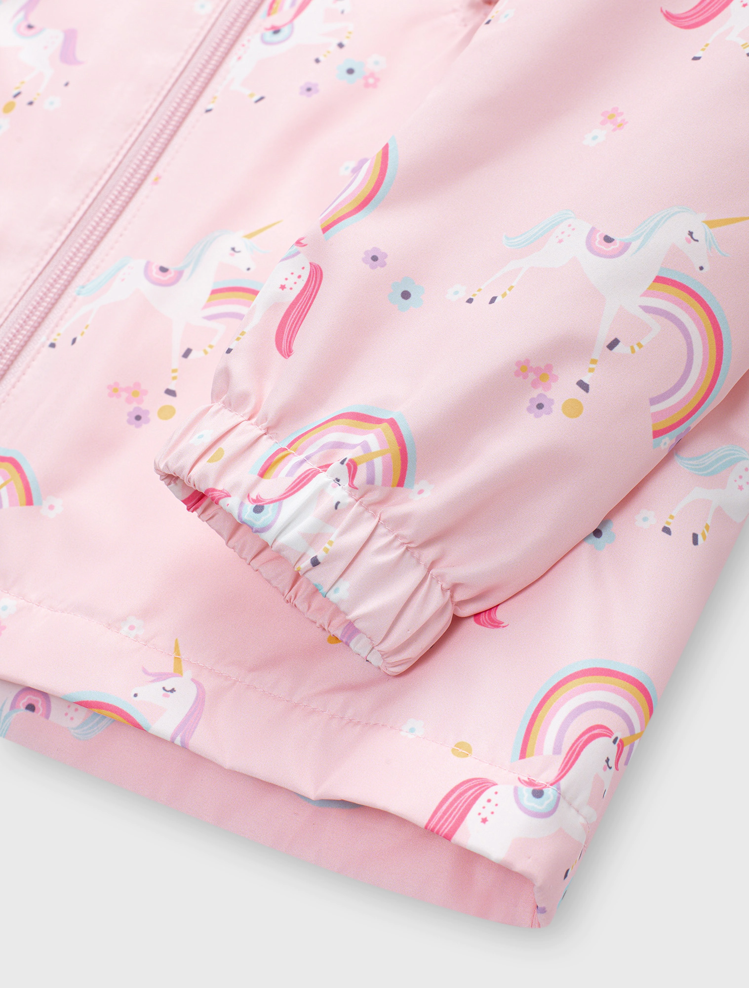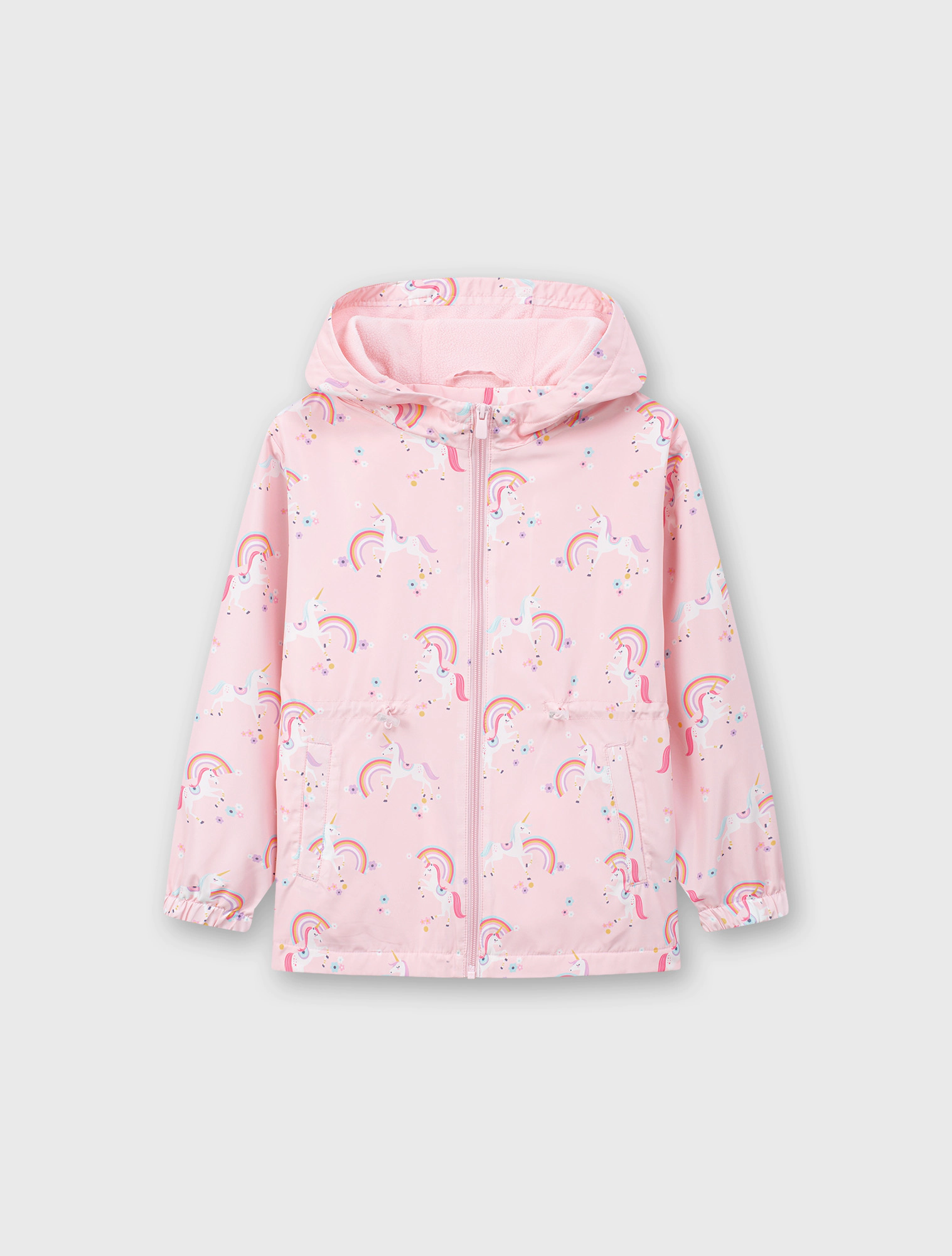 Áo khoác gió có mũ bé gái. Phom dáng cơ bản dễ mặc. Mặt trong lót nỉ ấm áp. Màu sắc tươi sáng, họa tiest dễ thương