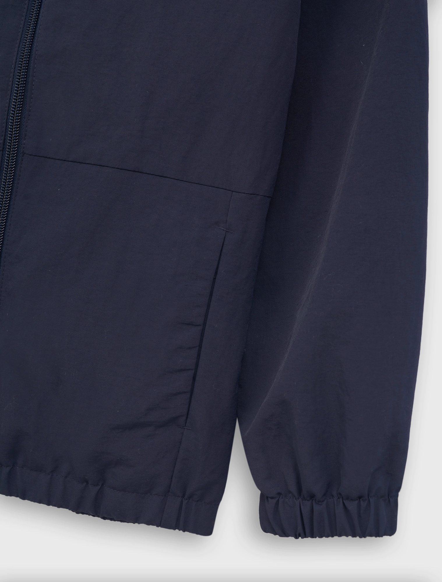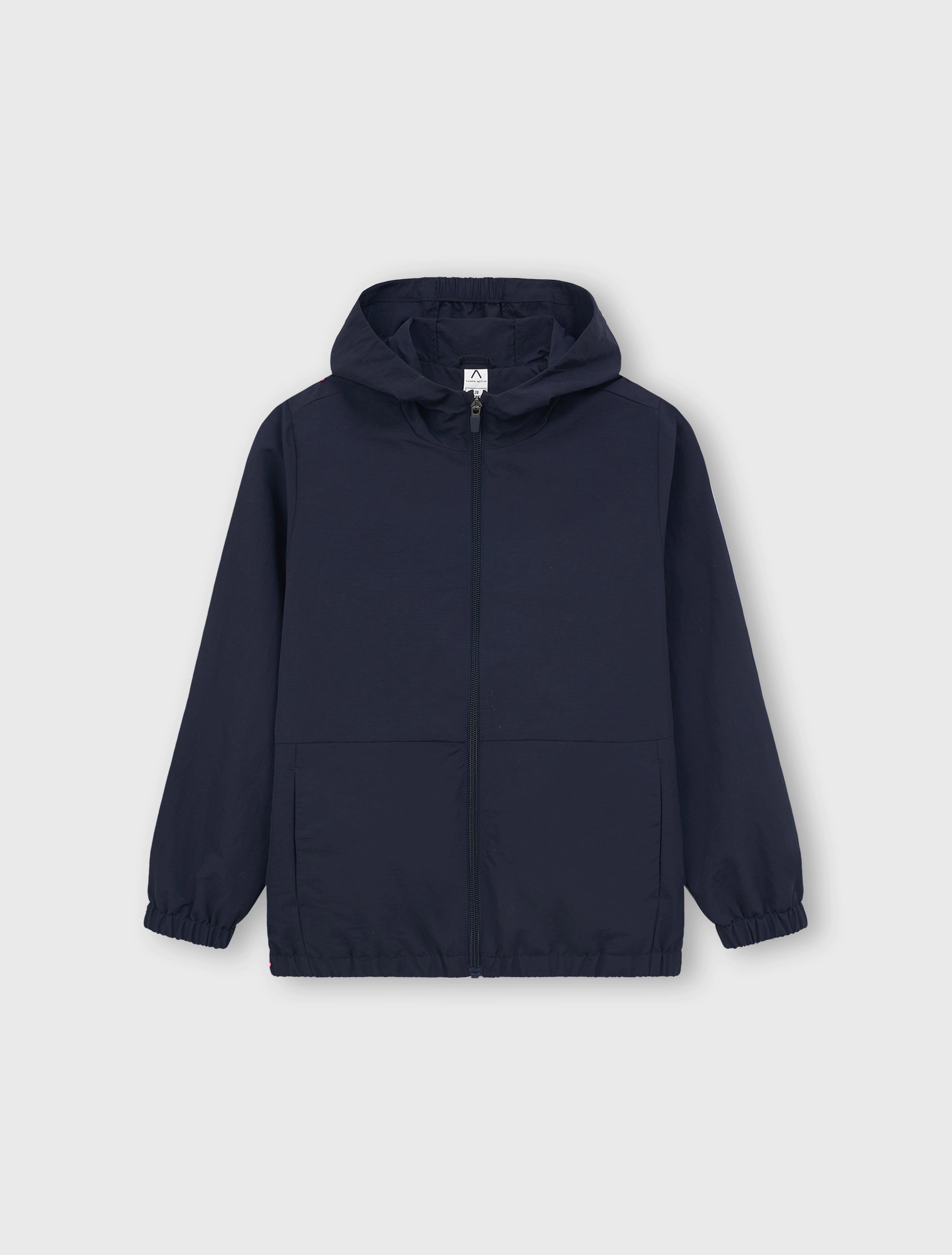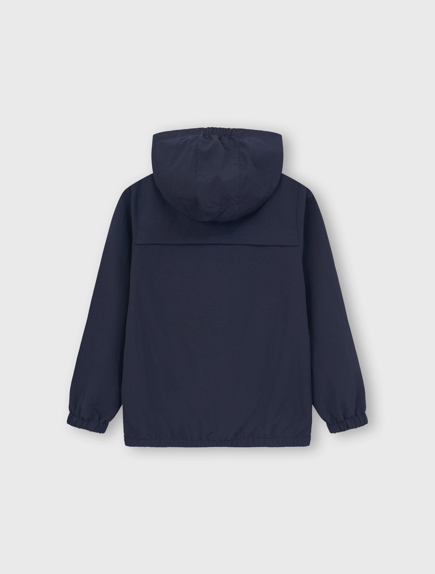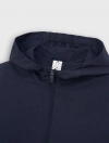 Áo khoác 2 lớp chống thấm nước. Có mũ trùm đầu và tay dài bo chun. Cài khóa kéo phía trước. Thân trước có 2 túi cơi. Gấu áo có nút chặn điều chỉnh bên hông. Lớp lót bên trong cùng màu.