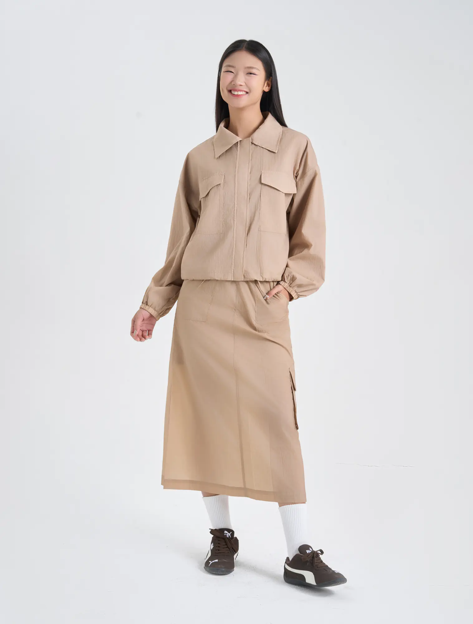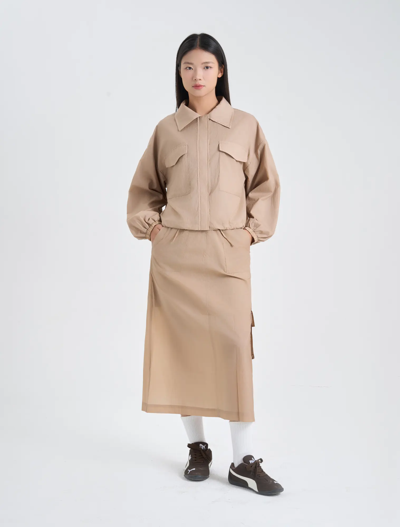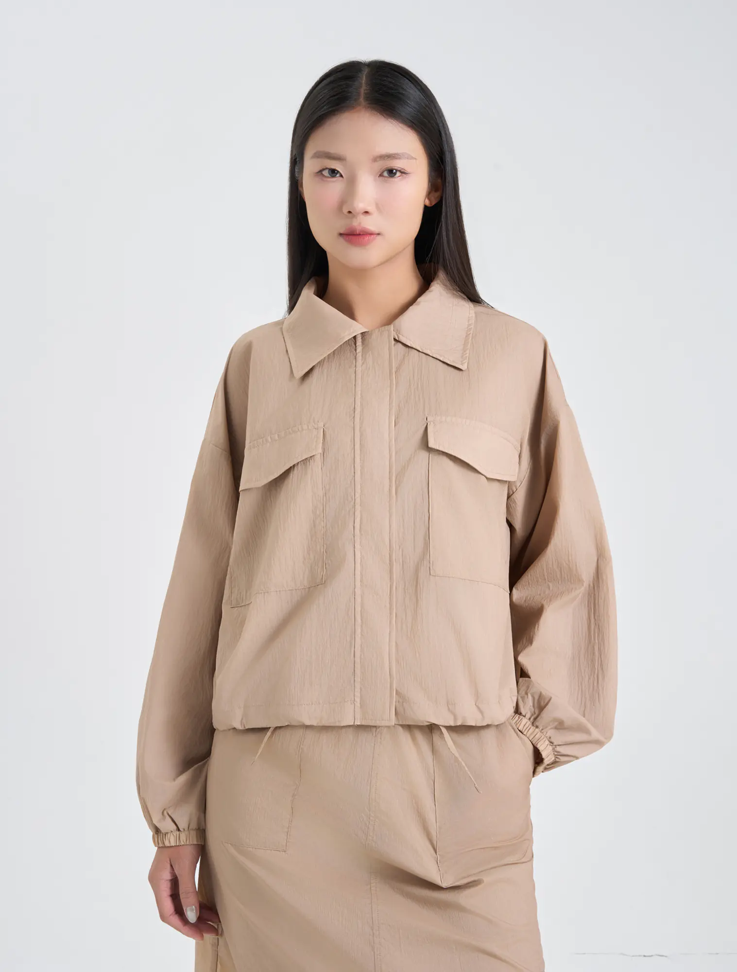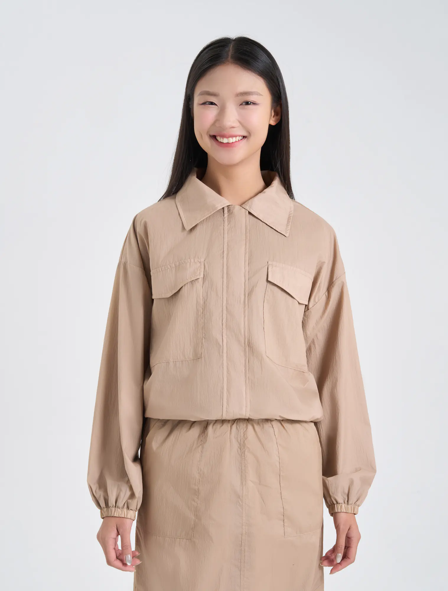 Áo khoác gió nữ hai lớp, cổ bẻ, kéo khóa