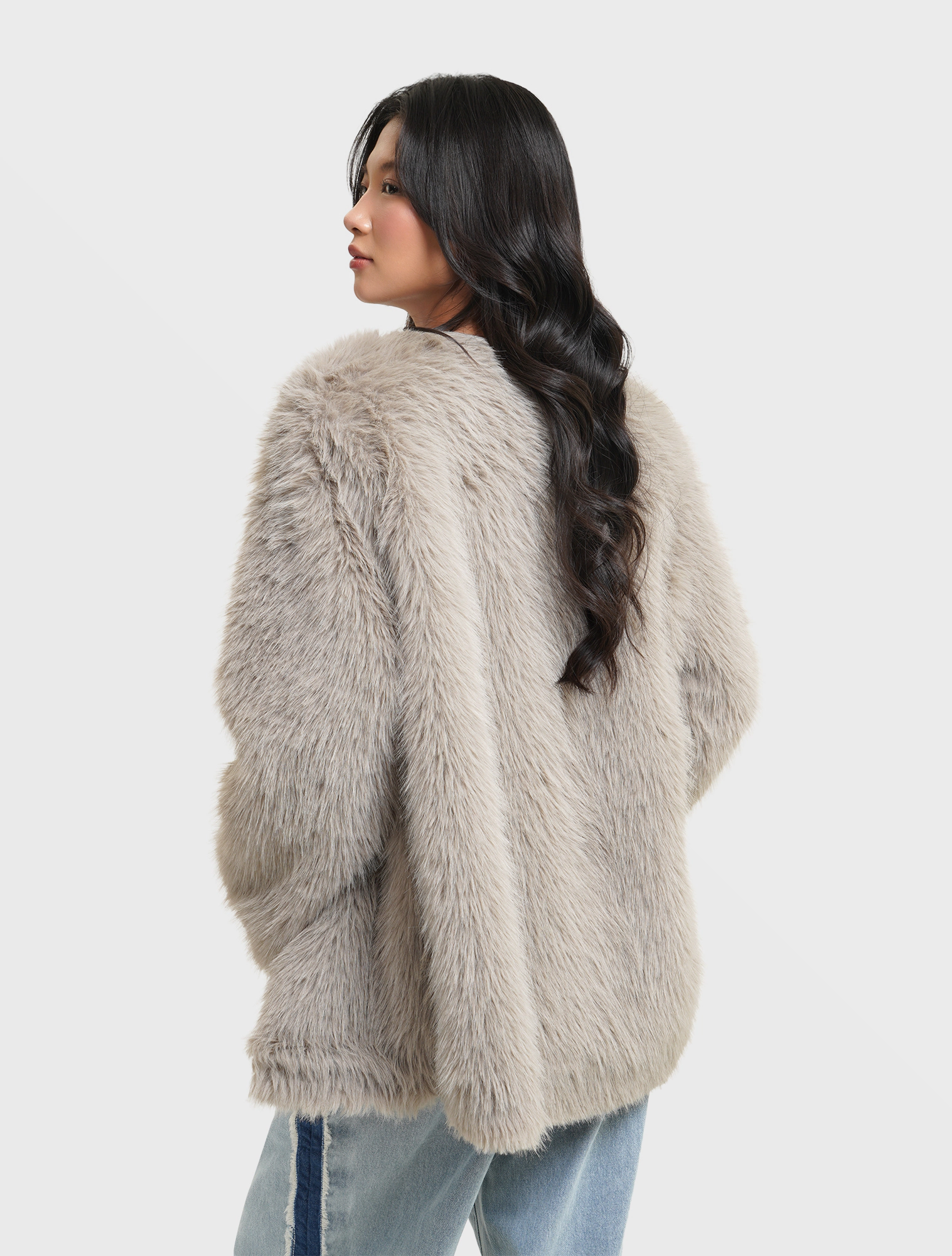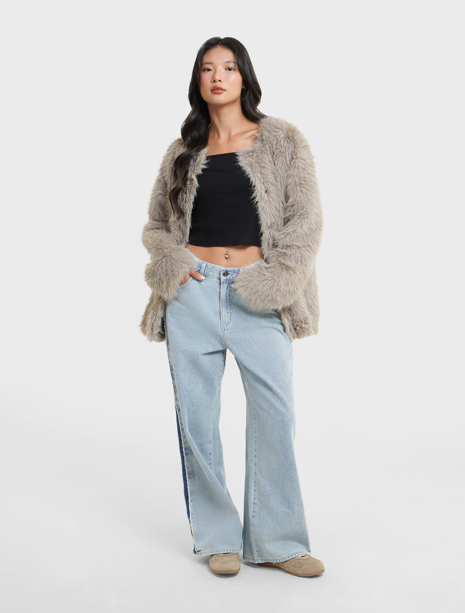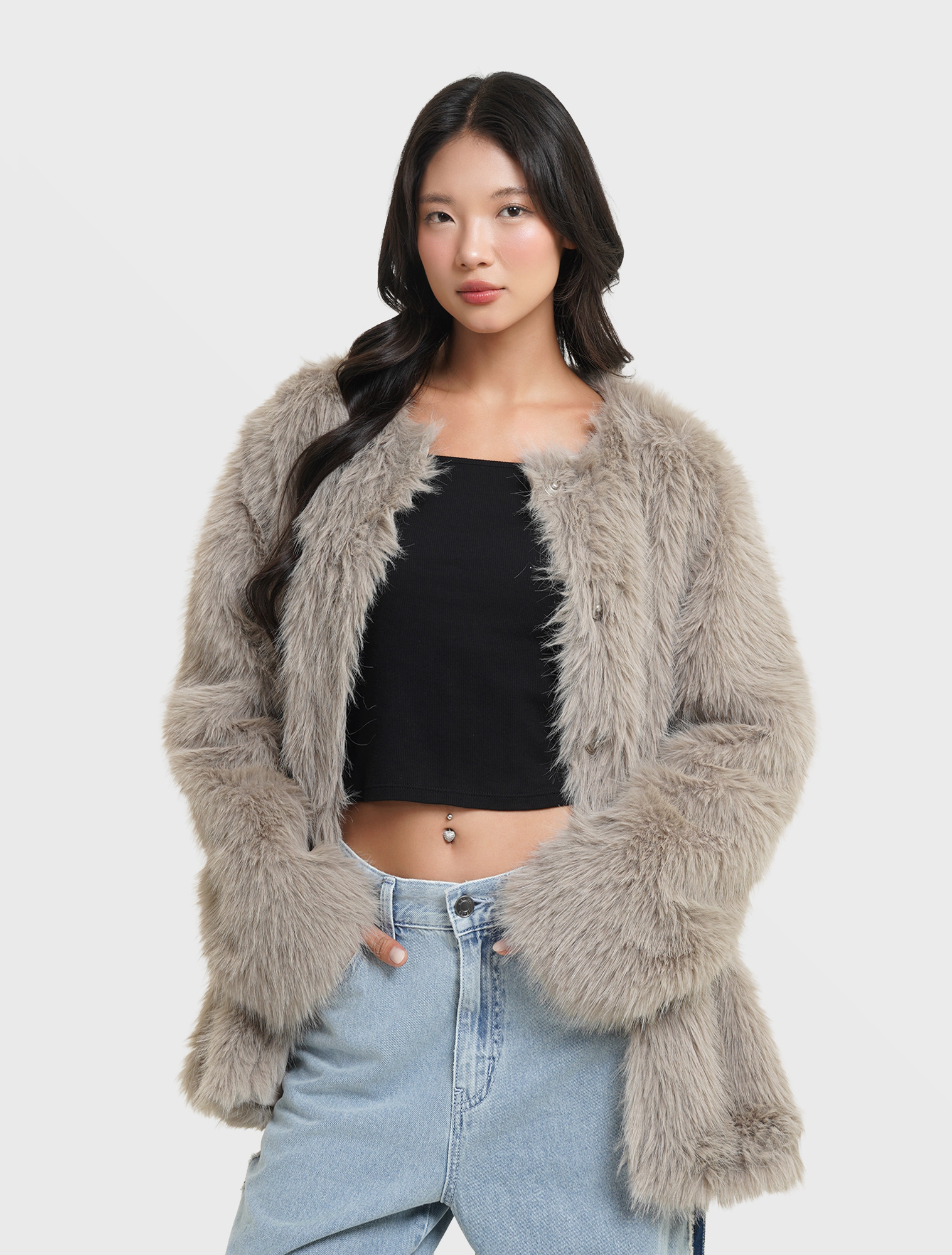 Áo khoác lông nữ với chất liệu lông dài mượt và màu sắc ấn tượng, phom dáng dài và thoải mái, dễ dàng tạo nên nhiều outfit cá tính cho khách hàng.