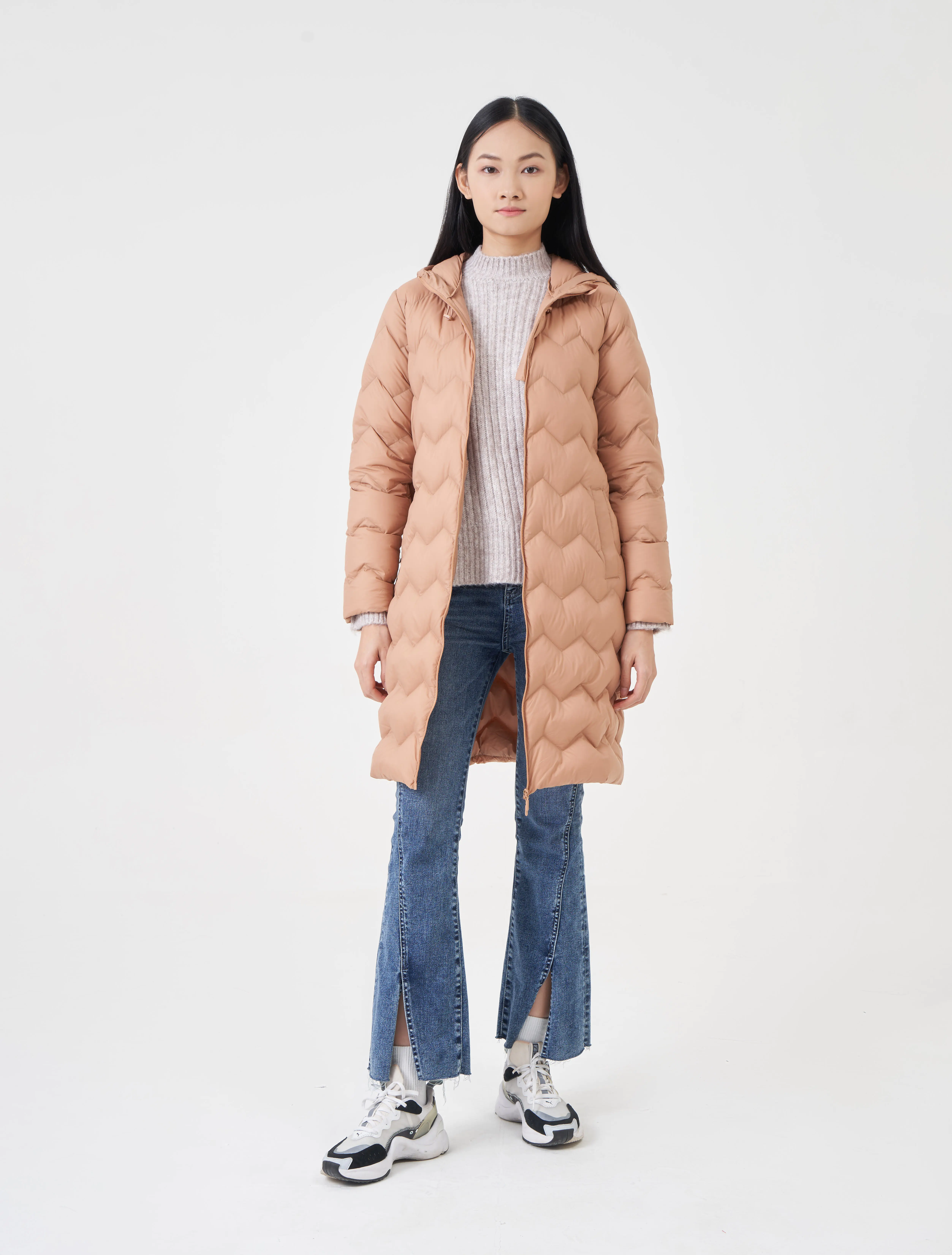 Áo khoác lông vũ nữ dáng dài