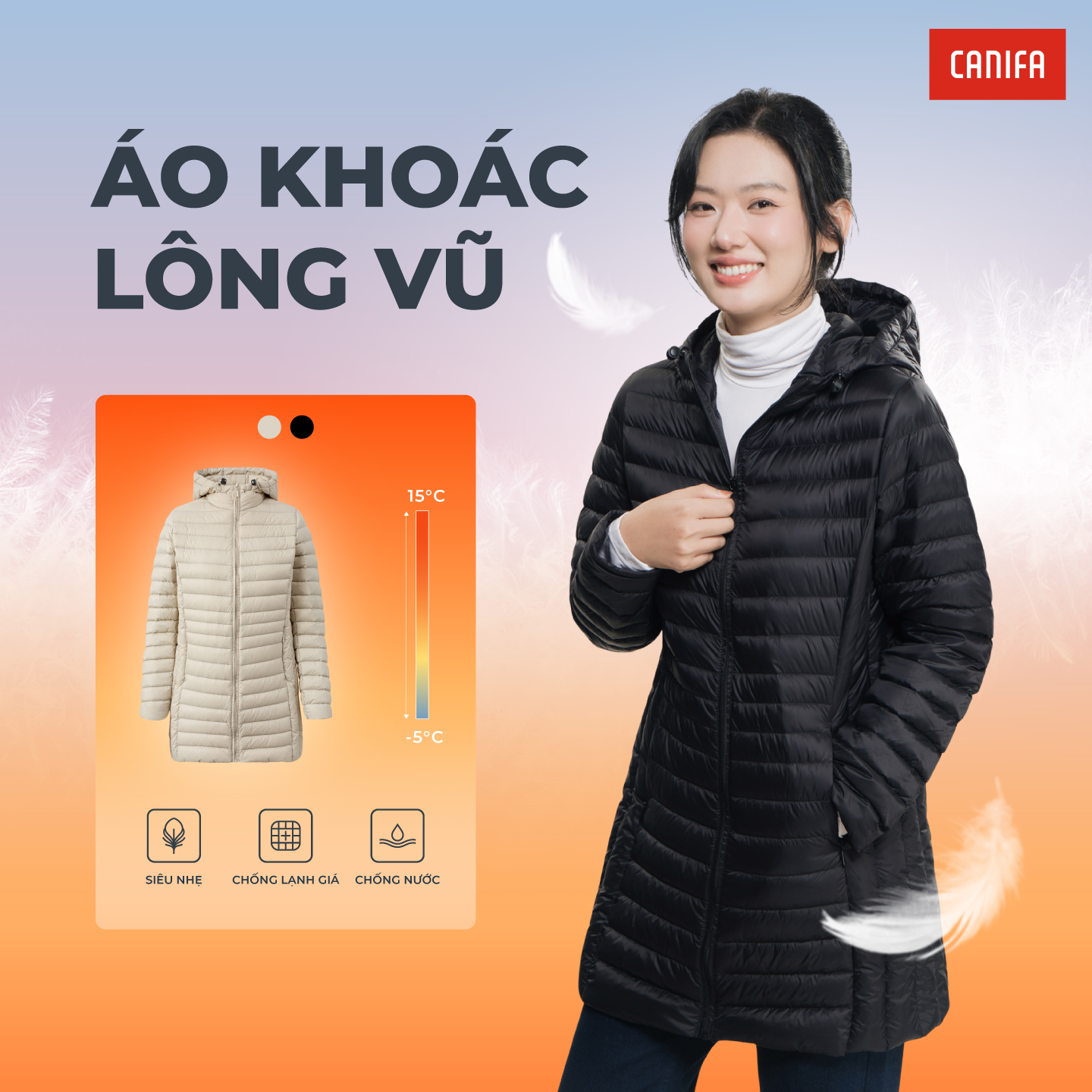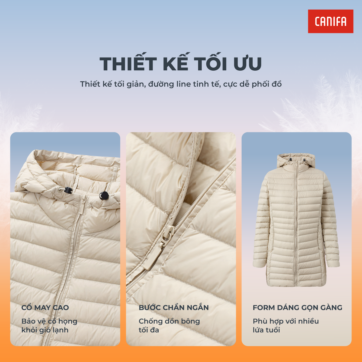 Áo khoác lông vũ kéo khóa, có mũ siêu nhẹ, giữ ấm rất tốt. Phom dáng vừa vặn, gọn gàng, phù hợp nhiều lứa tuổi, nhiều phong cách.