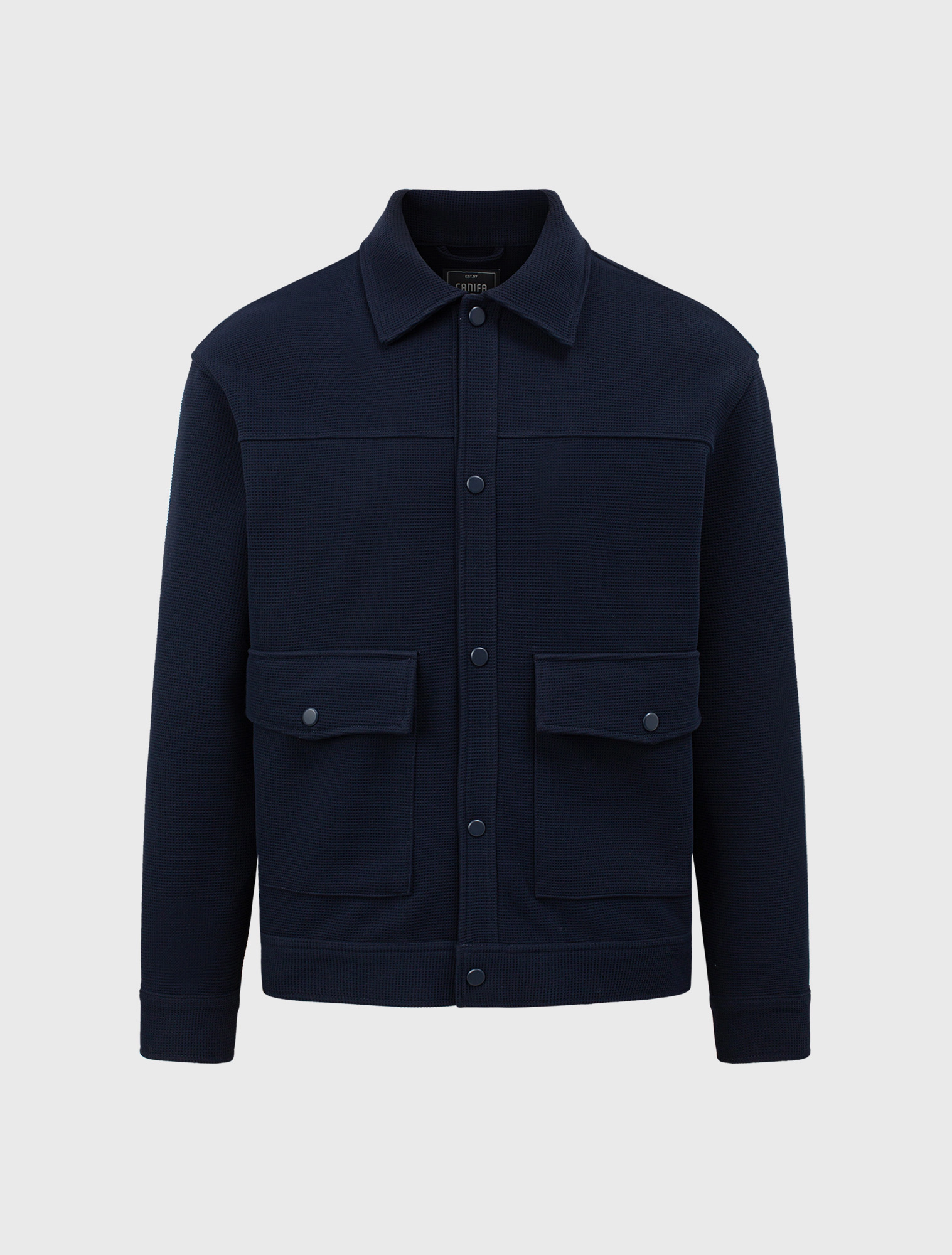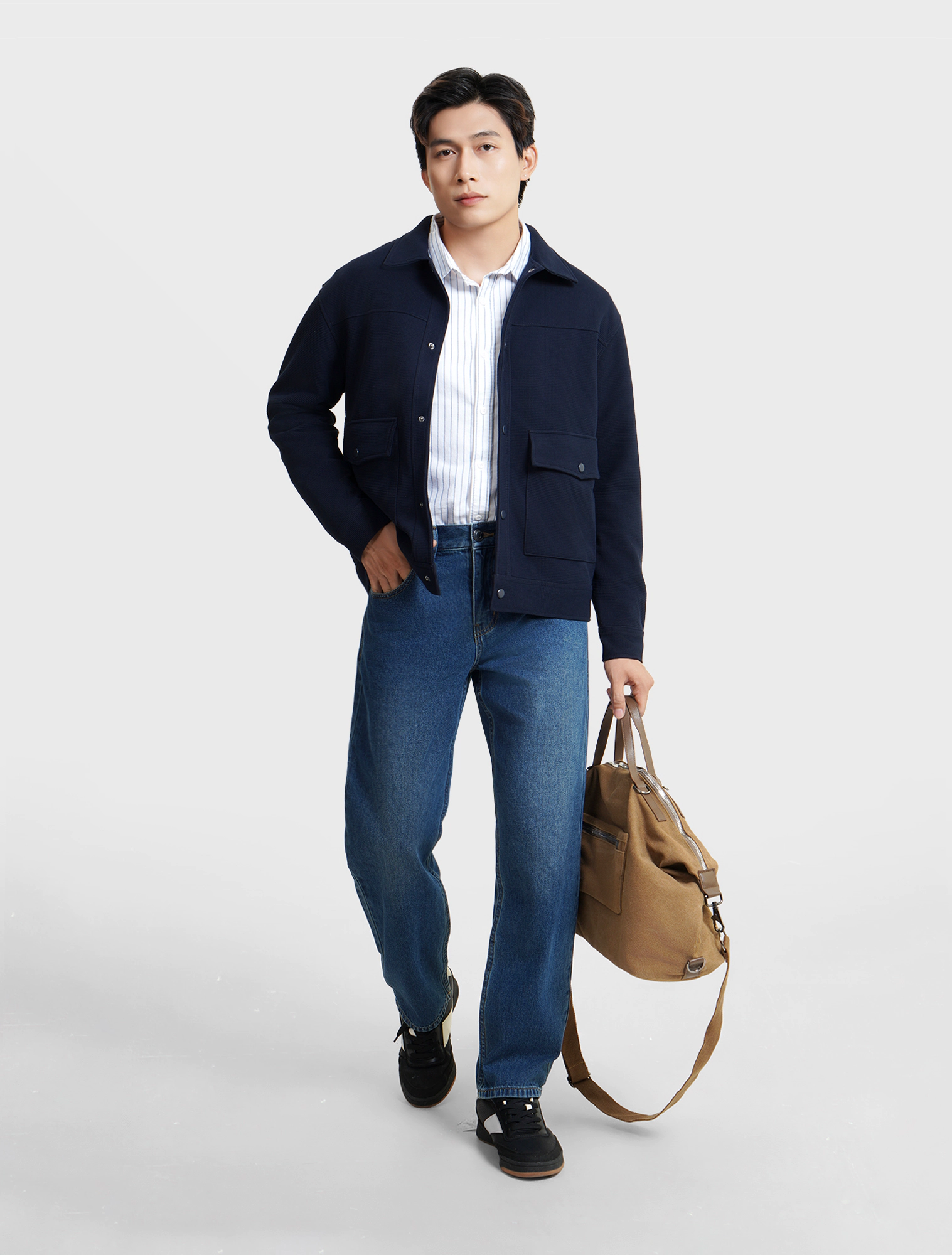 Áo khoác nam dệt kim bề mặt waffle với họa tiết tổ ong đặc trưng, mang lại cảm giác thoáng khí nhưng vẫn giữ ấm tốt. Chất liệu mềm mại, co giãn nhẹ, phom gọn gàng dễ mặc. Thiết kế tối giản và hiện đại, phù hợp cho cả đi làm lẫn dạo phố.