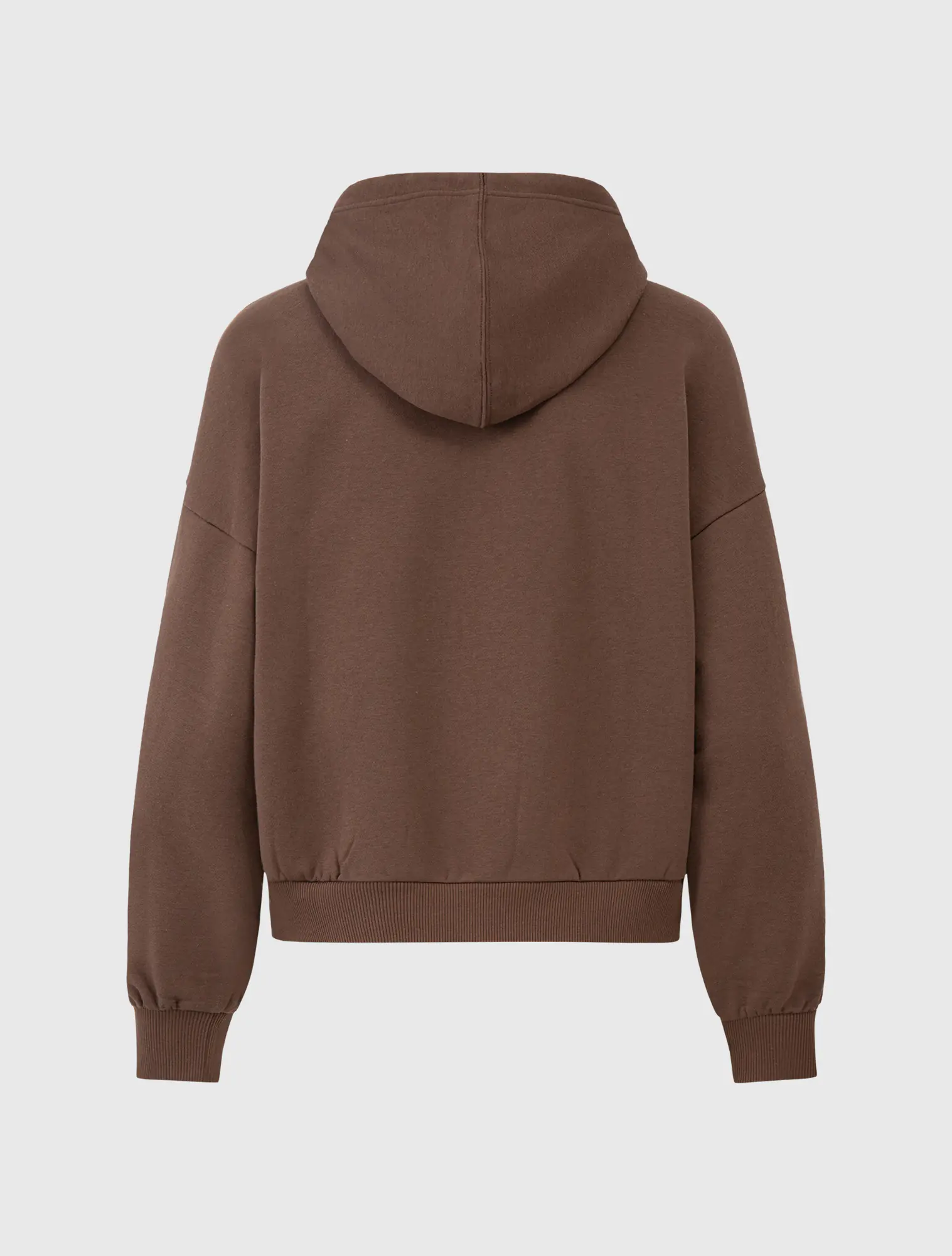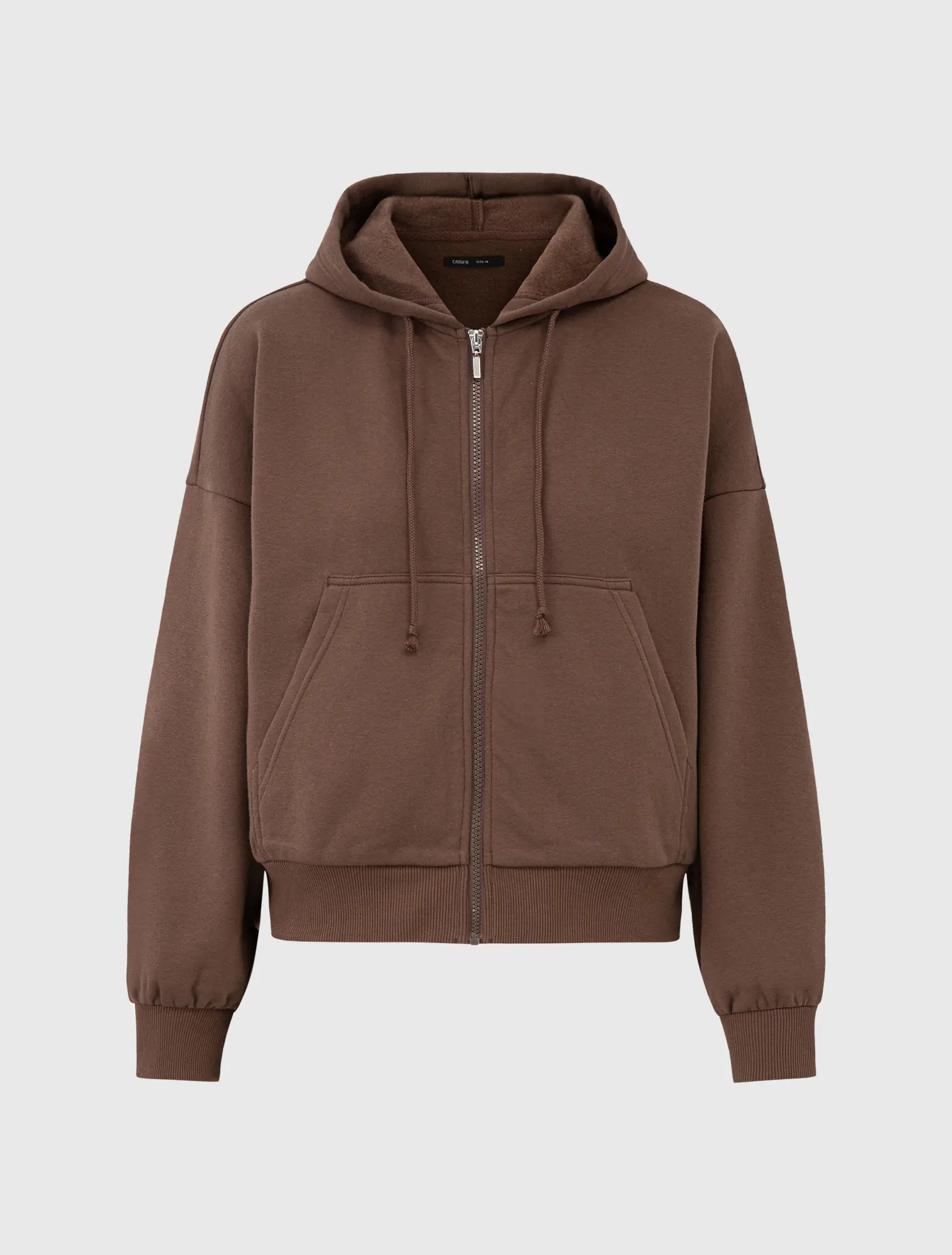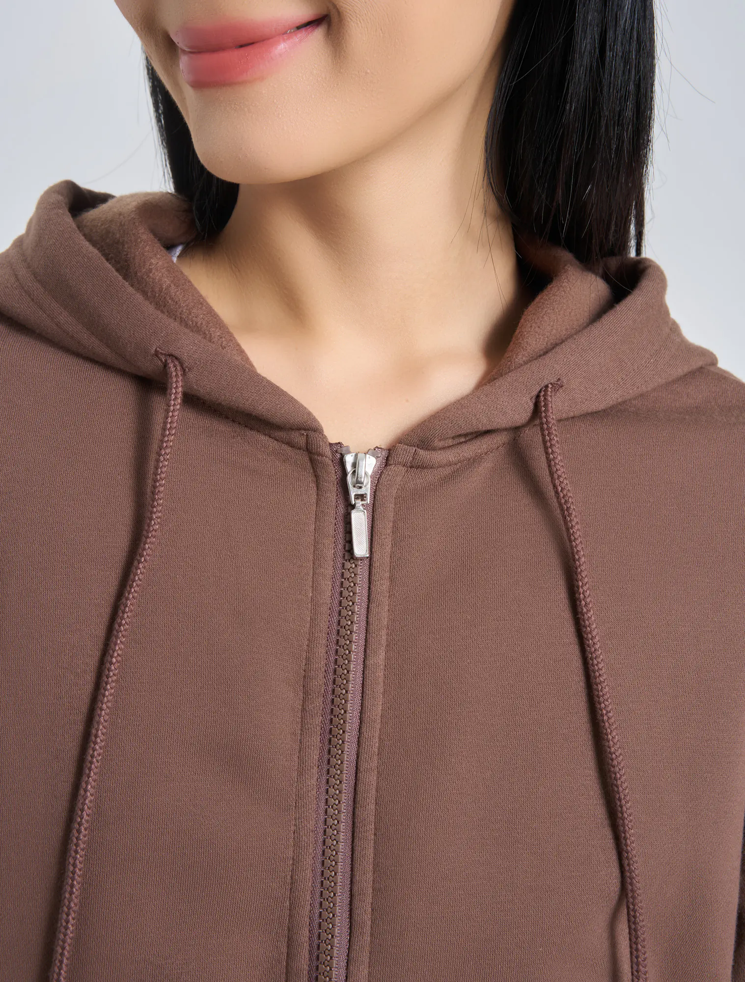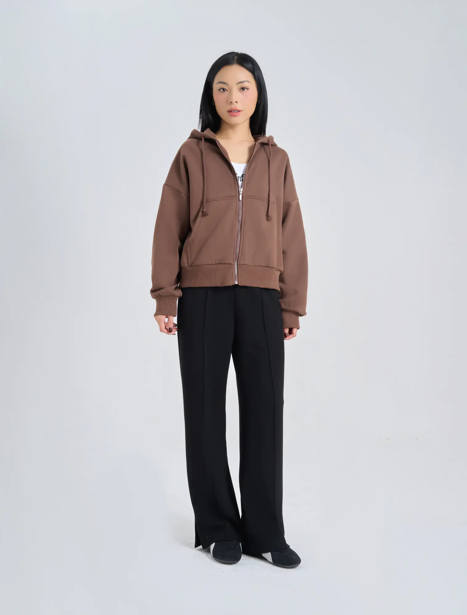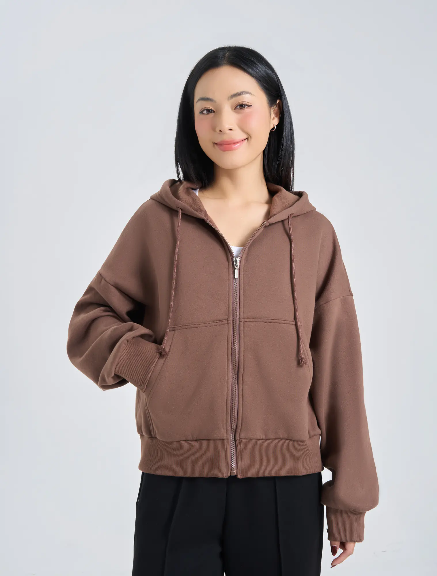 Áo khoác nỉ nữ basic dáng relax, thiết kế phom áo rộng thoải mái với chiều dài vừa phải dễ phù hợp với nhiều đối tượng khách hàng.