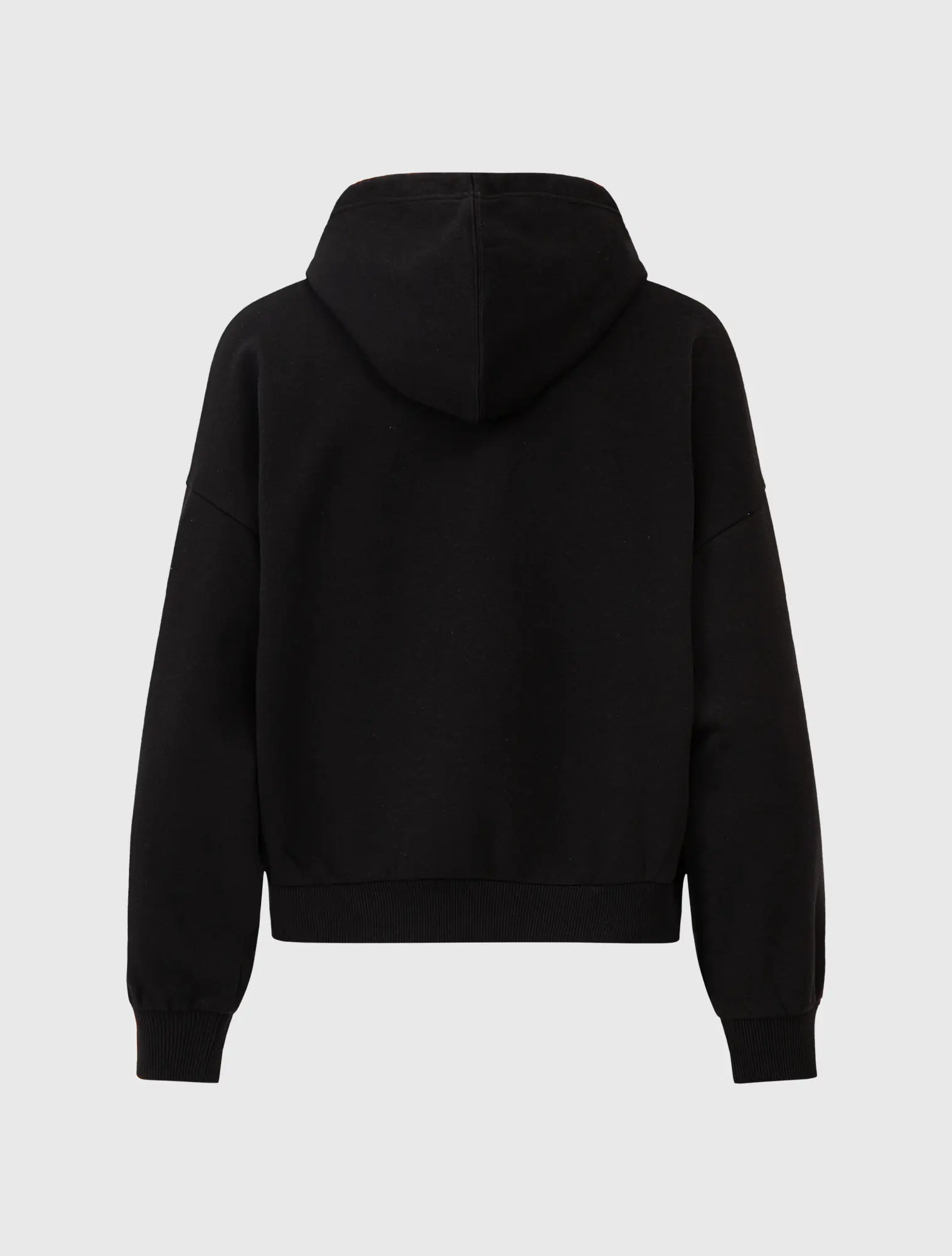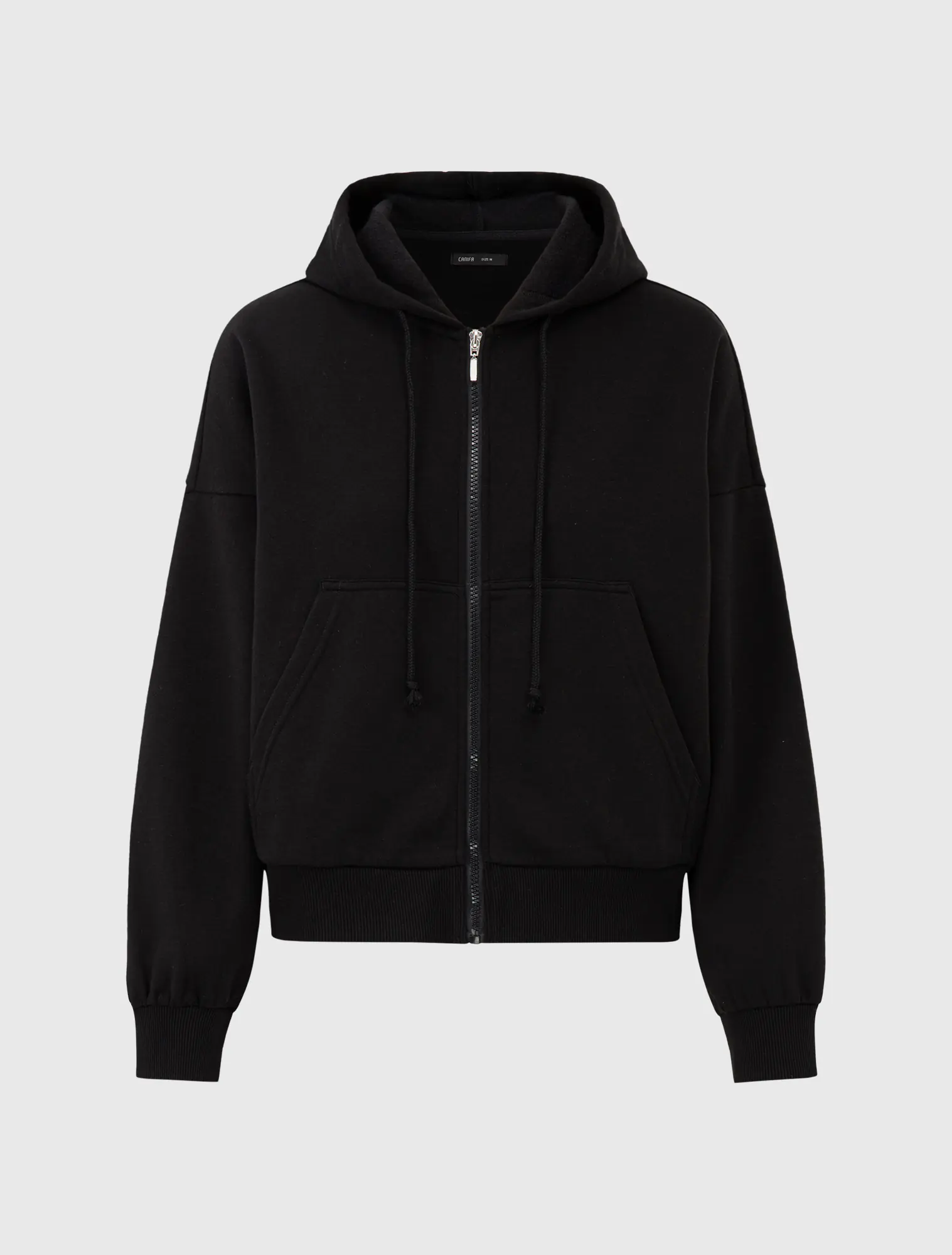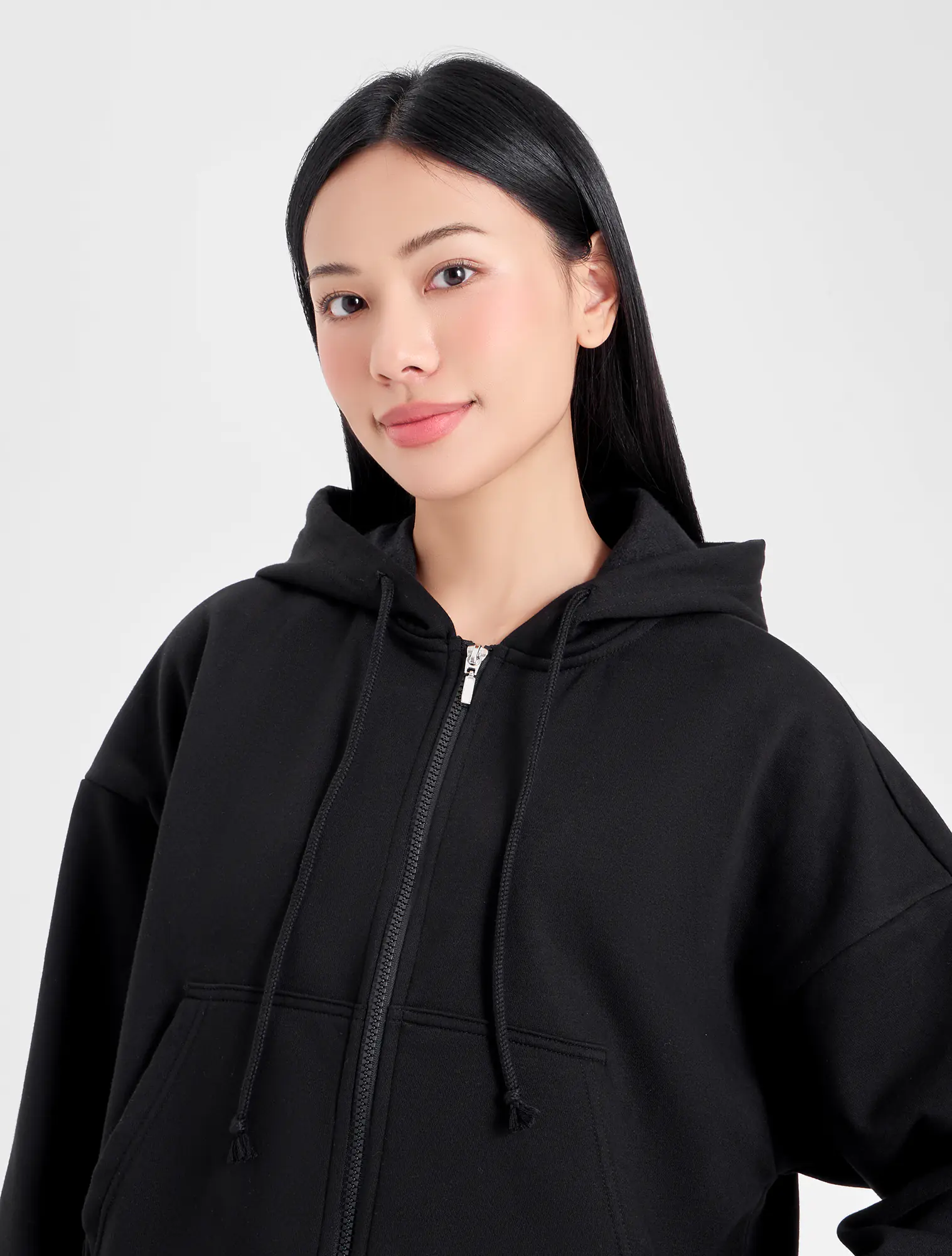 Áo khoác nỉ nữ basic dáng relax, thiết kế phom áo rộng thoải mái với chiều dài vừa phải dễ phù hợp với nhiều đối tượng khách hàng.