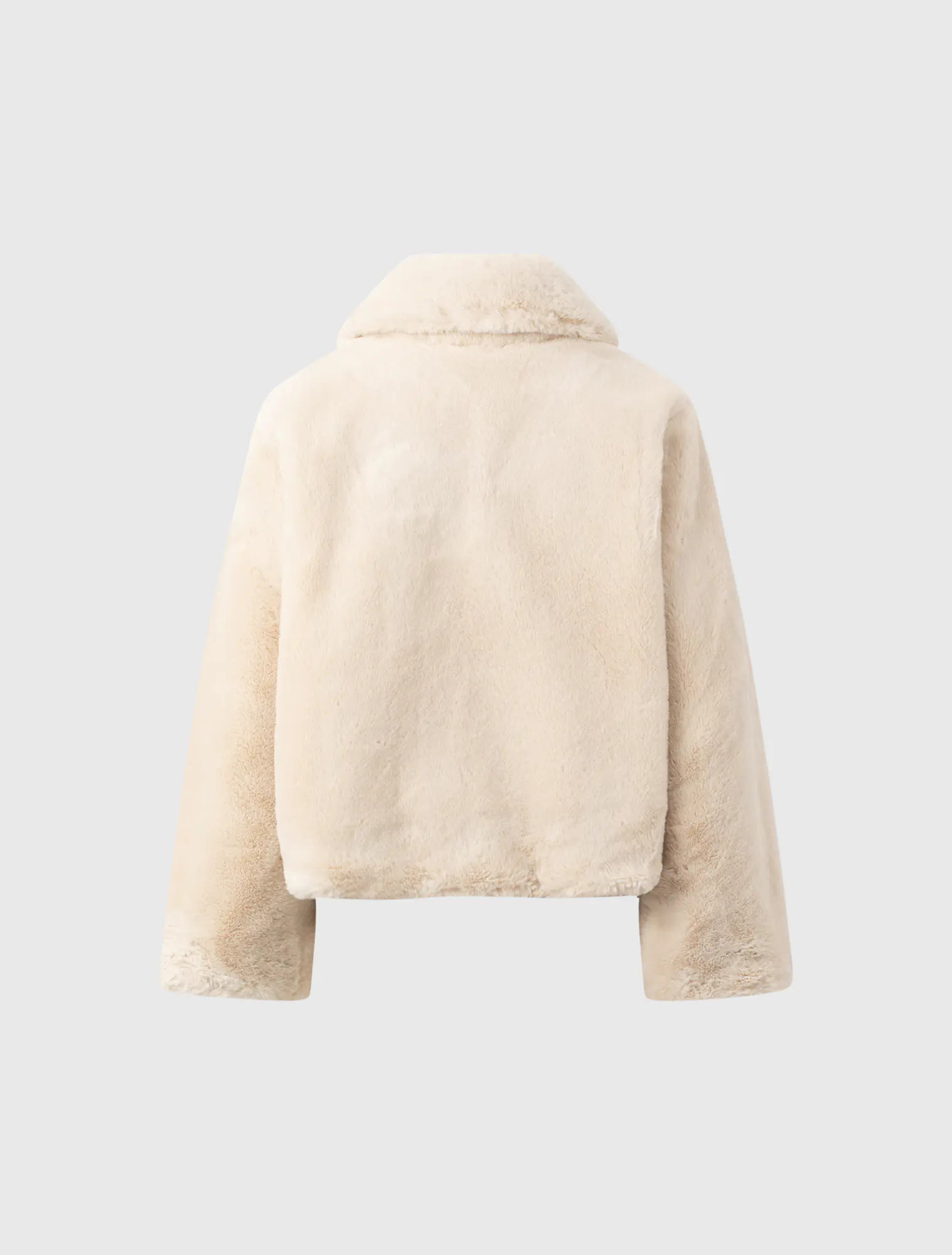 Áo khoác lông nữ dáng relax, với chất liệu lông cao cấp mềm mịn tạo nên một outfit sang trọng và không thể thiếu trong các dịp lễ tết.