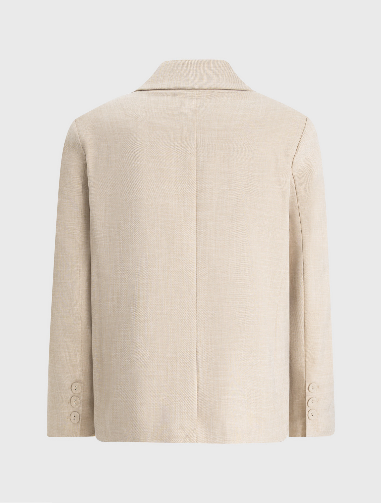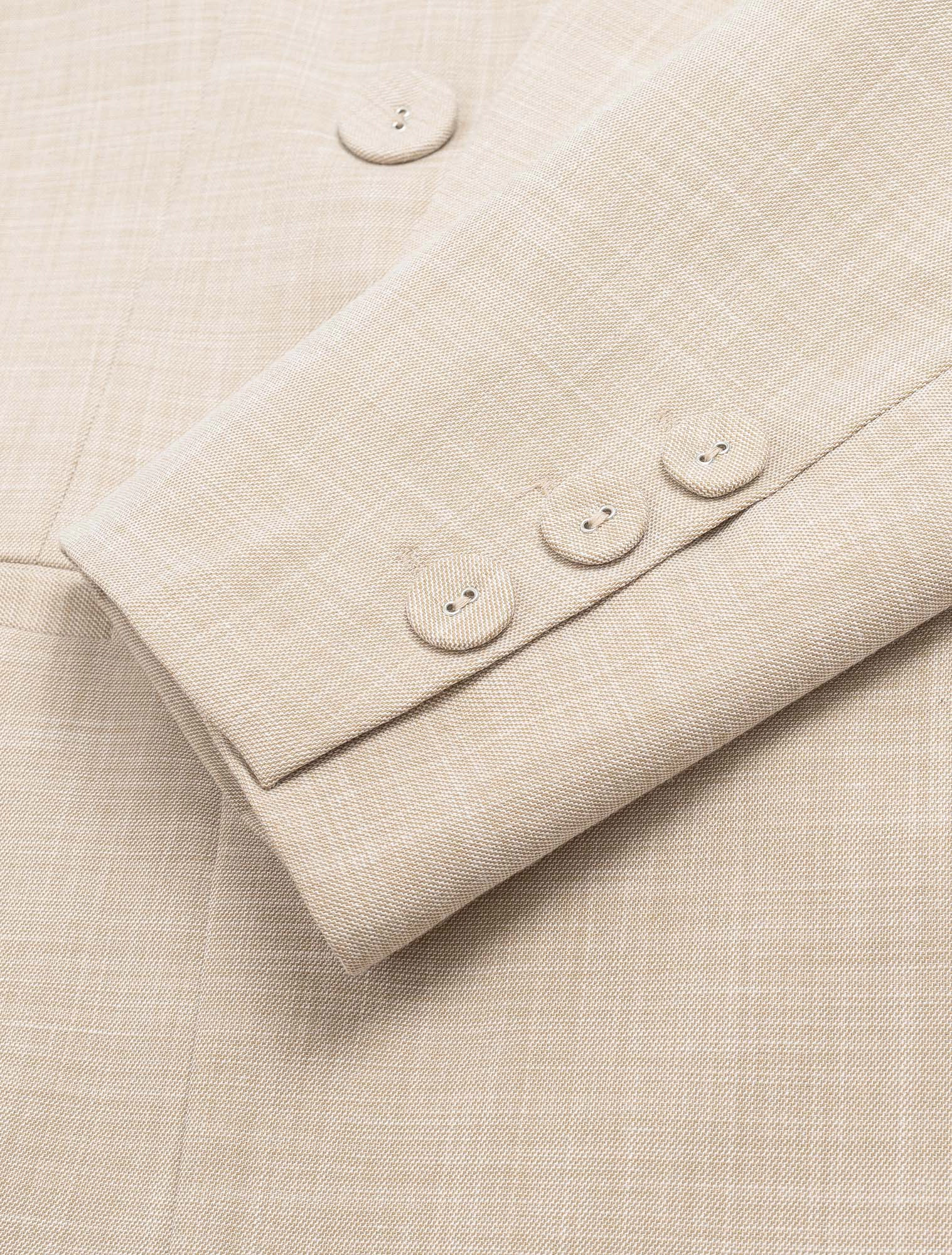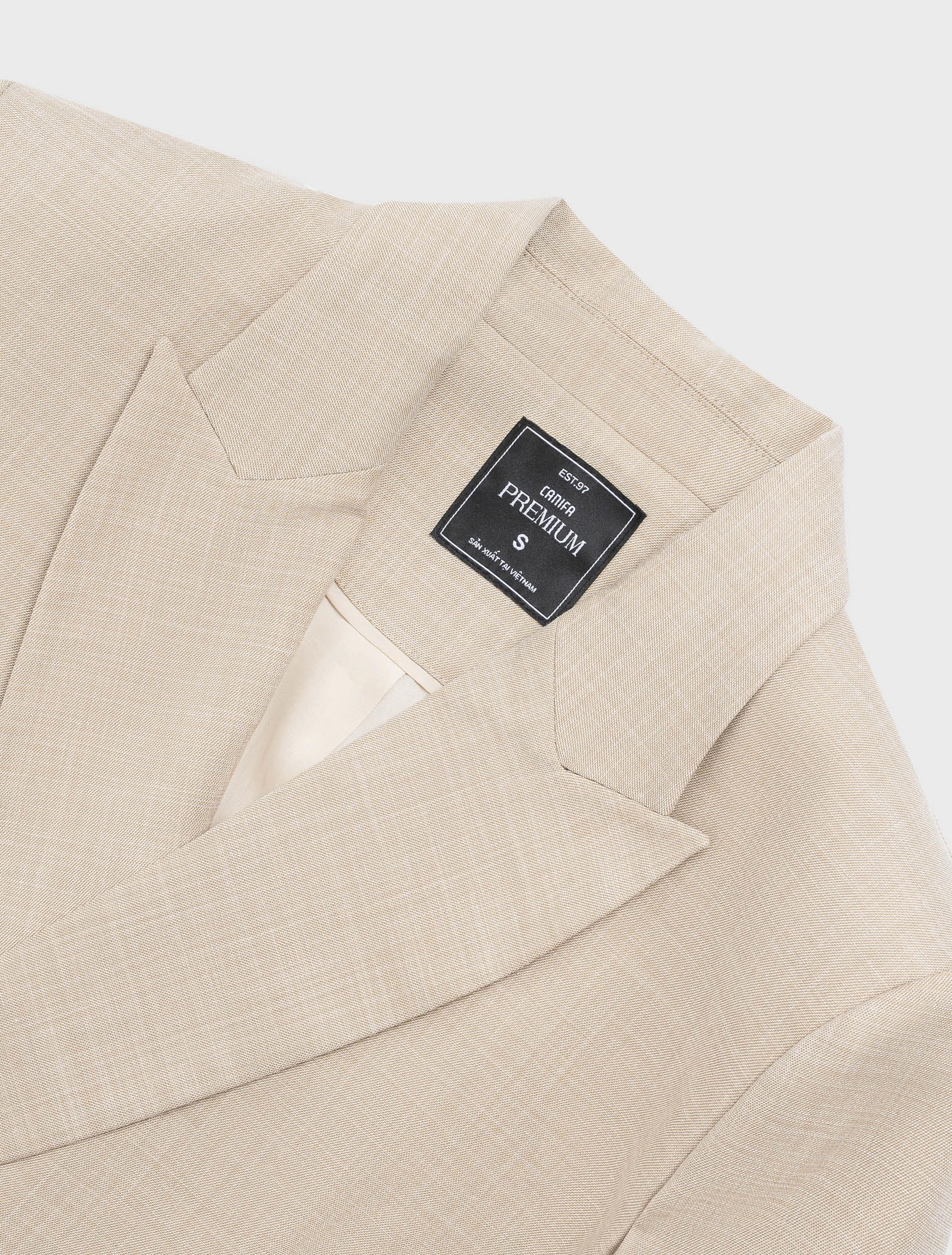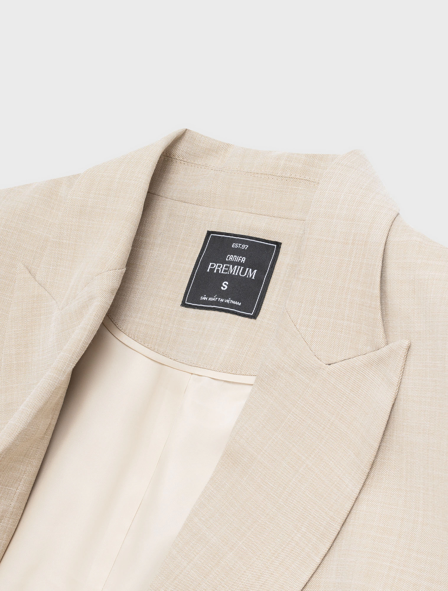Treo bằng móc bản to, chỉnh ve/cổ và đường vai khi còn ẩm để blazer vào form đẹp.