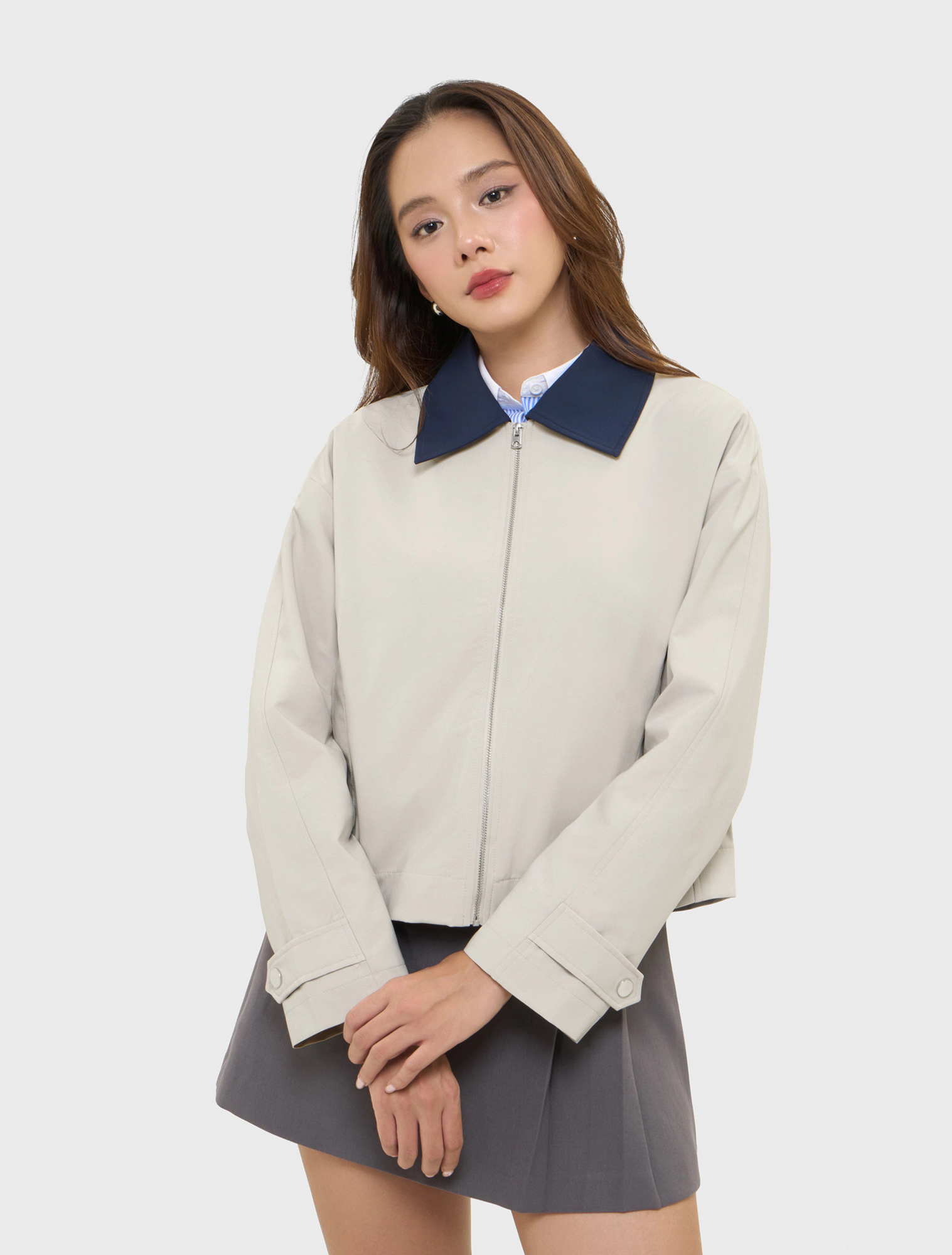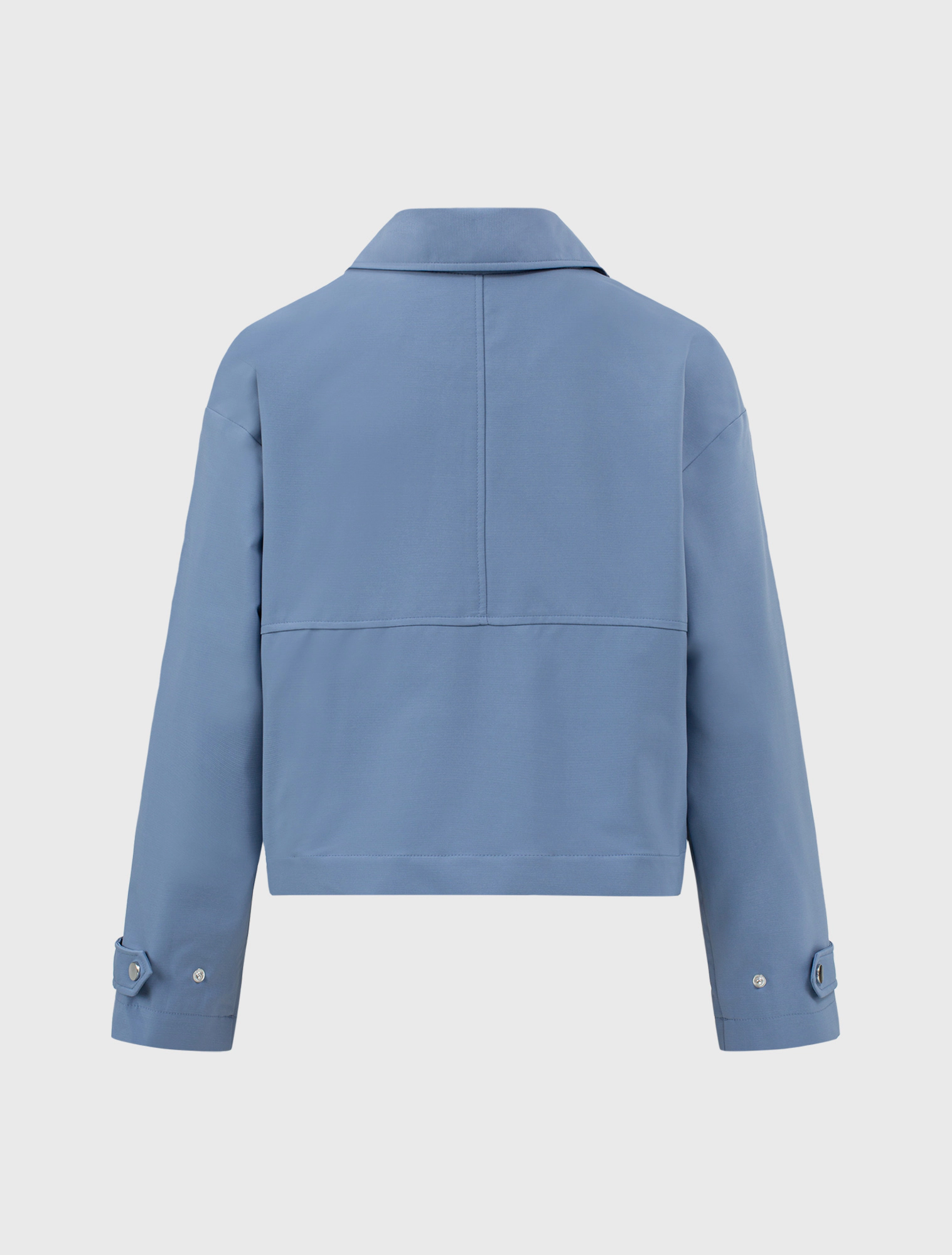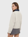 Áo khoác hai lớp dài tay, cổ bẻ, dáng suông. Chất liệu polyester thoải mái, phù hợp với thời tiết lạnh, mưa nhẹ.