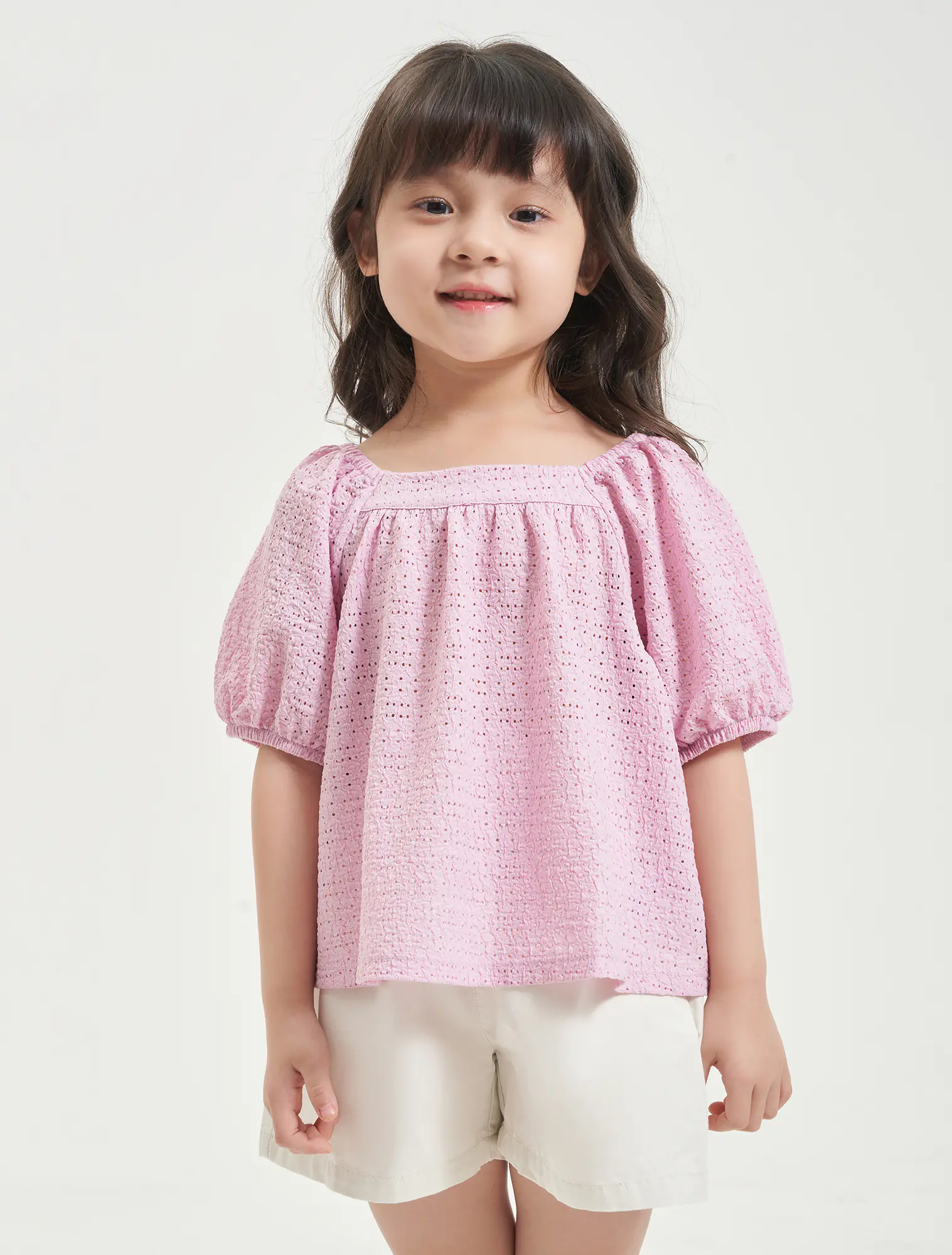 Áo kiểu bé gái cổ vuông tay phồng làm nên 1 sản phẩm mềm mại nữ tính, dễ kết hợp với nhiều loại sản phẩm. Phù hợp với các bé gái thích sự nữ tính.