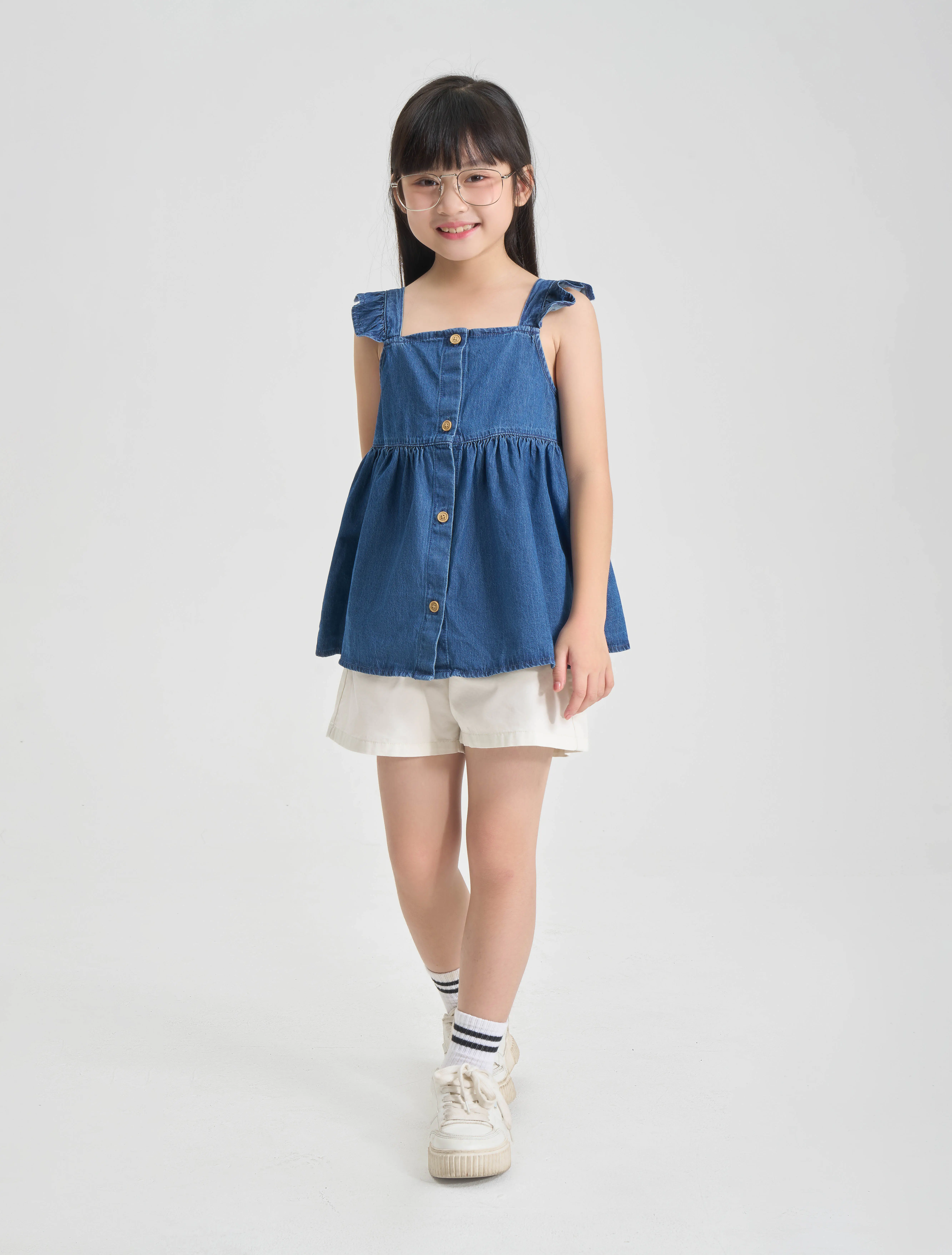 Chất liệu: denim cotton đứng form, màu sắc phù hợp cho các bé.