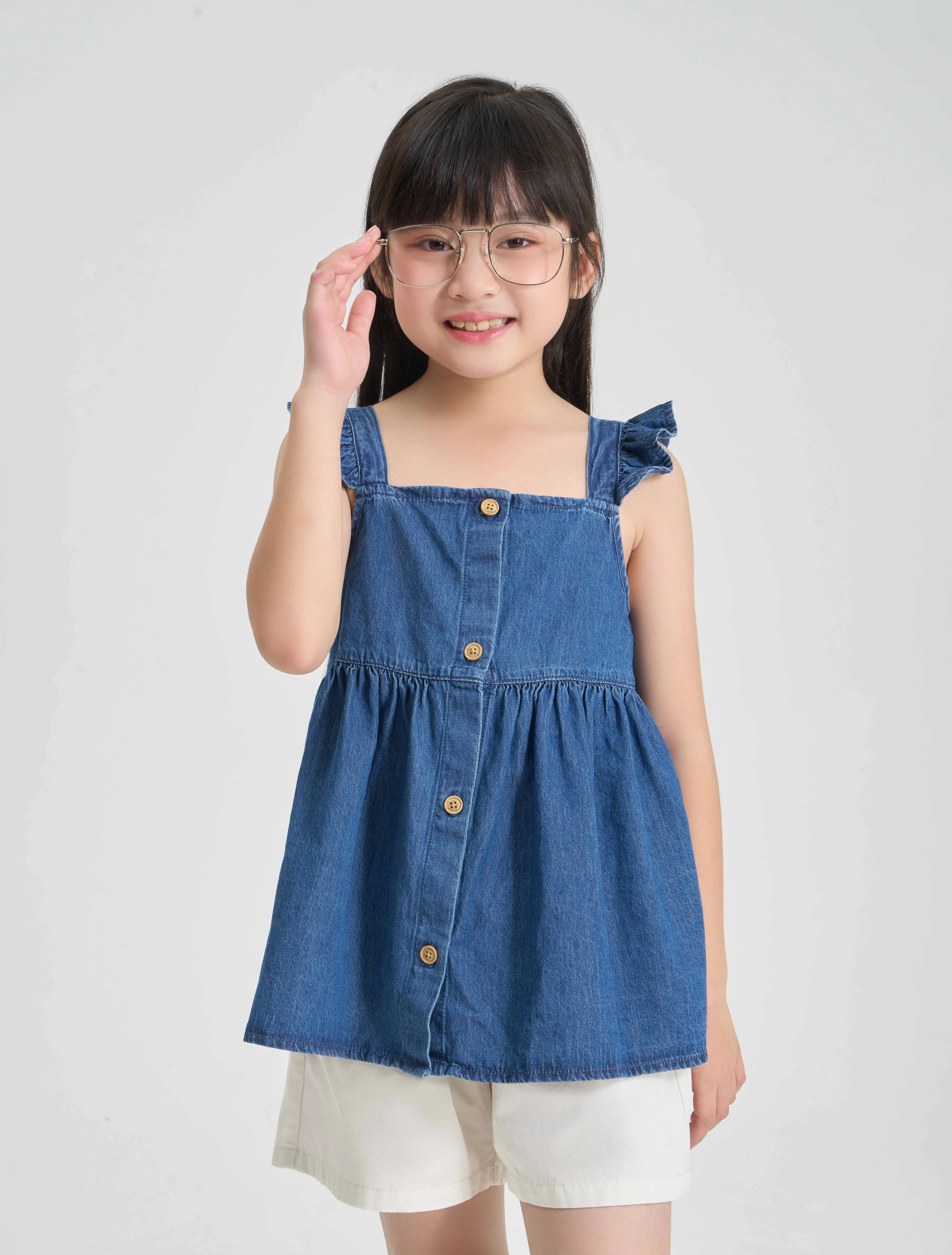 Áo 2 dây bản to dáng xòe cho bé gái.