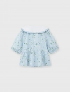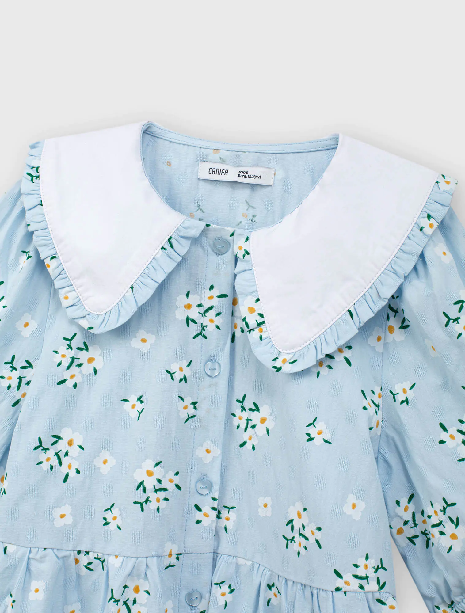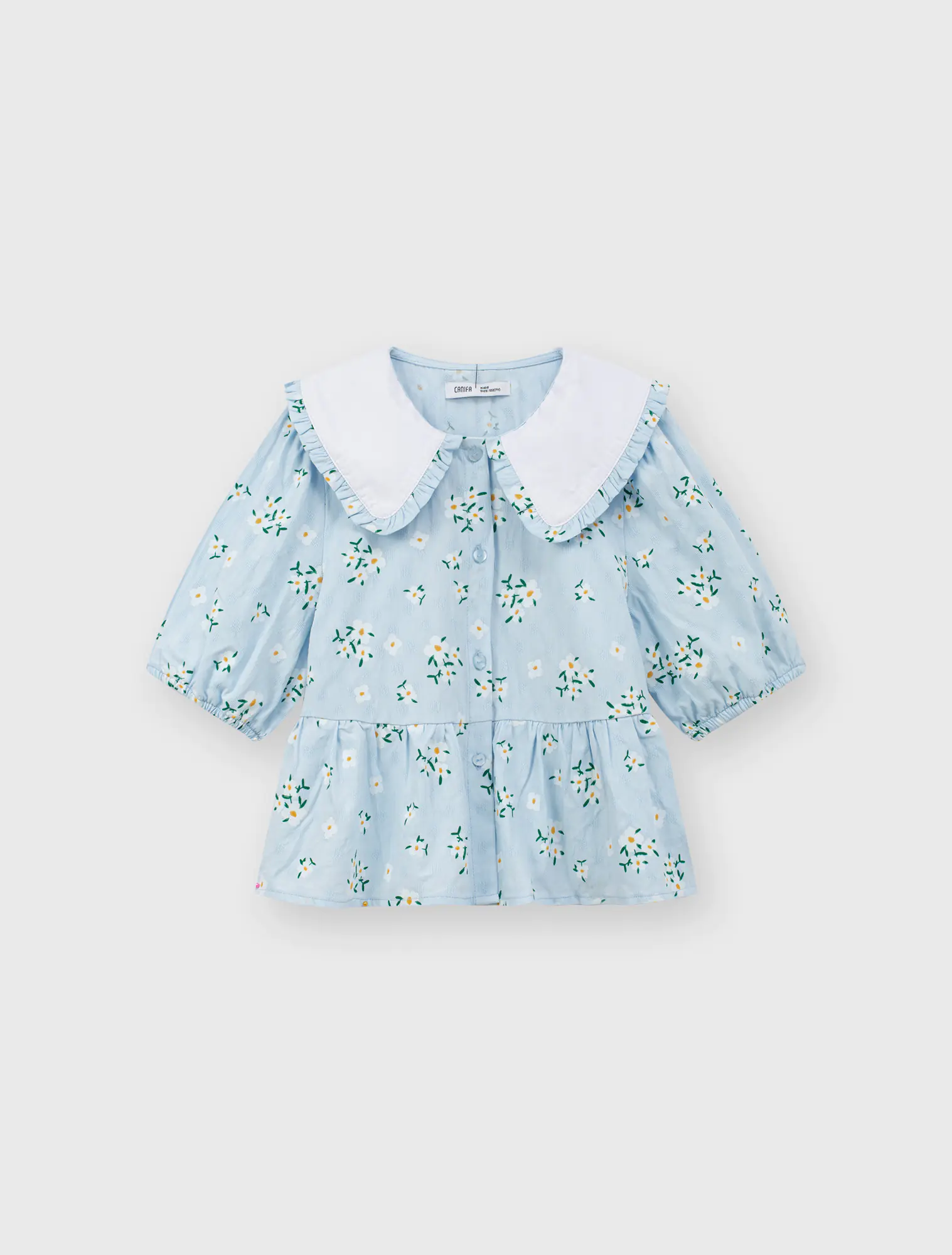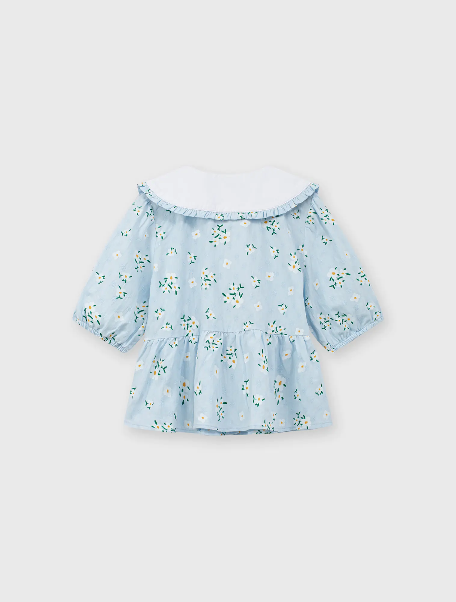 Áo kiểu bé gái hoạ tiết có bản bèo cổ mềm mại nữ tính, dễ kết hợp với nhiều loại sản phẩm. Phù hợp với các bé gái thích sự nữ tính.