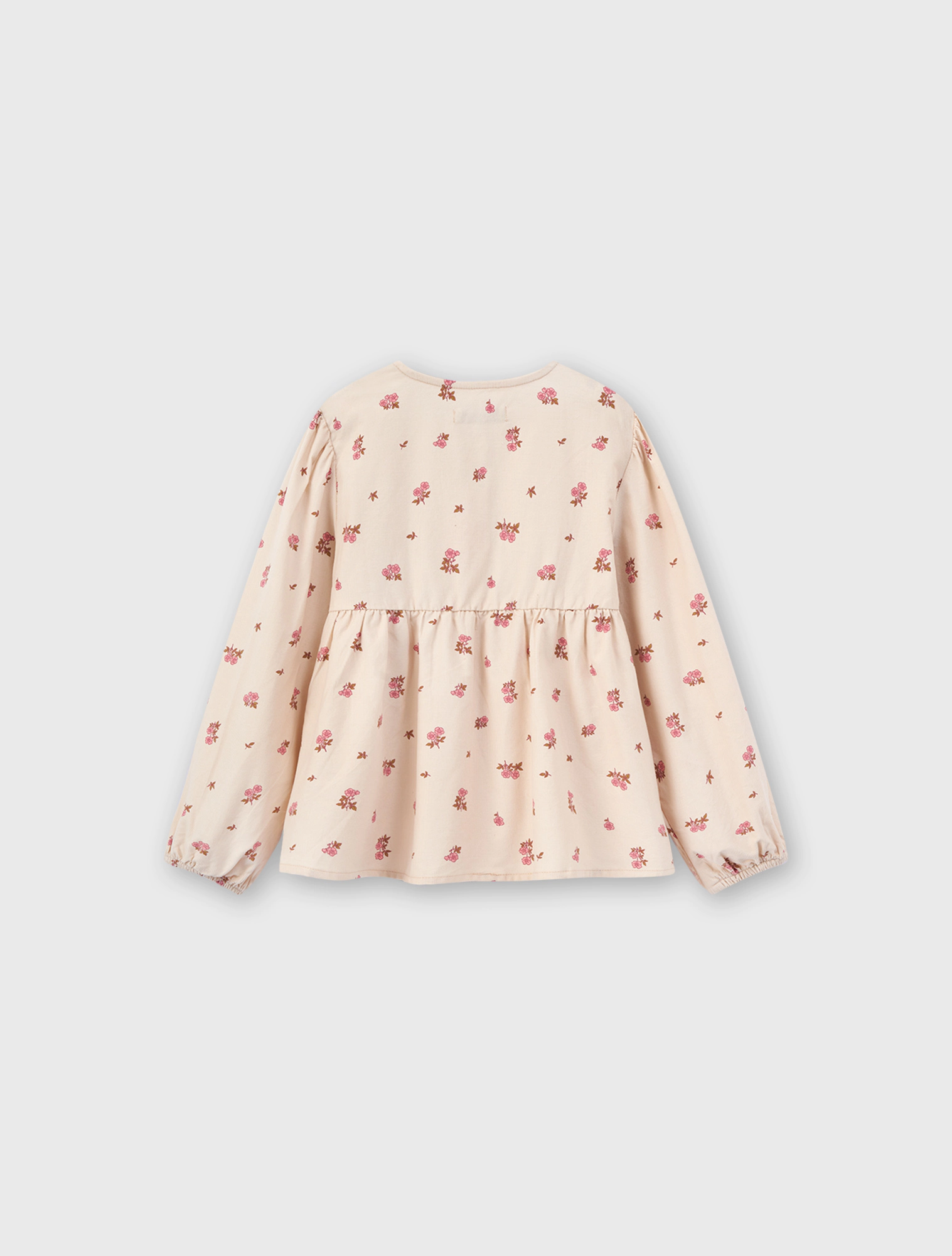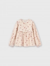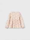 Áo kiểu bé gái hoạ tiết, có chi tiết ren ở ngực mang đến sự nữ tính.