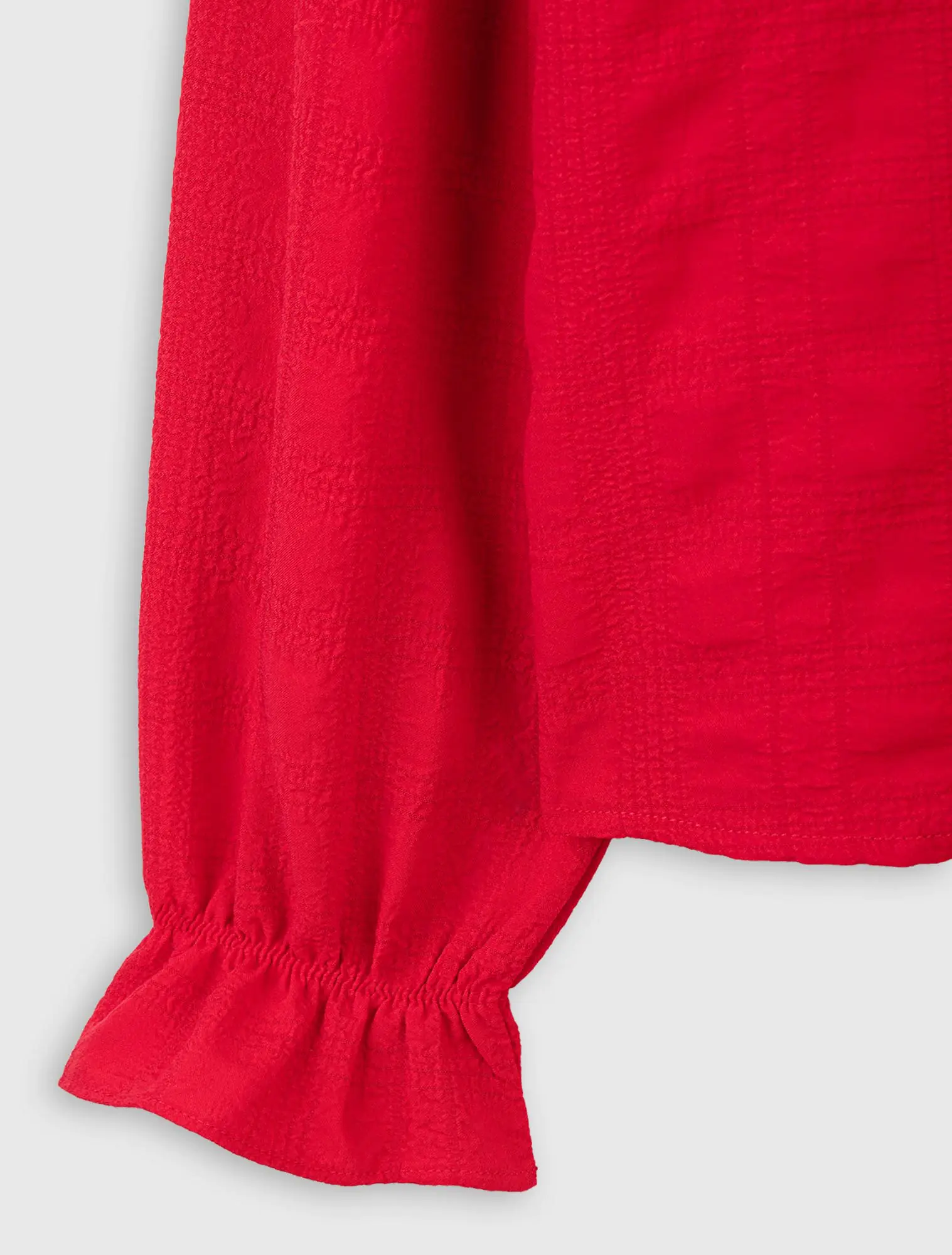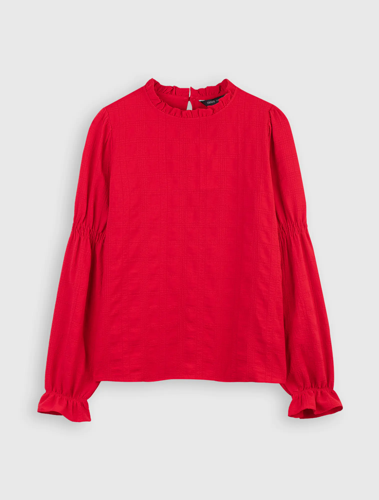 Áo kiểu nữ cổ tròn cao chun tay tạo bồng dáng suông