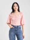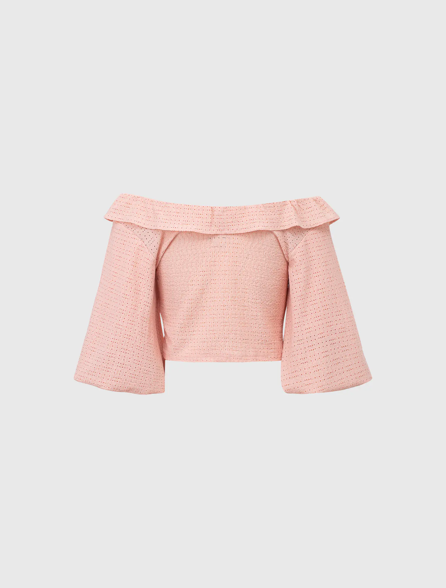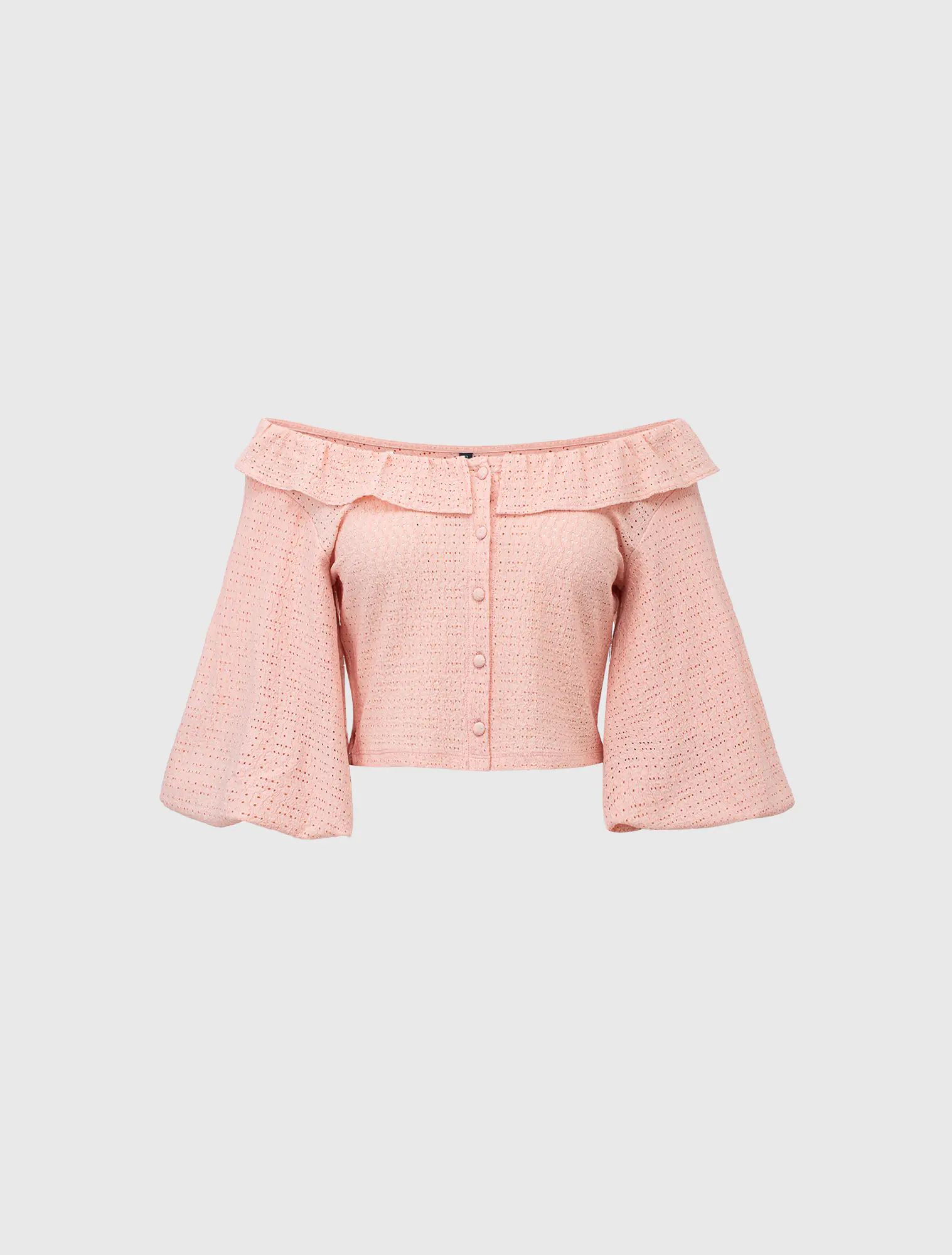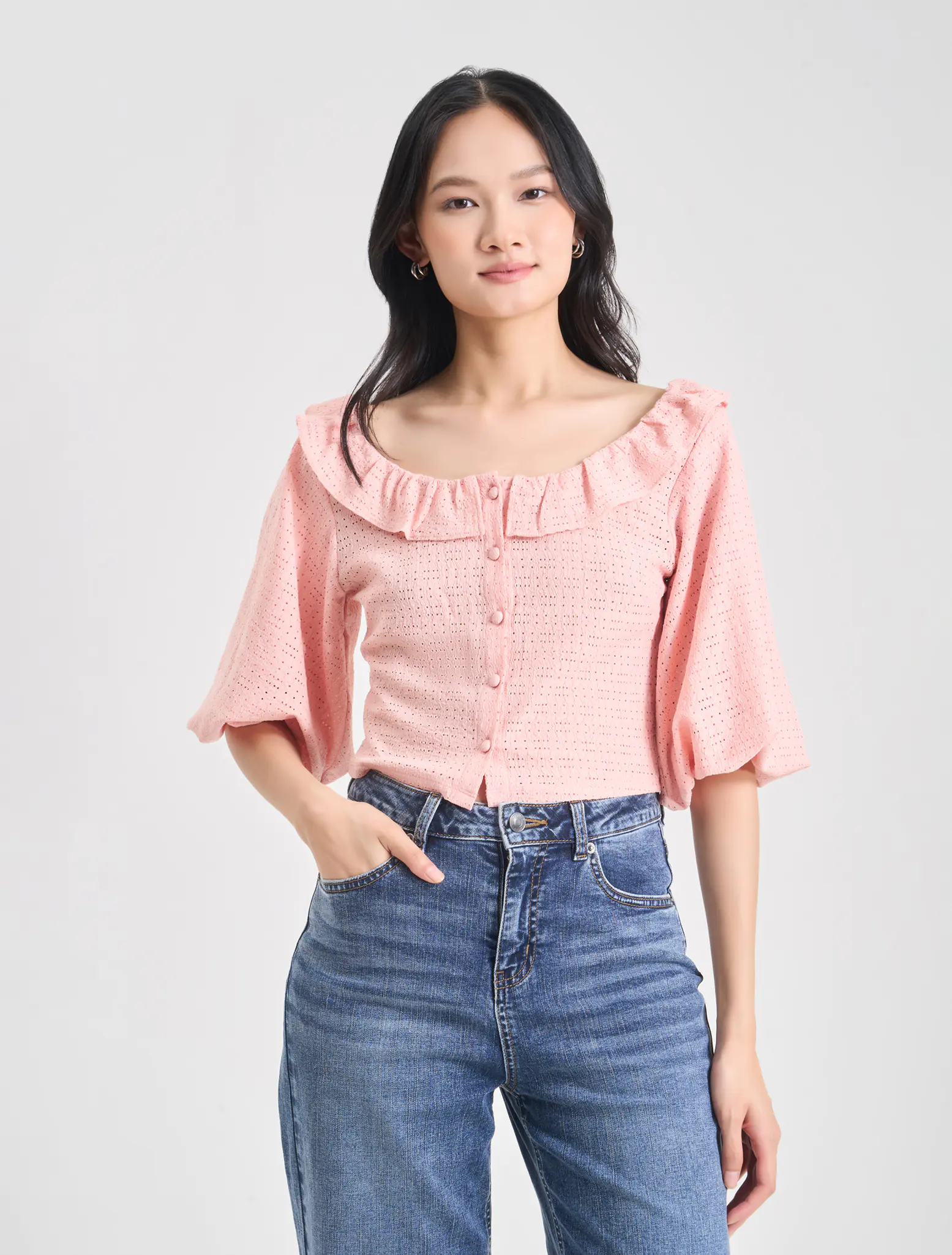 Áo kiểu nữ dáng ngắn cổ bèo, tay bồng nữ tính, hiện đại, trẻ trung.