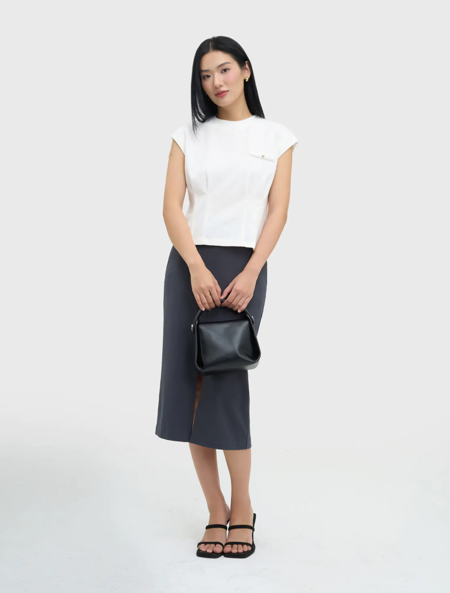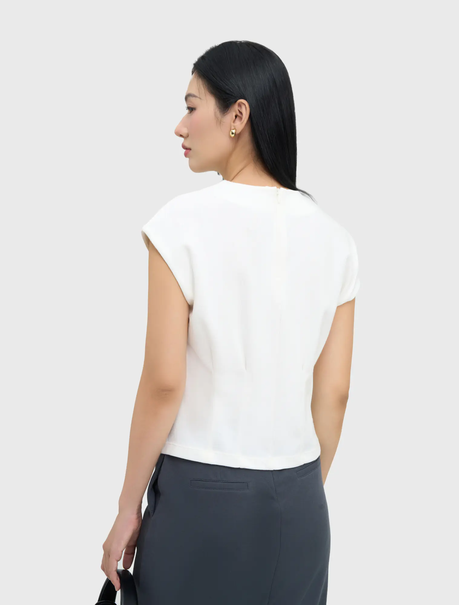 Áo kiểu nữ cổ tròn, dáng eo. Chất liệu dệt kim co dãn, dễ chịu, phù hợp với môi trường văn phòng, công sở, dạo phố.