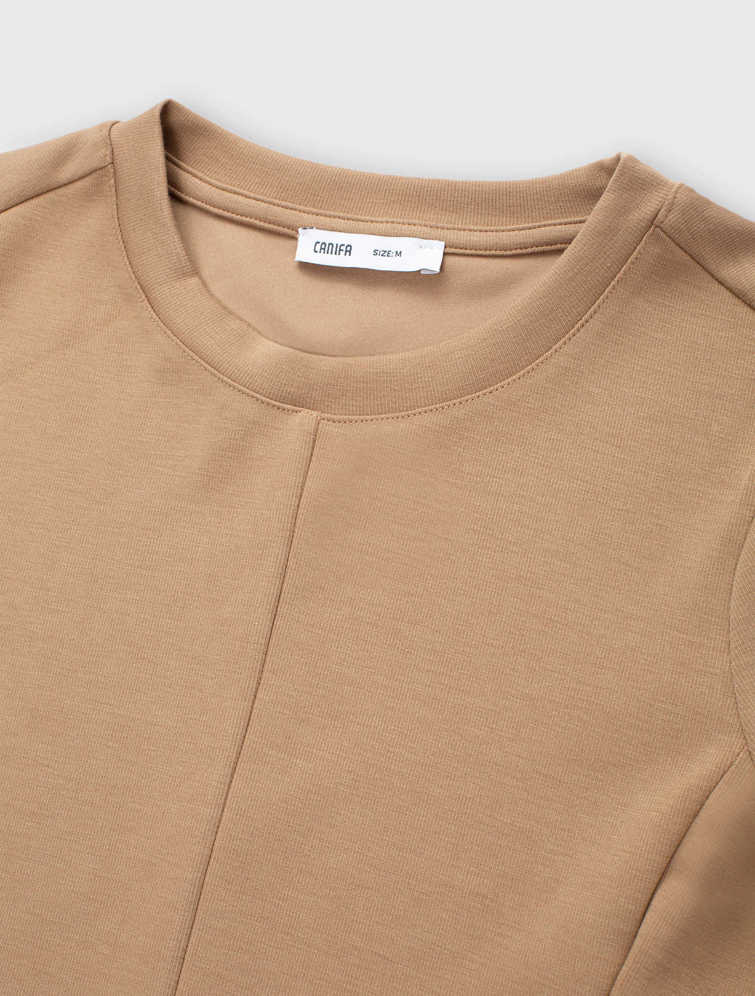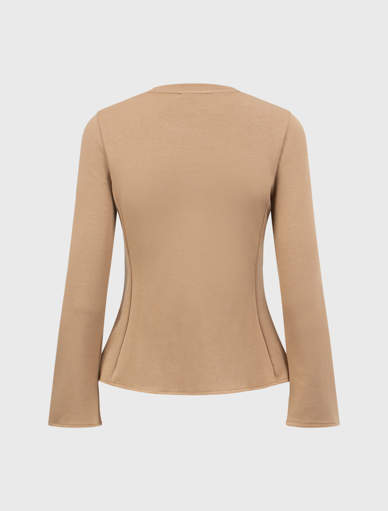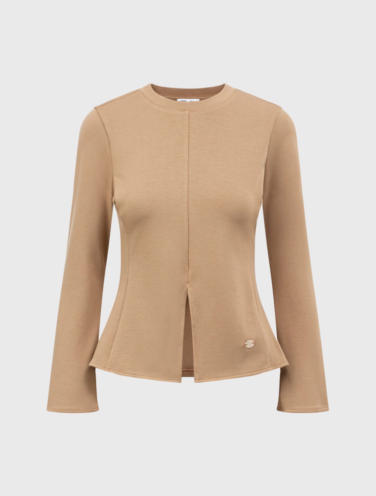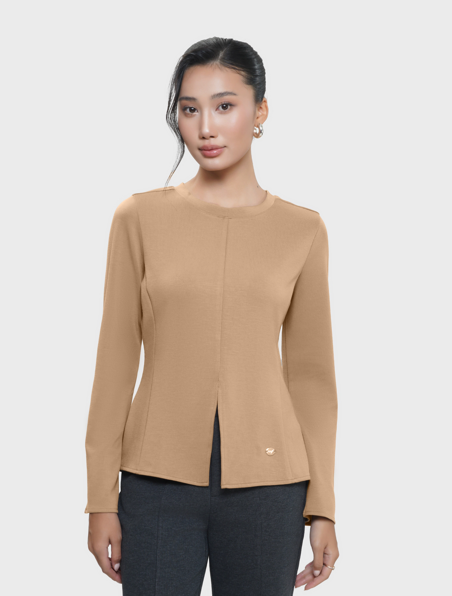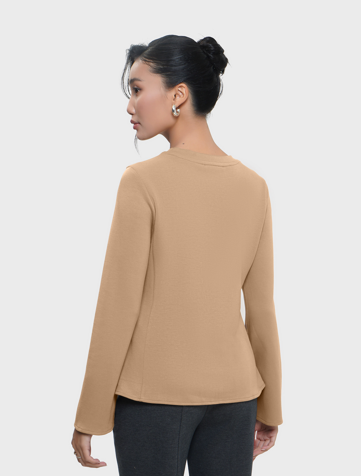 Áo kiểu nữ dài tay, tay hơi loe nhẹ, cổ tròn.