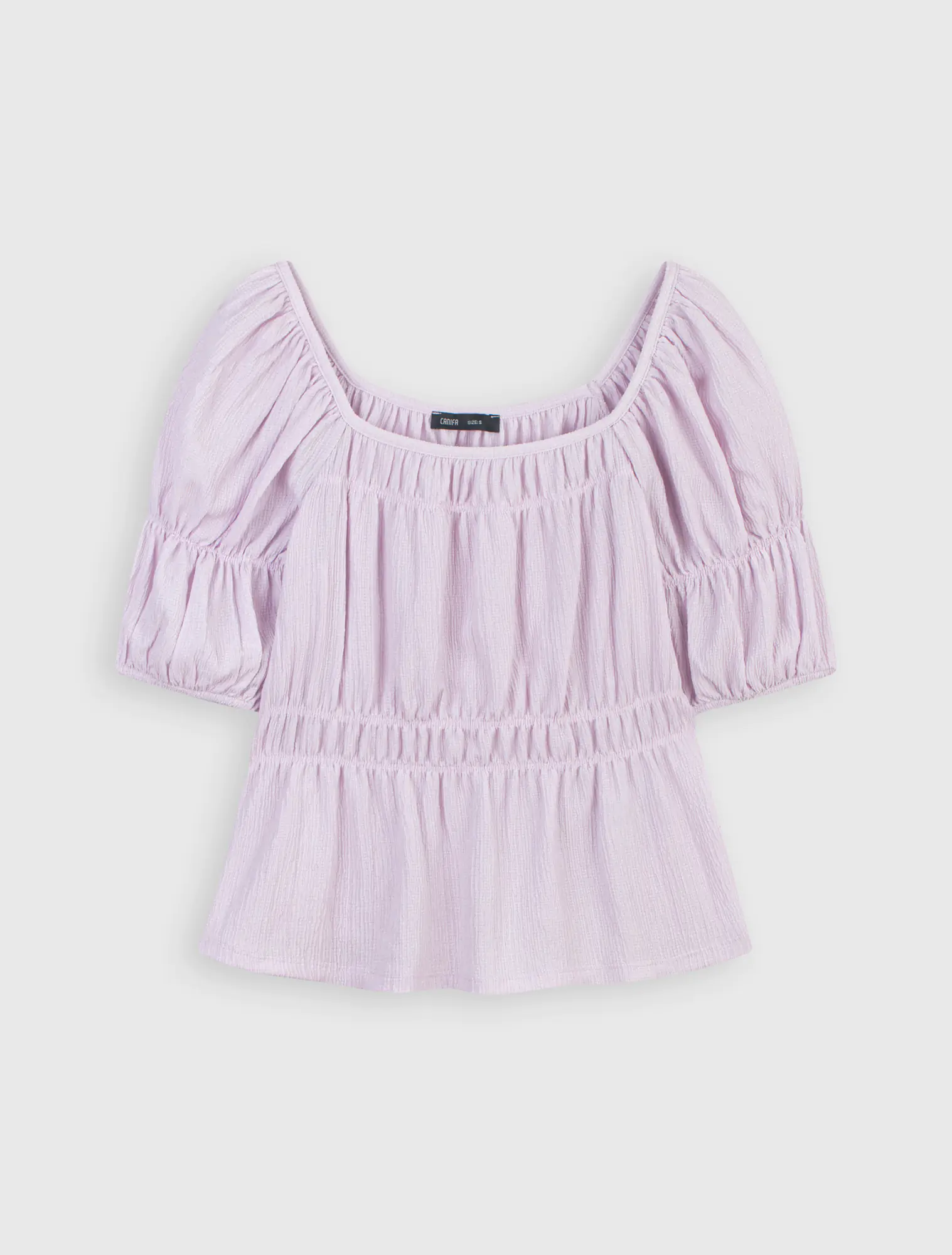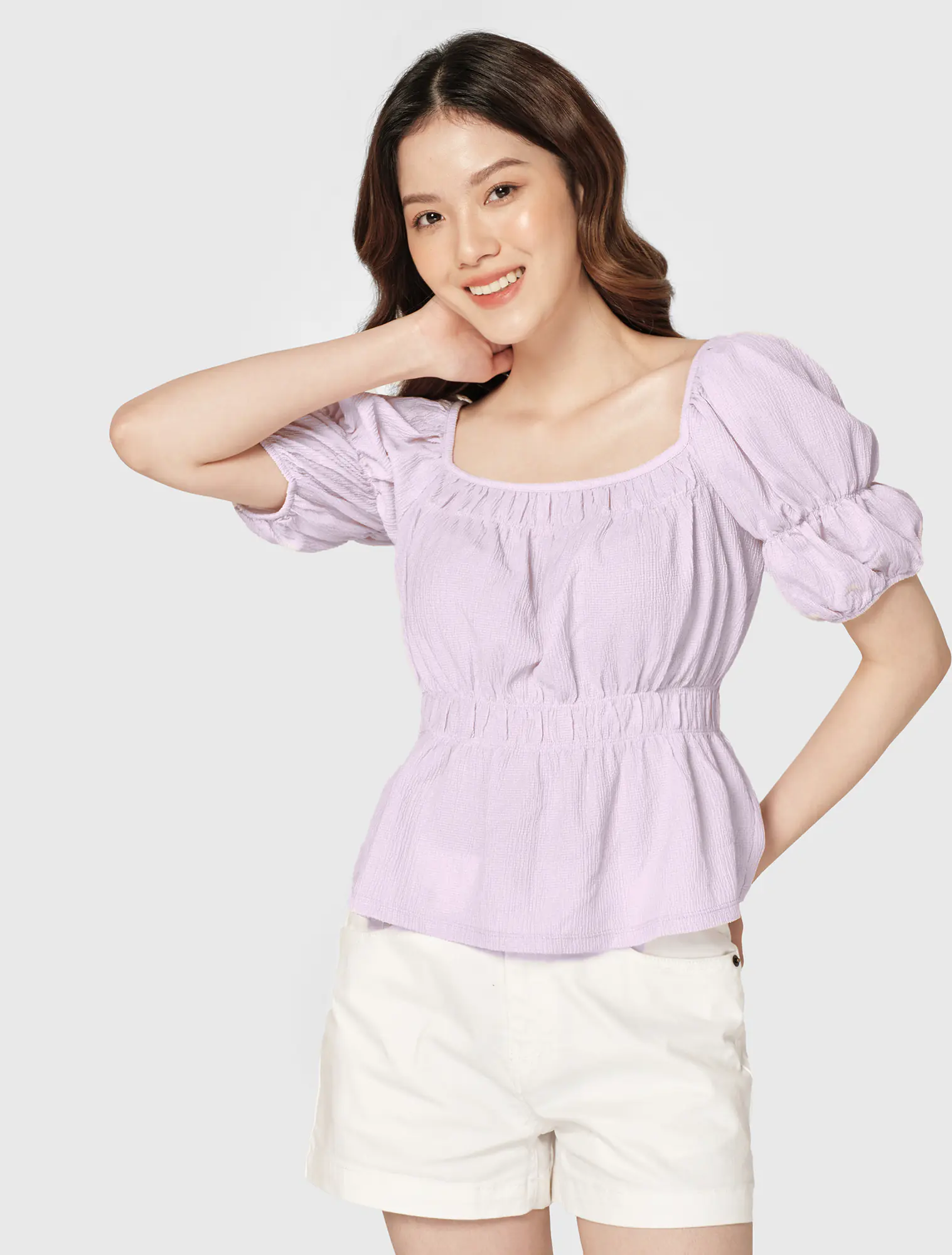 Áo phông cổ vuông chạy smoking dành cho nữ phong cách nhẹ nhàng