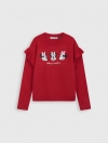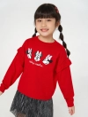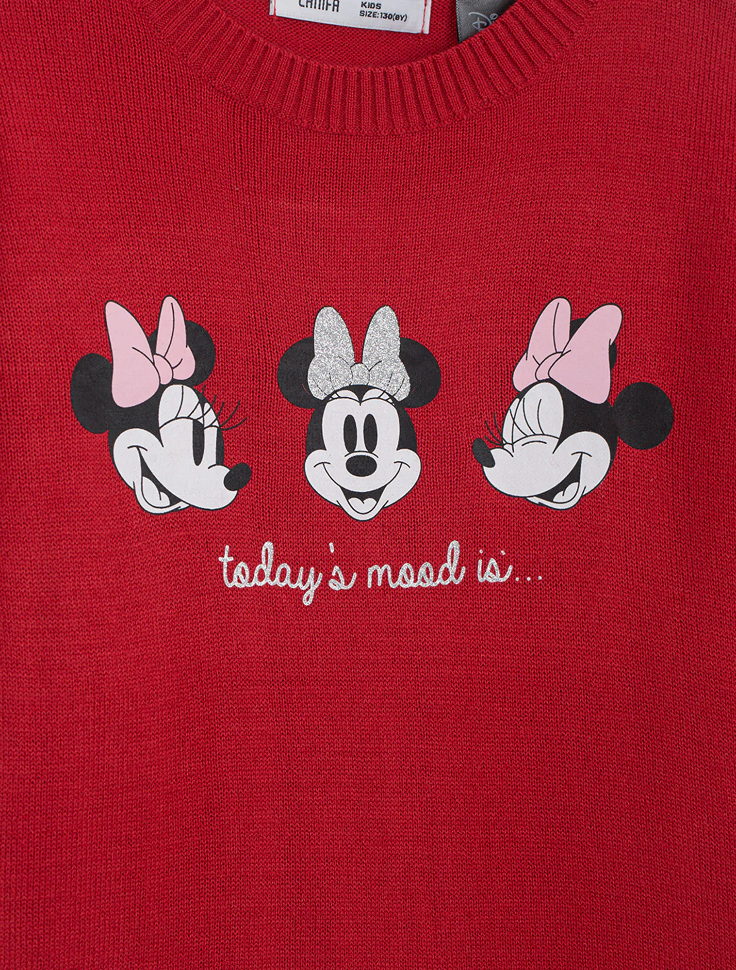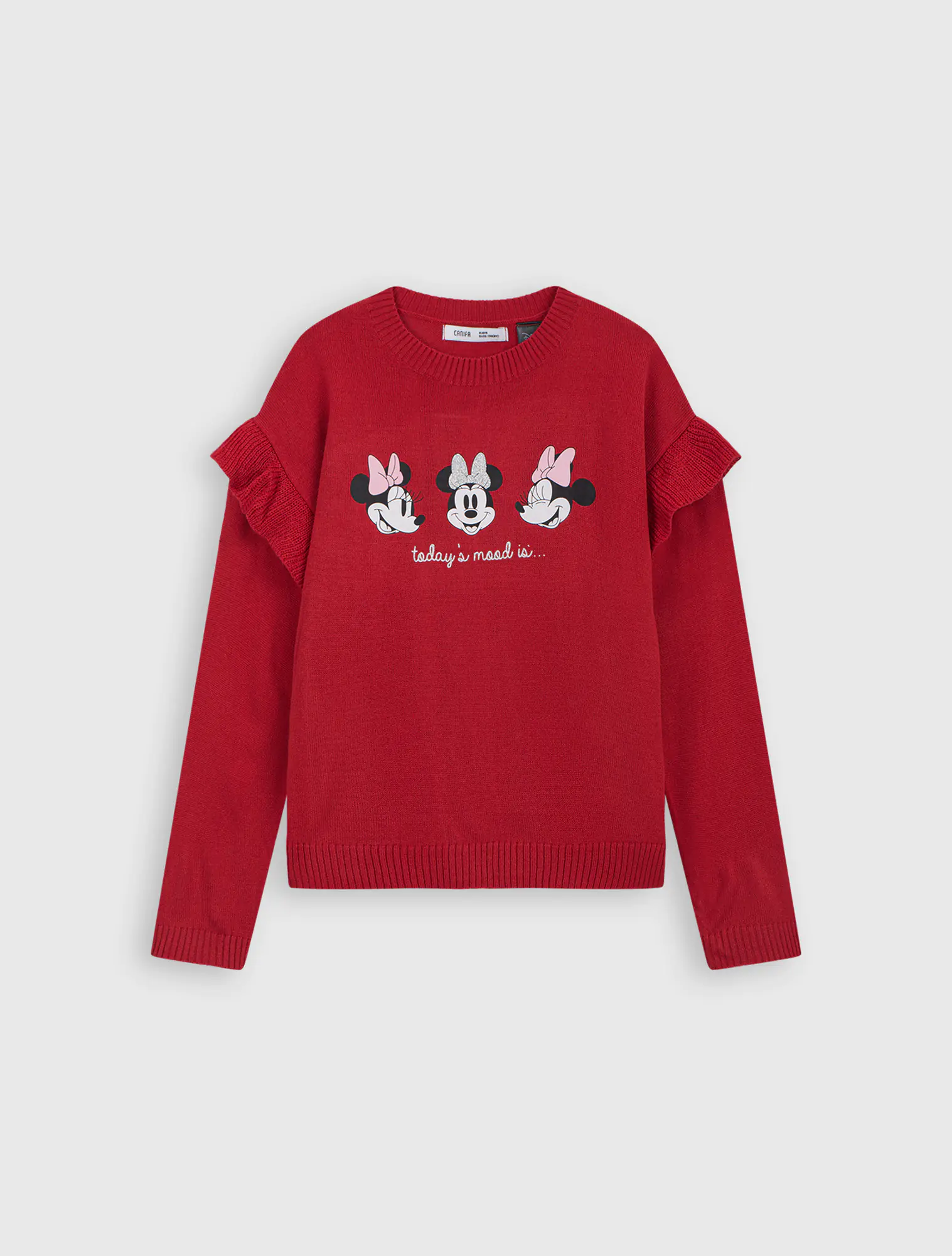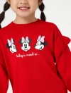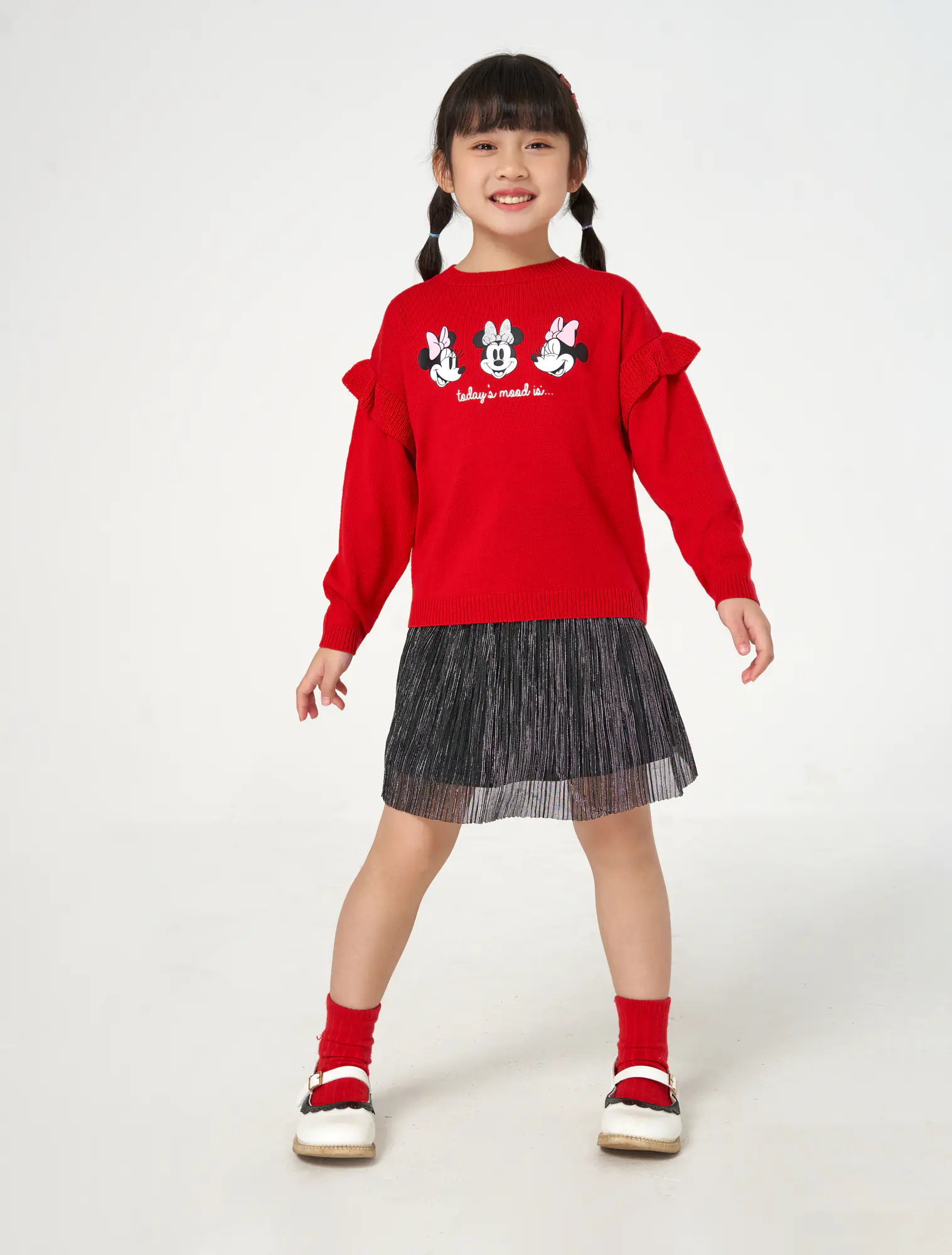 Áo len bé gái cổ tròn dài tay phối bèo có hình in Minnie