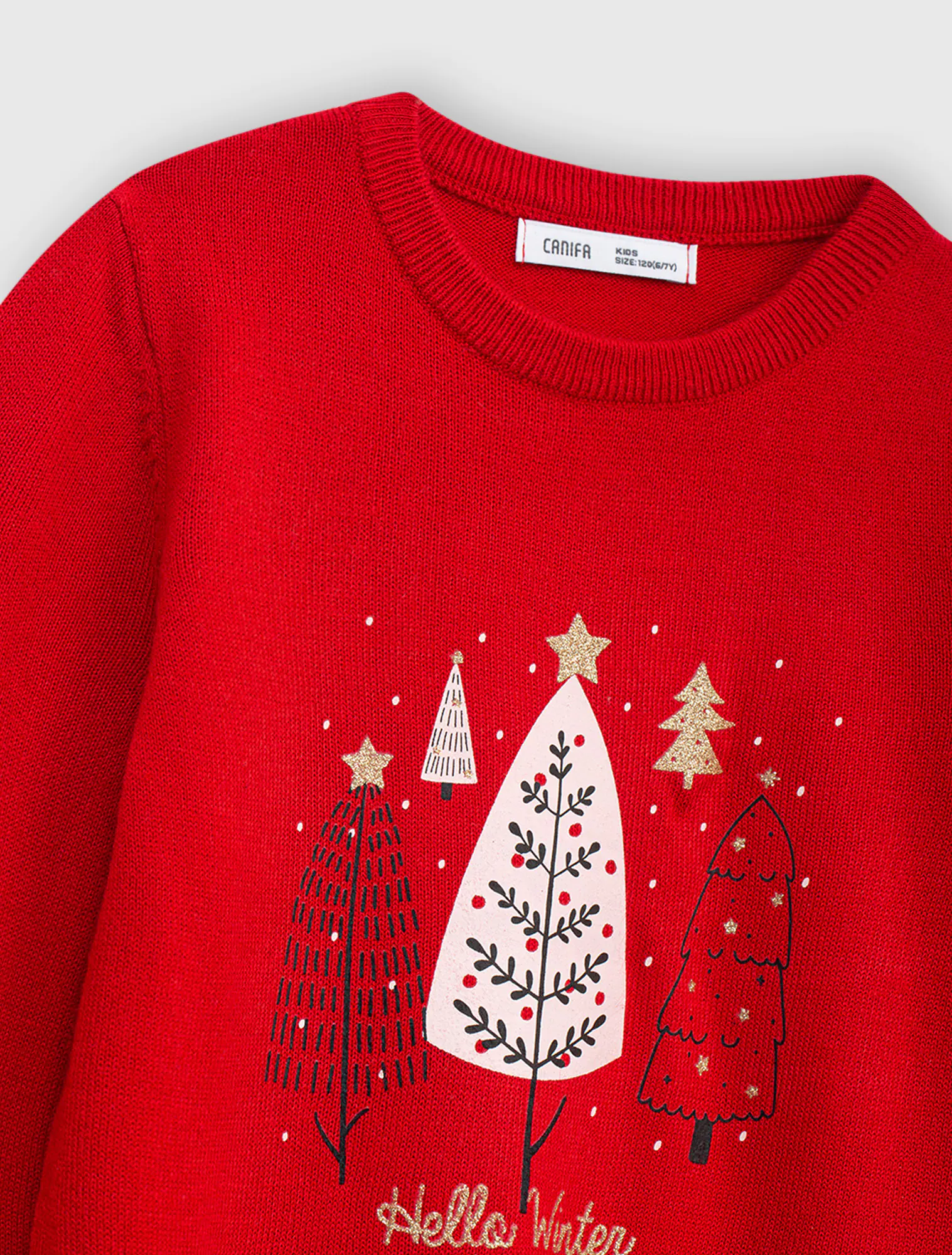 Áo len cổ tròn, dài tay. Phom dáng cơ bản, có hình in thân trước. Sản phẩm phù hợp với thời tiết giao mùa.