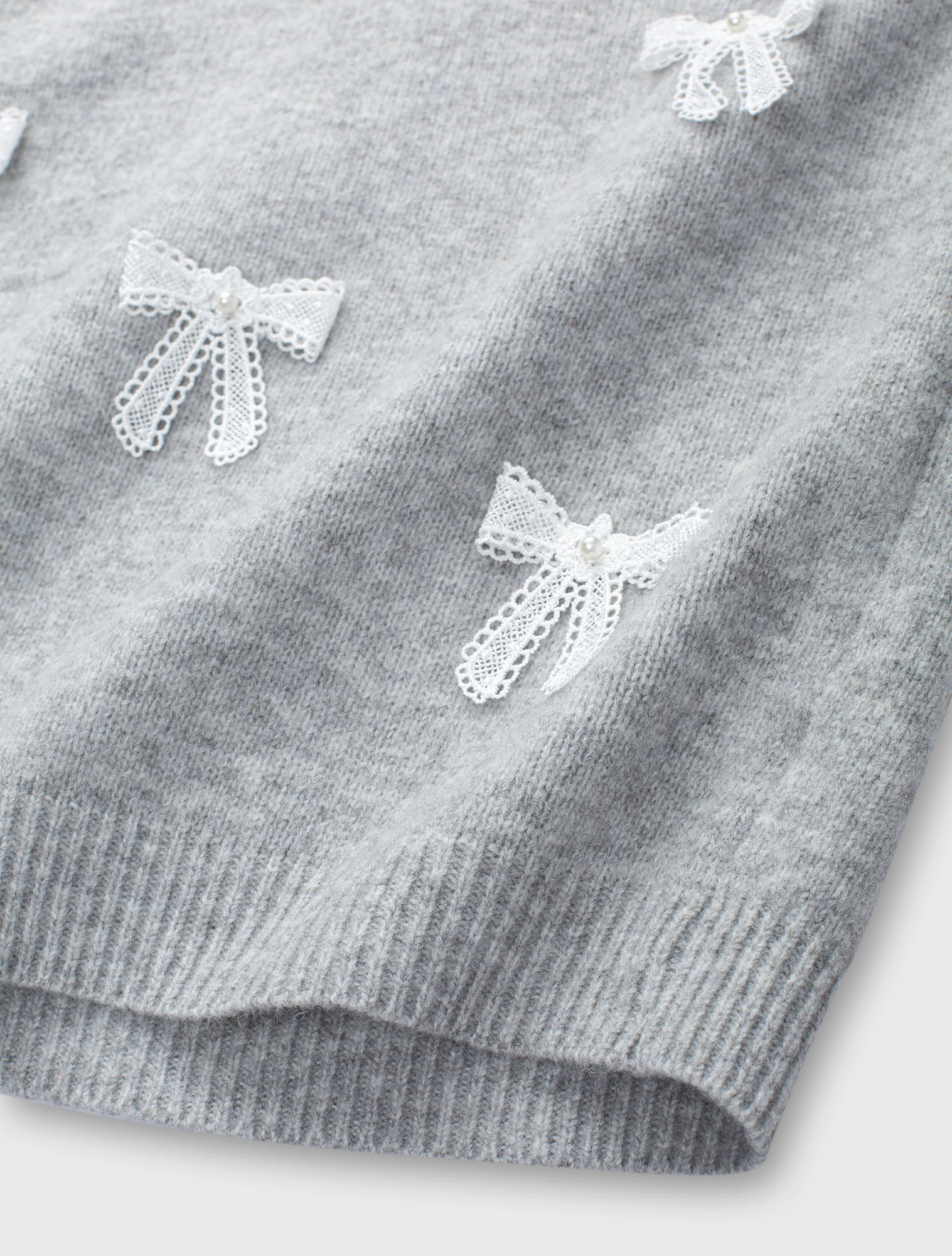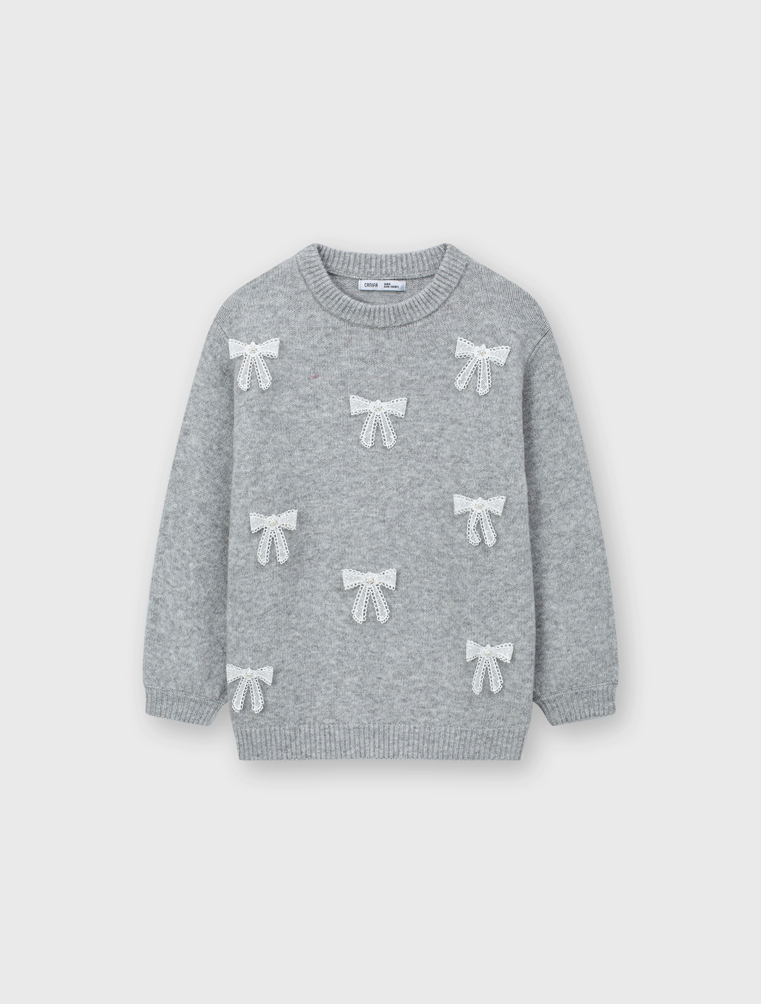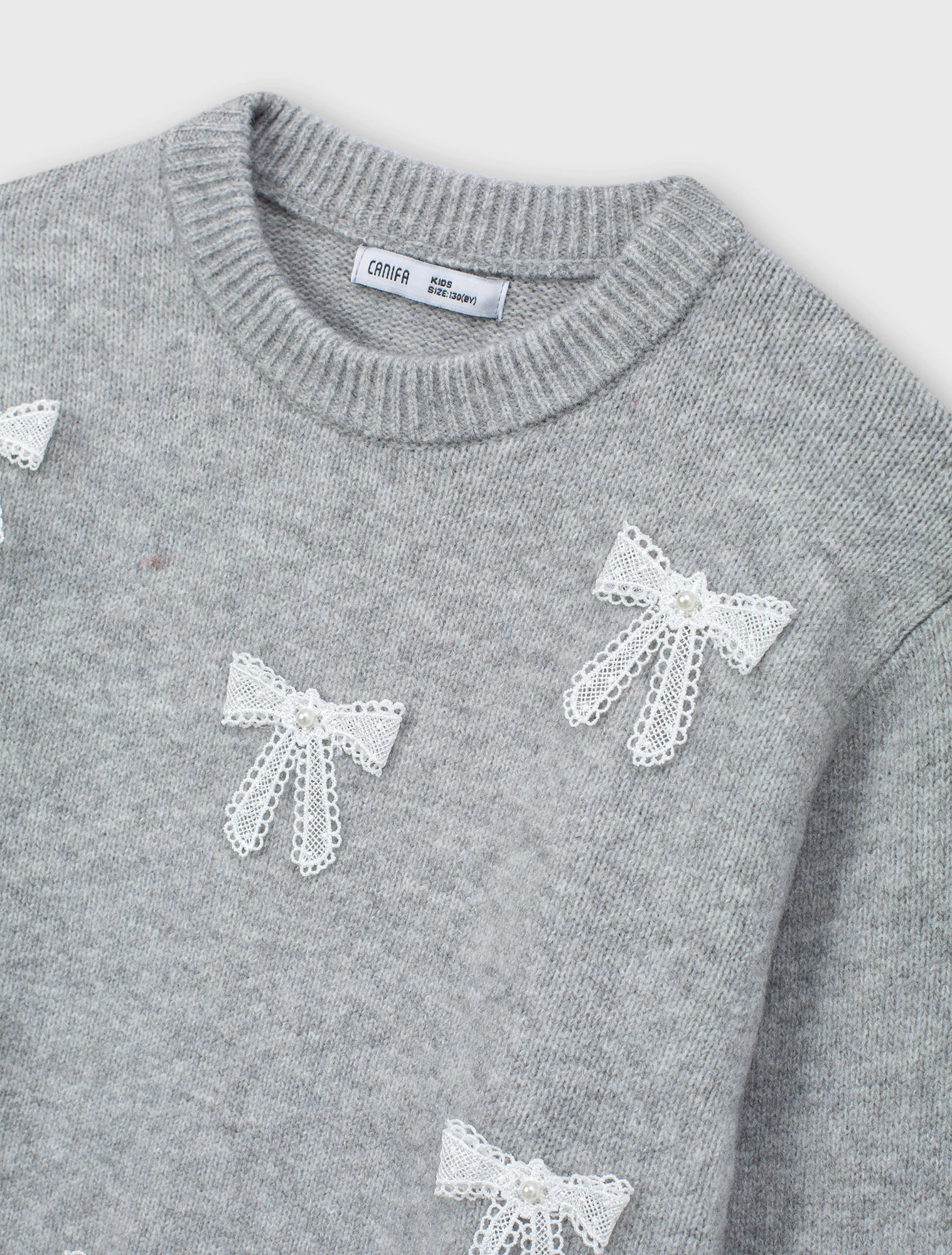 Áo len bé gái. Đính trang trí trên thân áo, có thể phối linh hoạt với các trang phục khác. Sợi len mềm mại, dễ chịu giúp các bé giữ ấm và năng động.