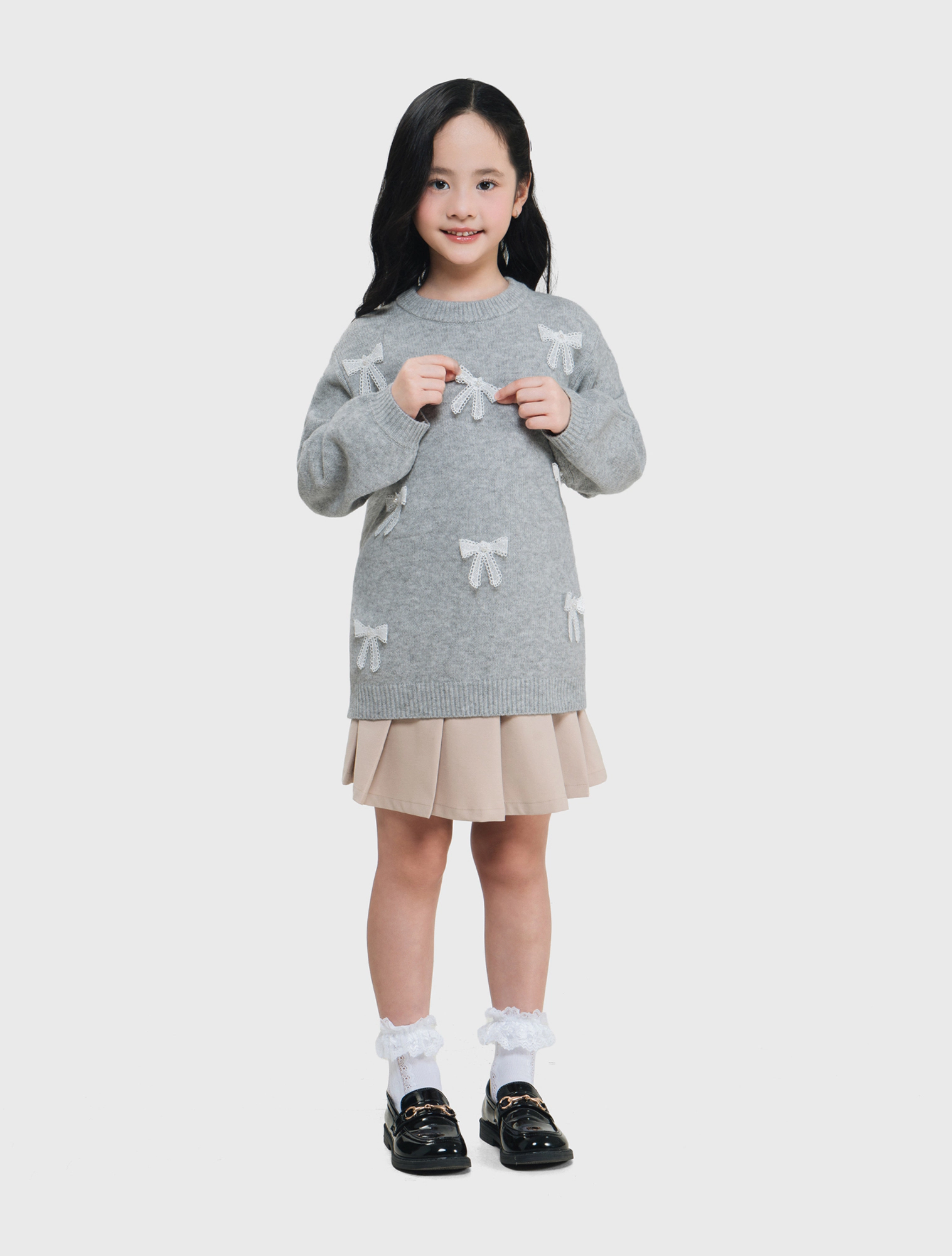Áo len bé gái đính nơ