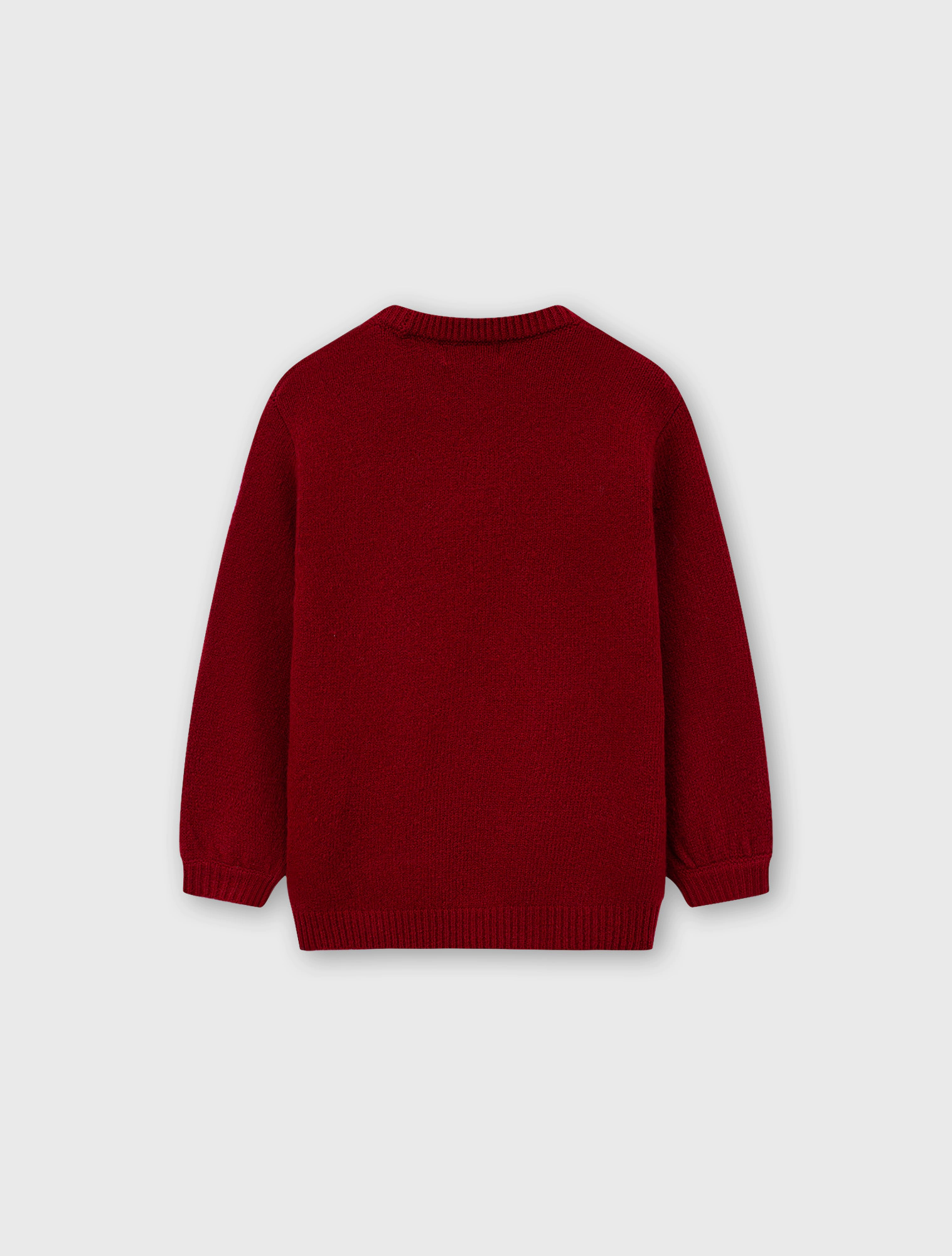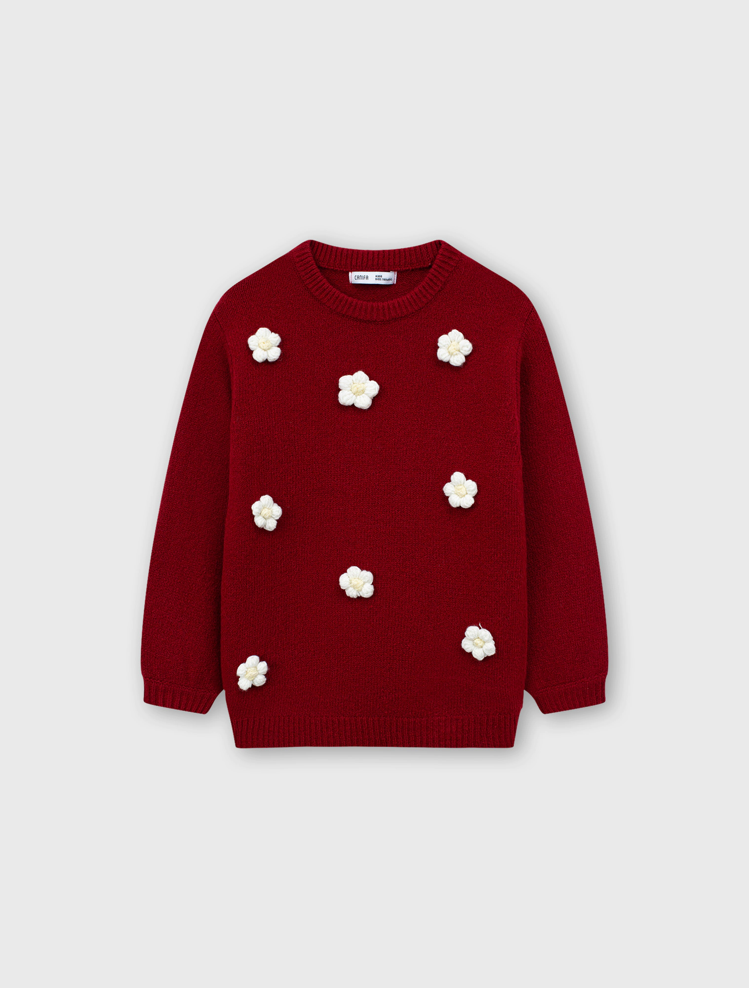 Áo len bé gái. Đính trang trí trên thân áo, có thể phối linh hoạt với các trang phục khác. Sợi len mềm mại, dễ chịu giúp các bé giữ ấm và năng động.