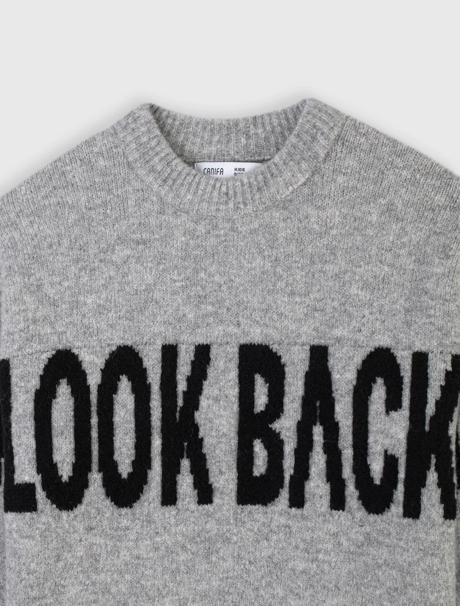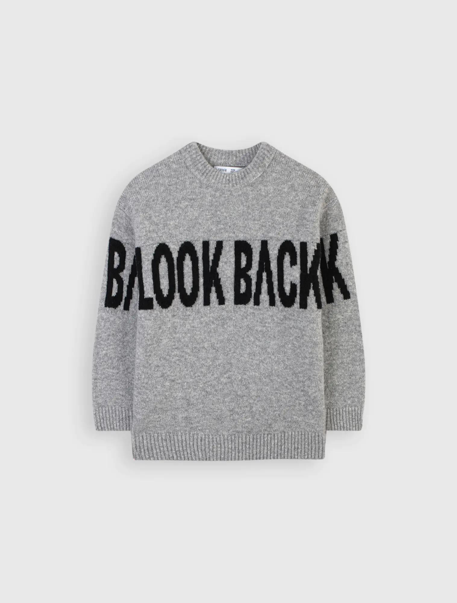 Áo len sợi kiểu, dệt chữ thân trước và 2 tay, cổ tròn, dáng rộng