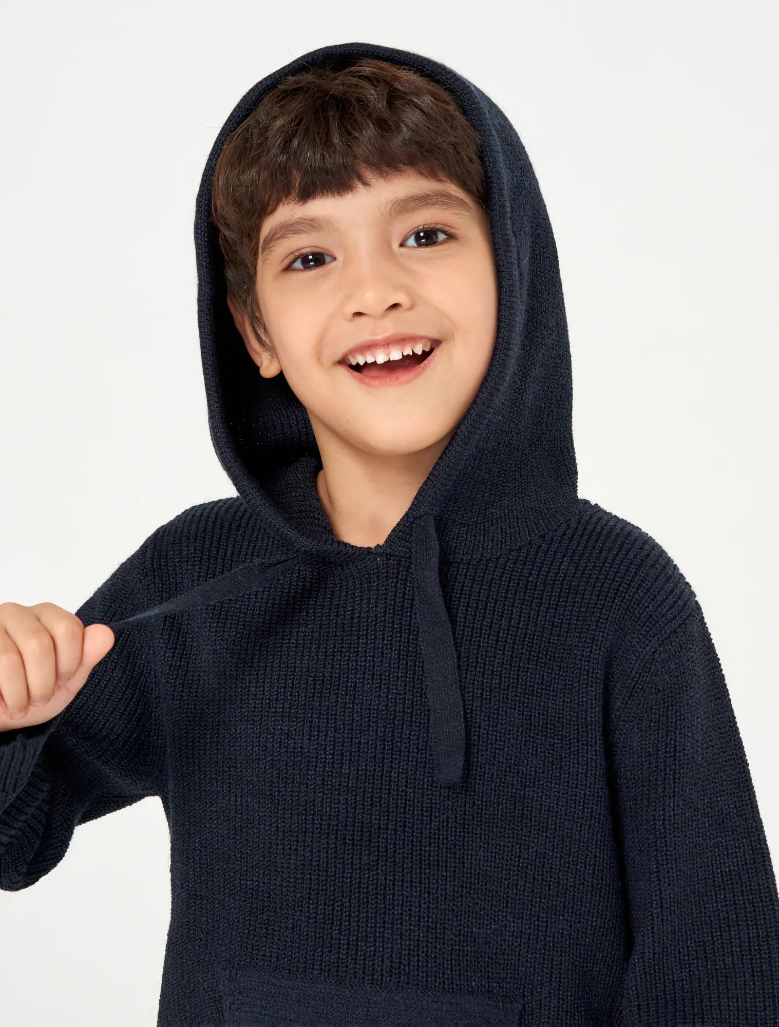 Áo len bé trai có mũ dài tay