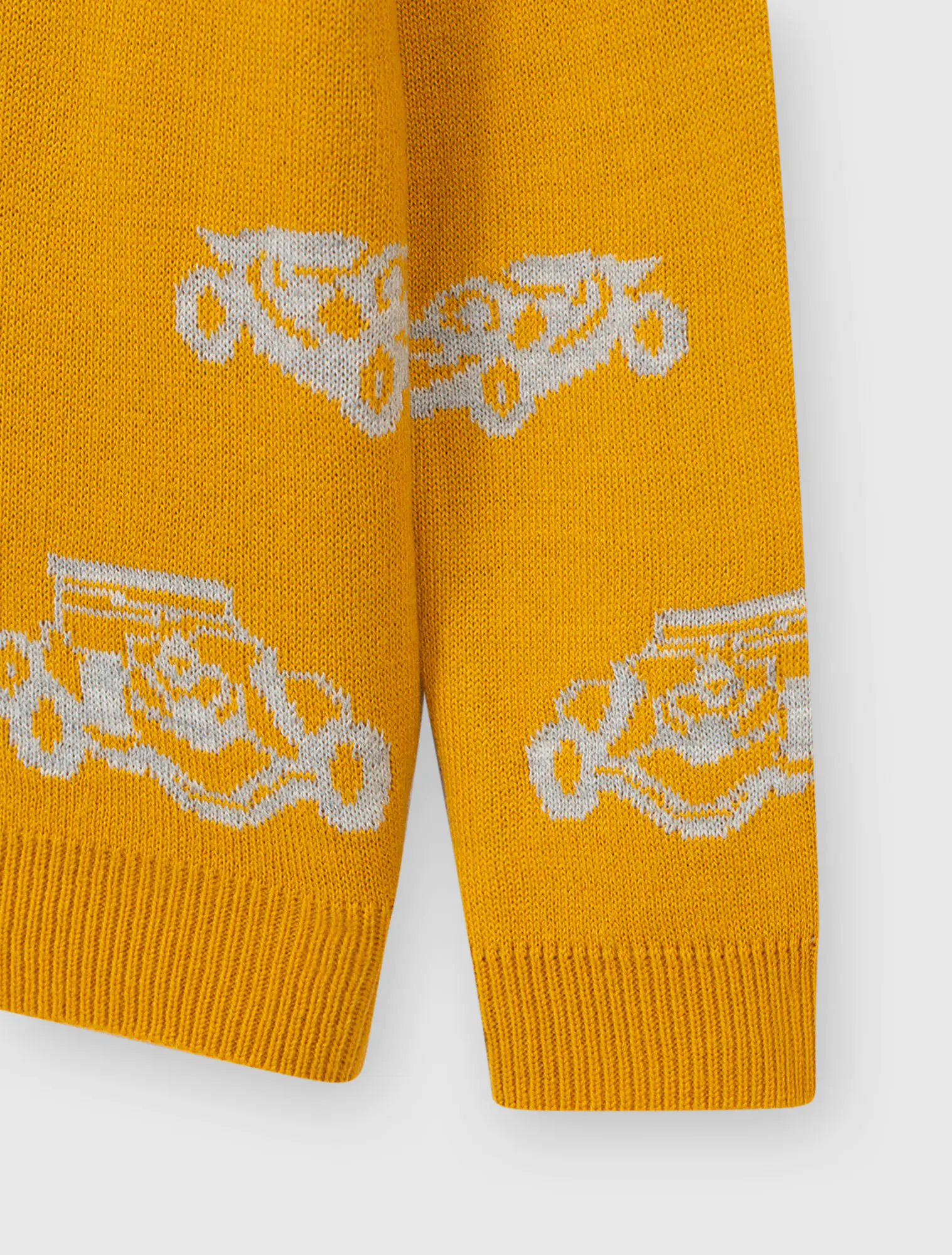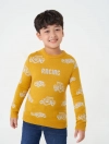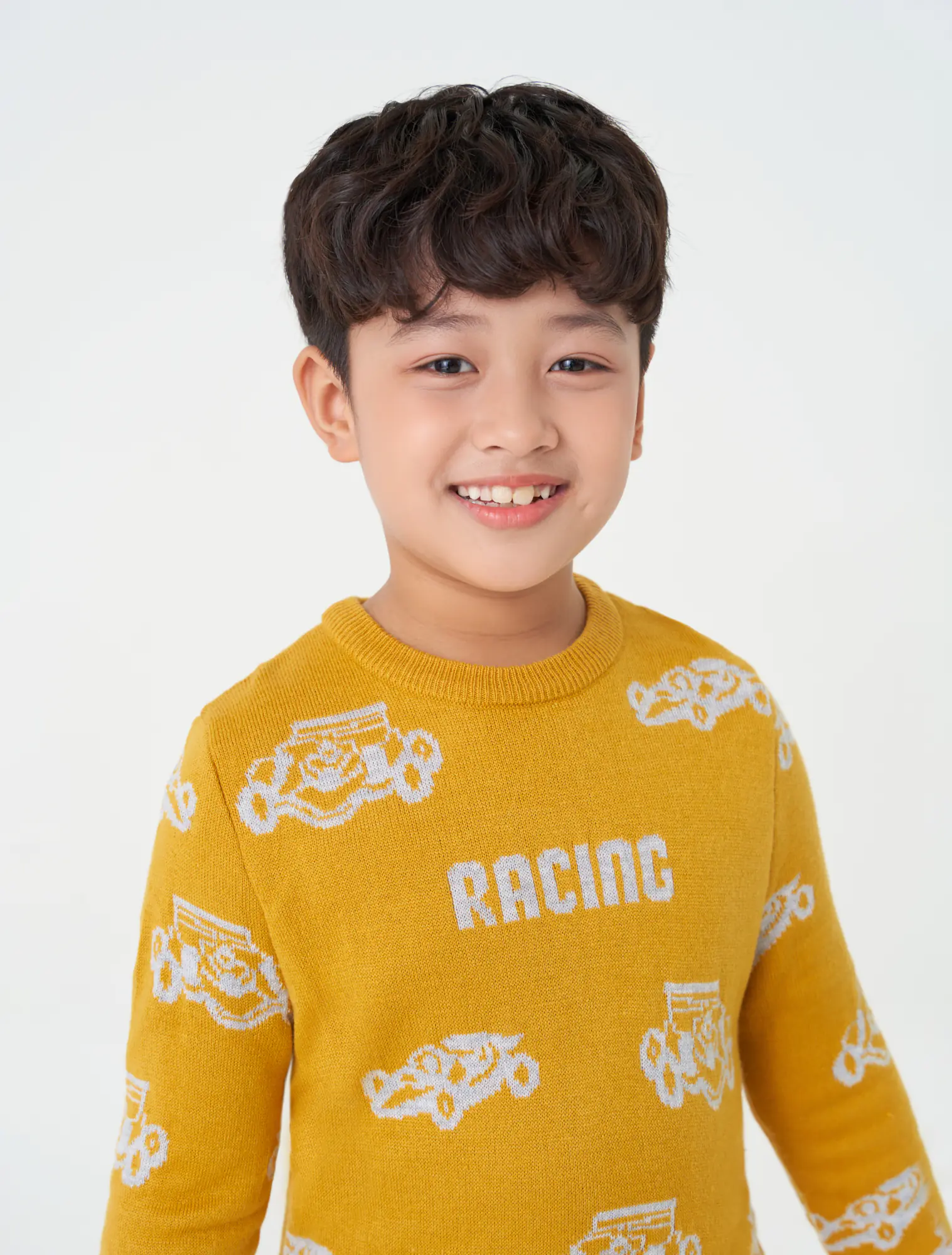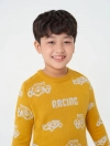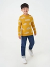 Áo len cổ tròn, dài tay. Phom dáng cơ bản, dệt kiểu họa tiết, Cổ, gấu áo, gấu tay dệt 1 màu nền.