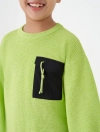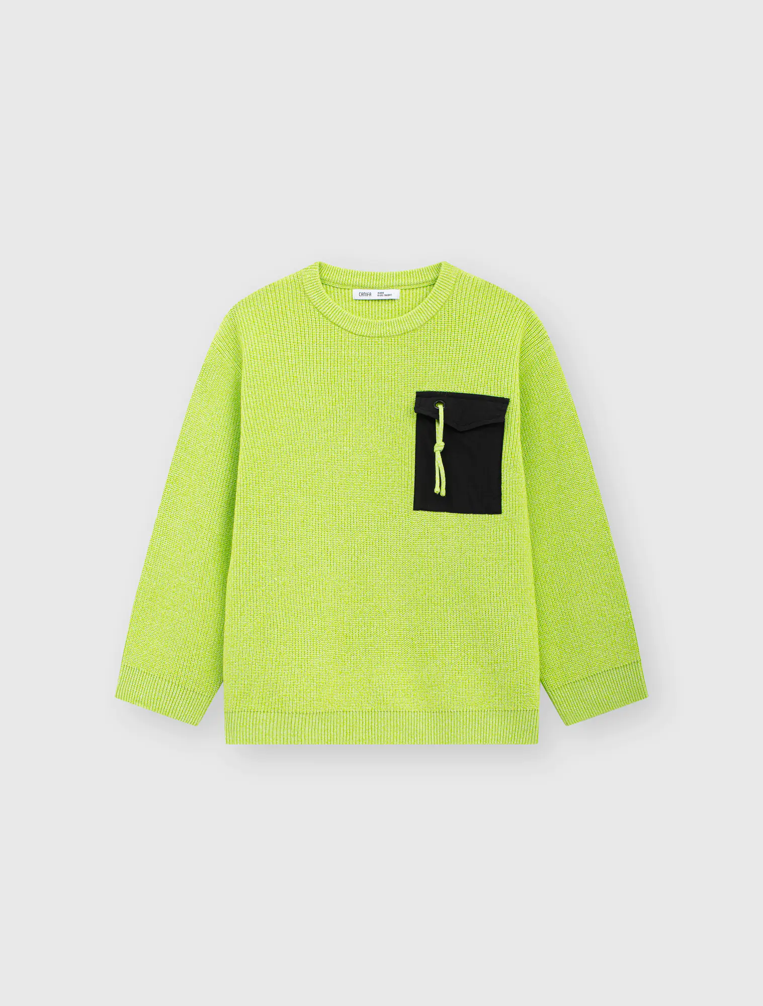 Áo len cổ tròn, dài tay, túi ốp phối nguyên liệu. Phom dáng thời trang, kiểu dệt interlock chắc chắn.