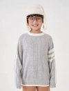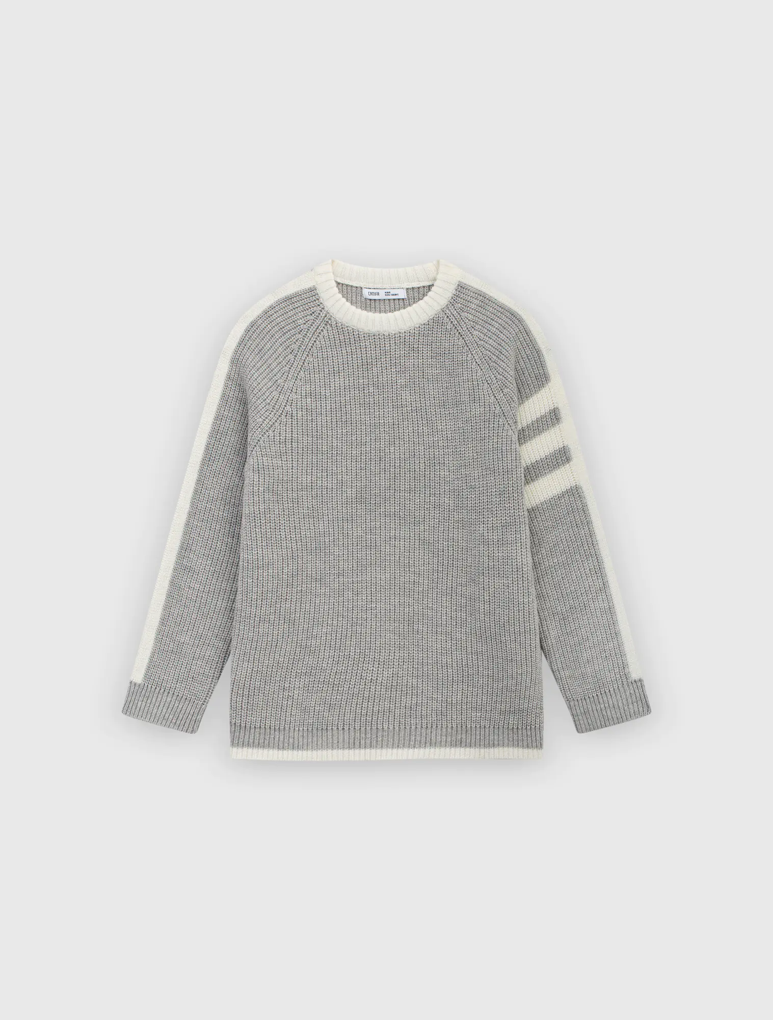 Áo len dài tay, kiểu raglange phối màu dọc tay và kẻ 1 bên tay. Chất liệu len dầy, cùng kiểu dệt ấm áp.