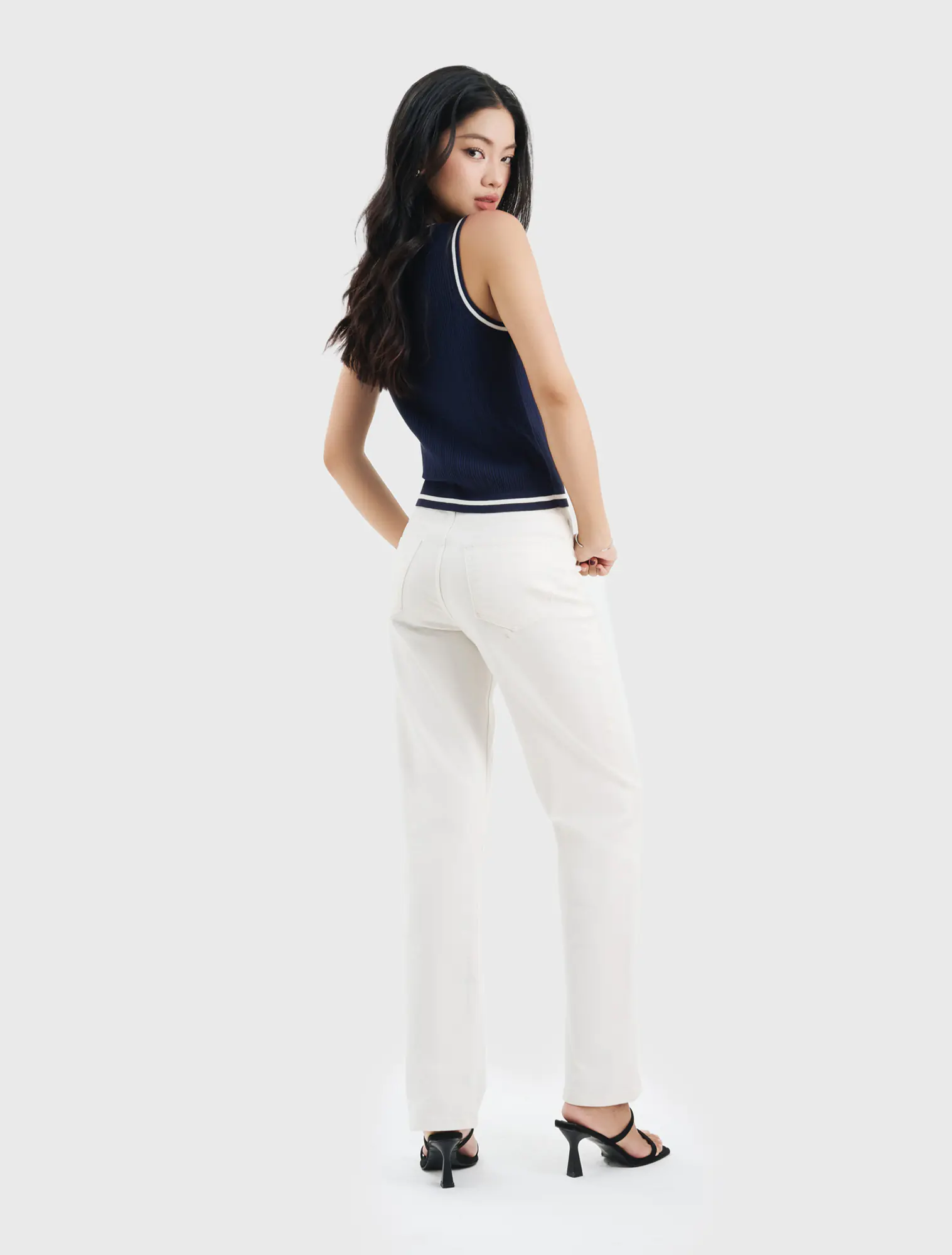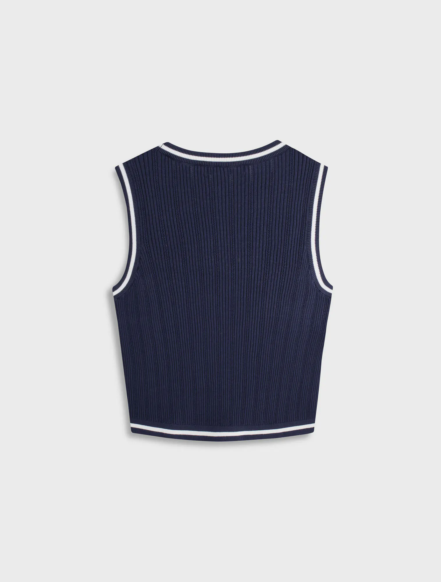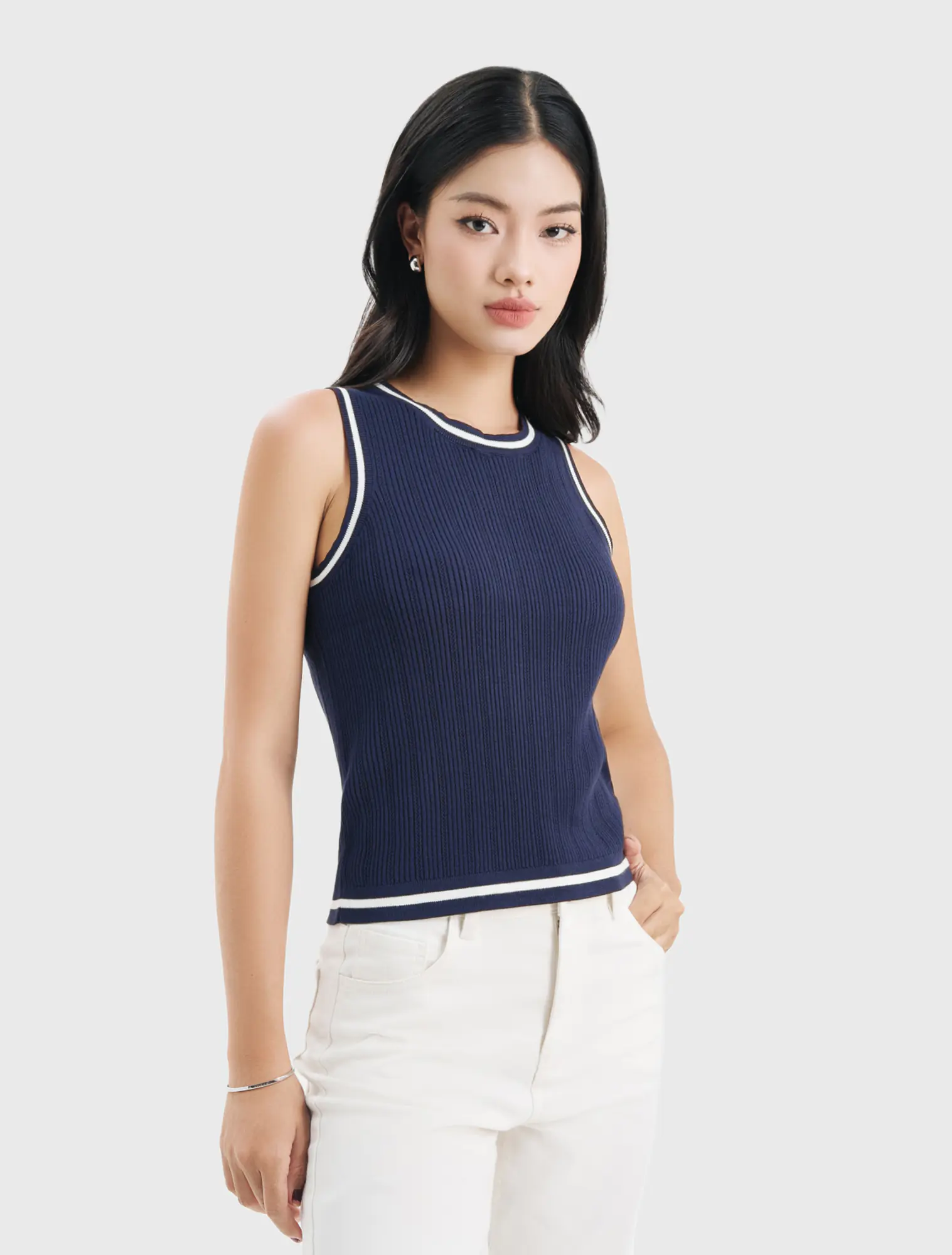 Áo len nữ sát nách, dáng áo rộng vừa, phối màu, chất liệu mềm mại, thoải mái, hoàn cảnh sử dụng linh hoạt.