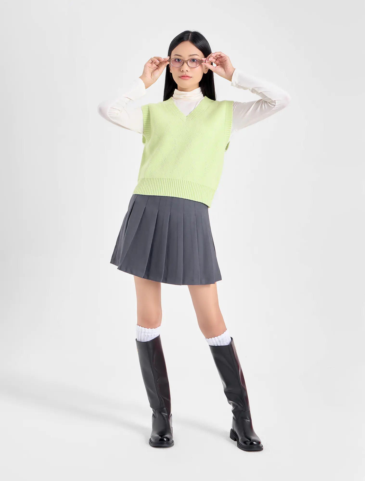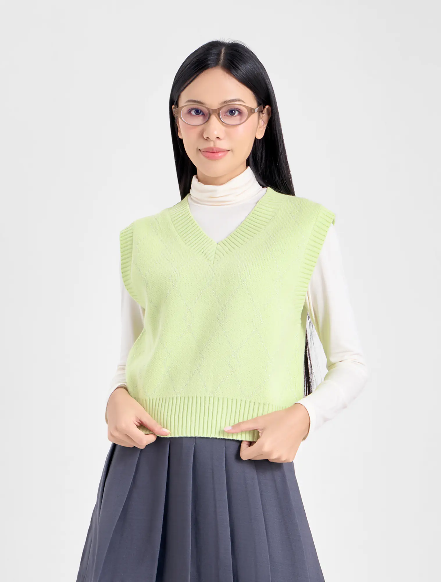 Áo len gilet nữ họa tiết trám phối kim tuyến