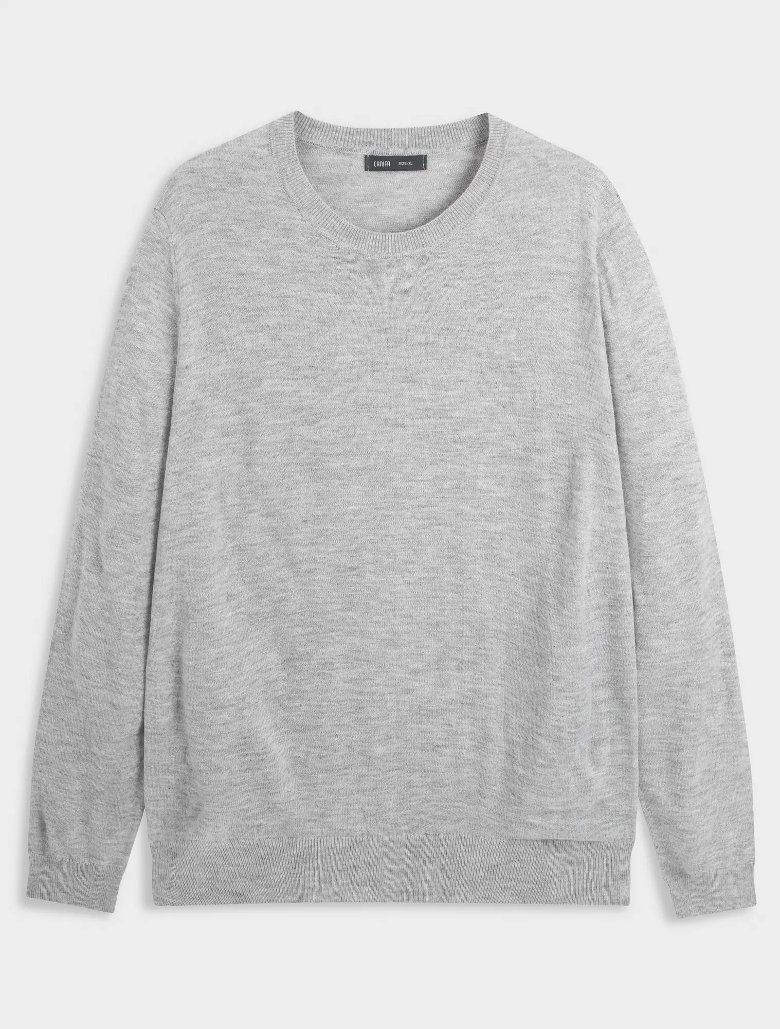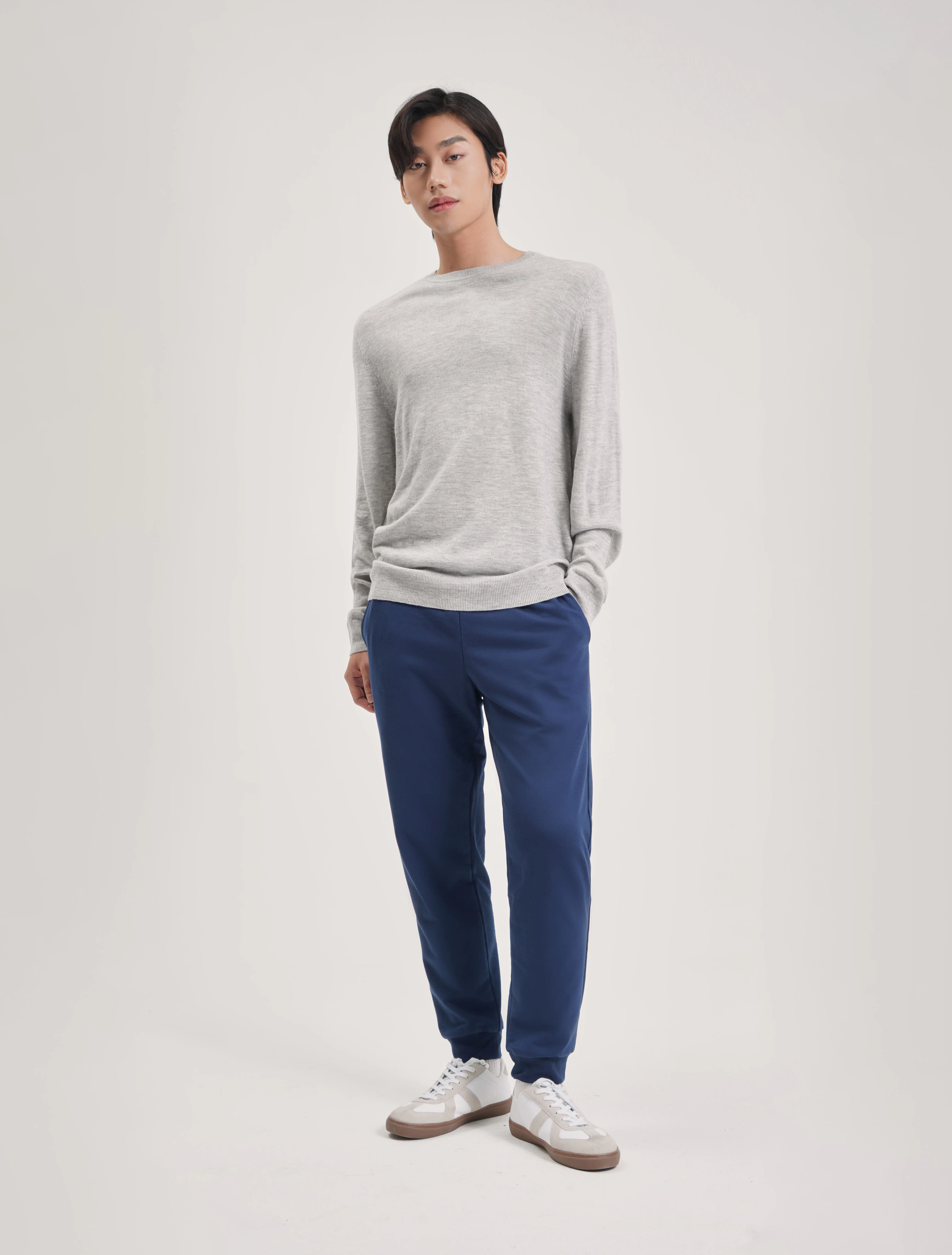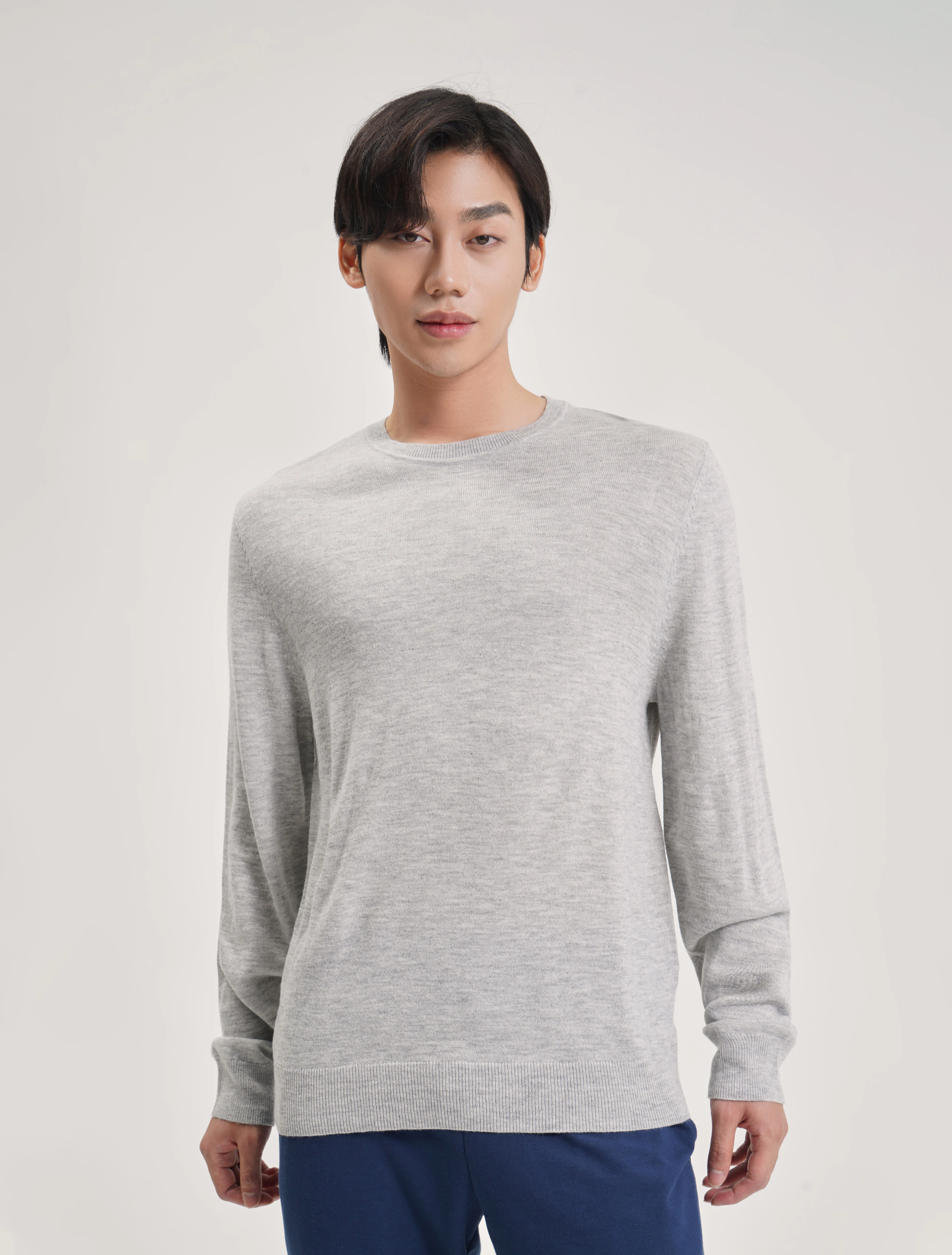 Áo len nam cổ tròn dáng ôm gọn bằng sợi 50% acrylic 50% Polyester mềm, mịn có cổ tròn, viền gân nổi, tay dài với cổ tay và gấu bo gân nổi.