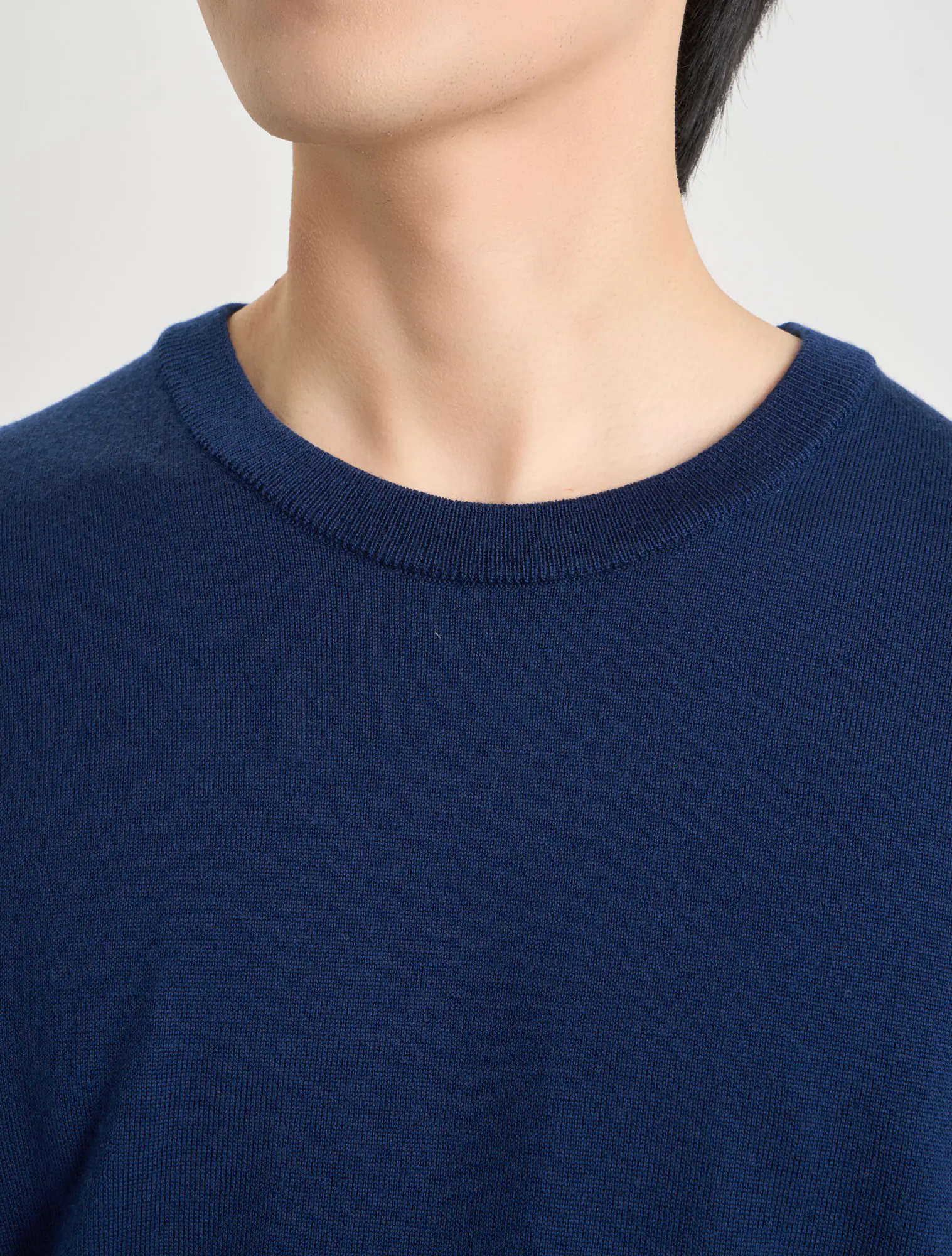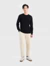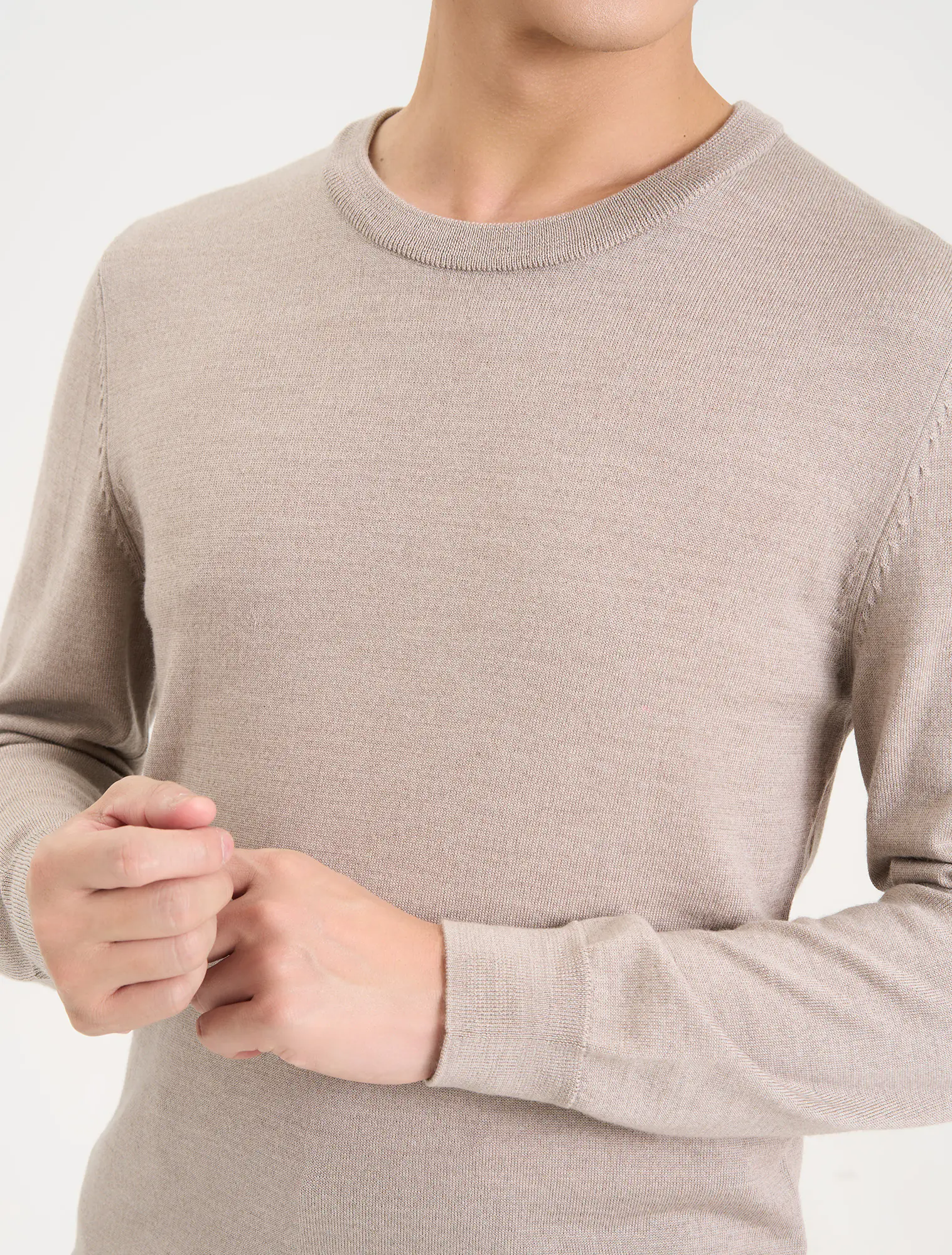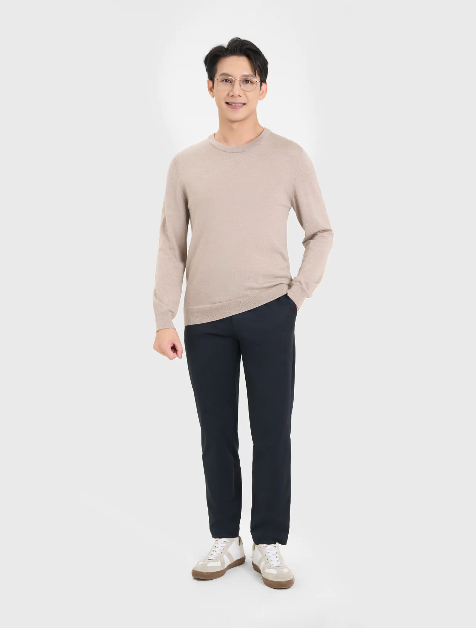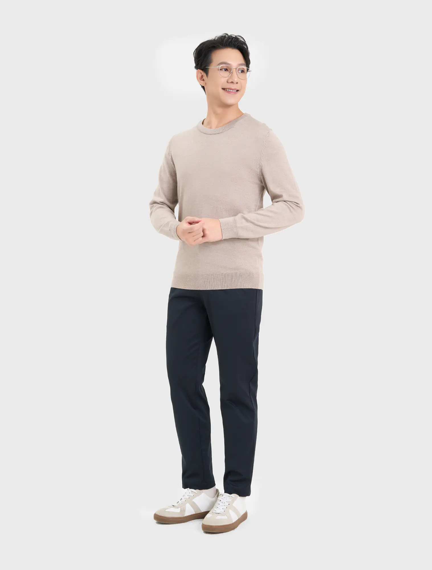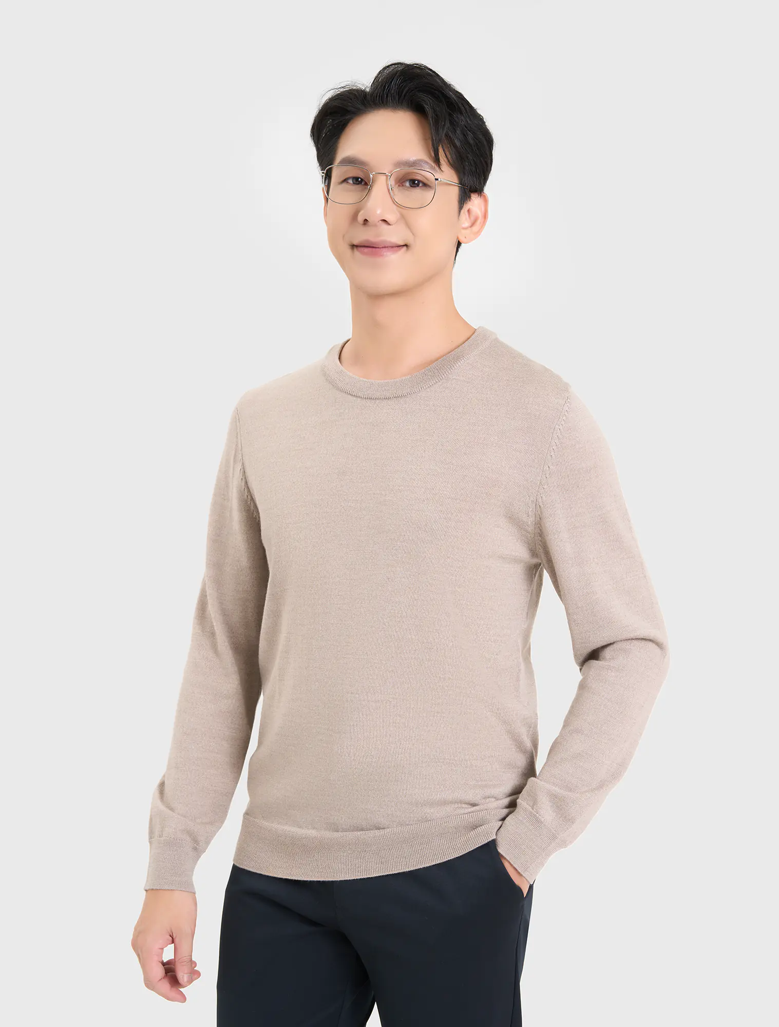 Áo len nam dài tay, cổ tròn, dáng regular không quá ôm cũng không quá rộng tạo cho người mặc thấy thoải mái, vừa vặn. Phần thân áo dệt bằng chất liệu len lông cừu mềm, mịn, ấm áp, nhẹ nhàng, thoải mái khi mặc.