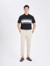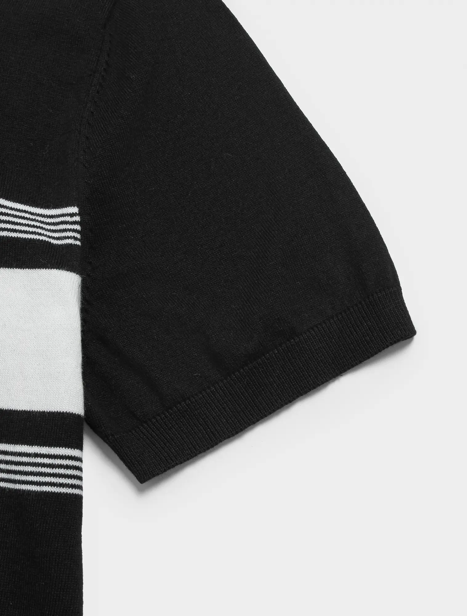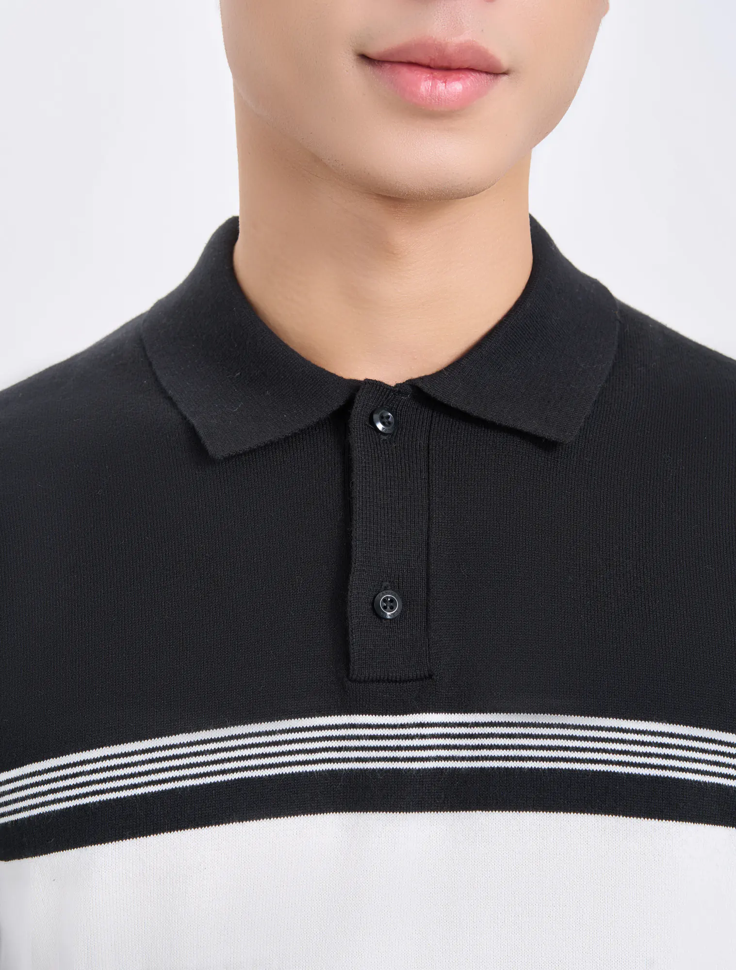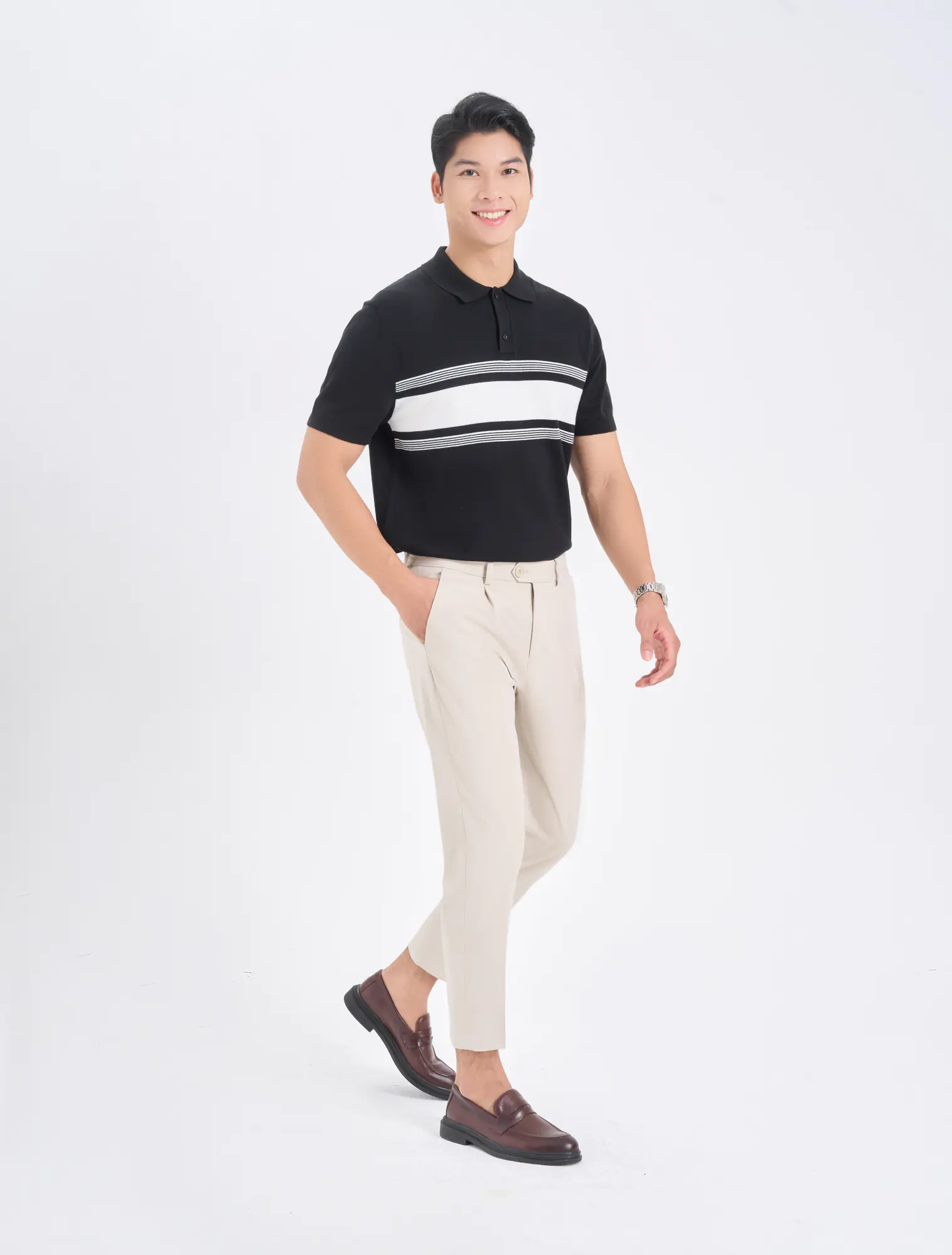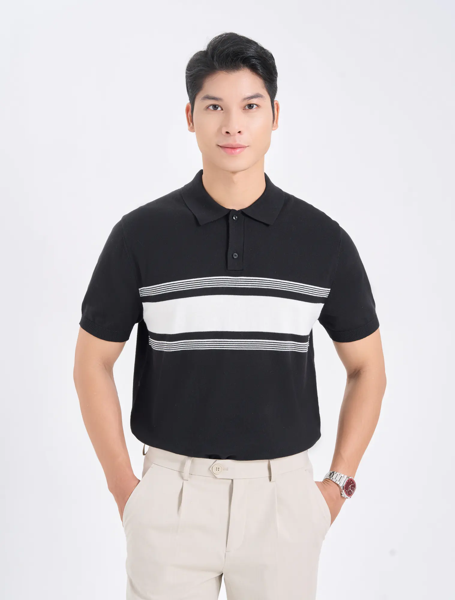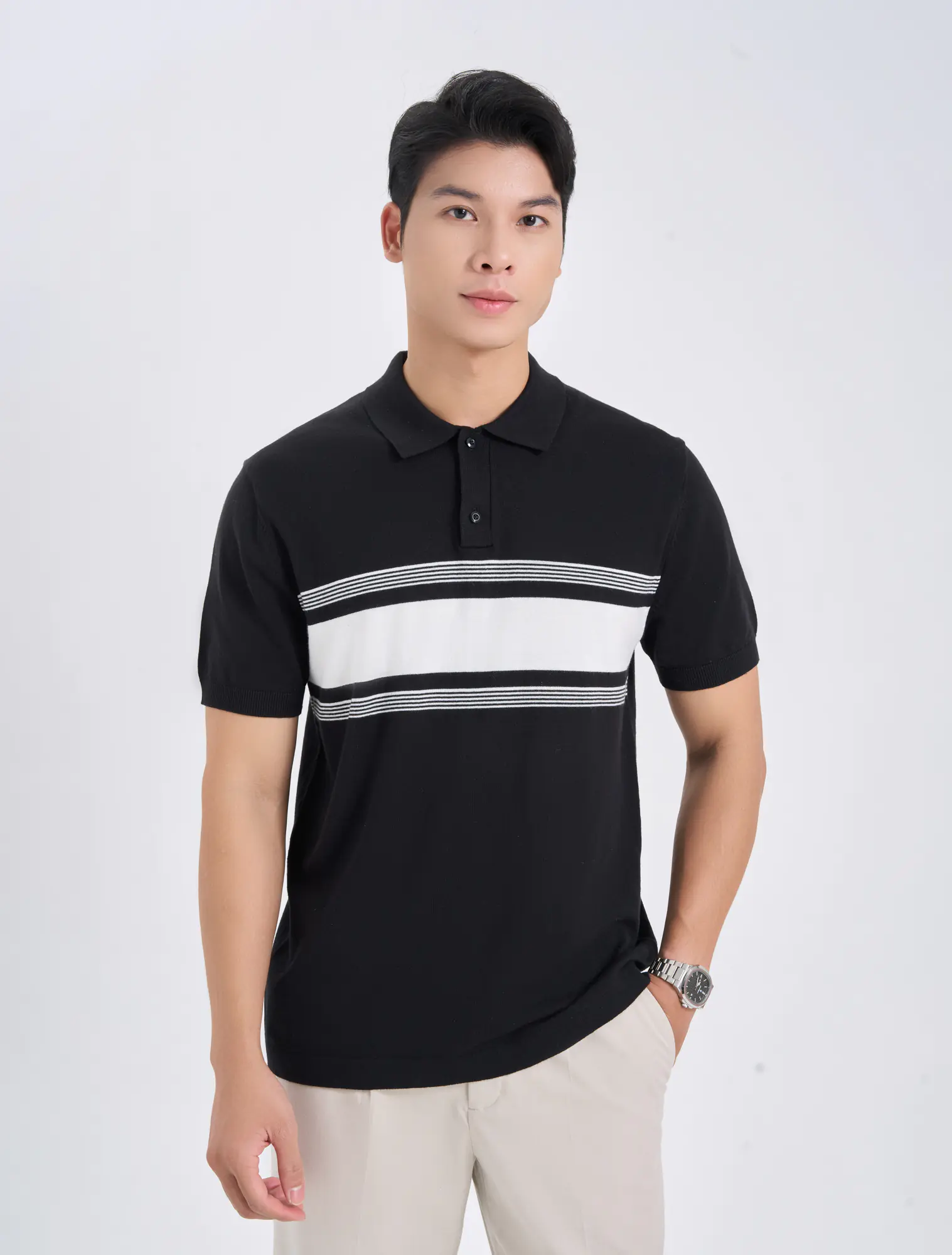 Áo len polo nam phối kẻ được dệt từ sợi cotton acrylic với kiểu dáng suông cộc tay, dáng regular, đặc điểm là phần vai, thân áo và tay áo vừa vặn vào cơ thể nhưng không gây cảm giác bó sát hay khó chịu. Sử dụng chất liệu kết hợp giữa sợi len nhân tạo acrylic và cotton giúp sản phẩm trở nên mềm mại, nhẹ nhàng và thoáng khí.