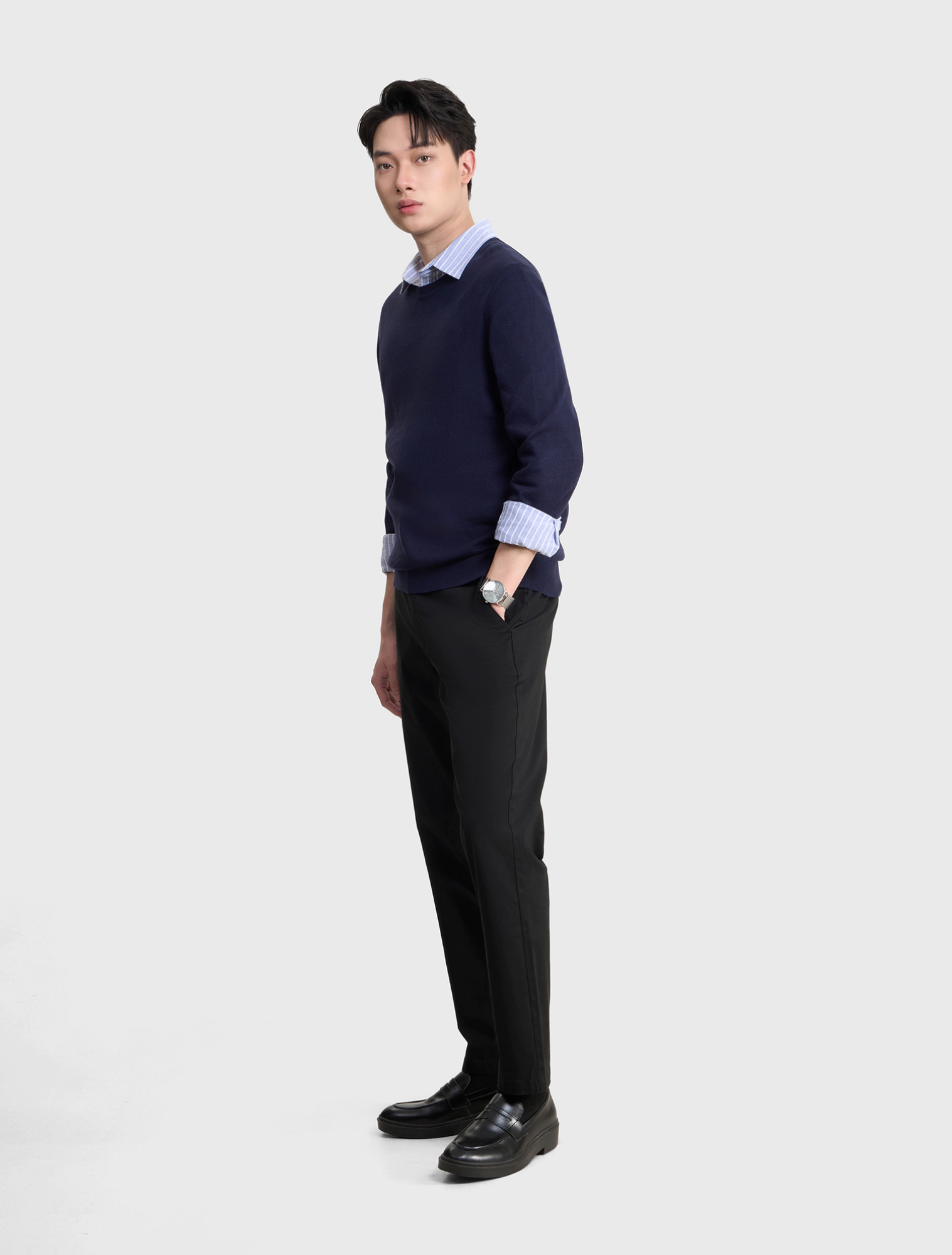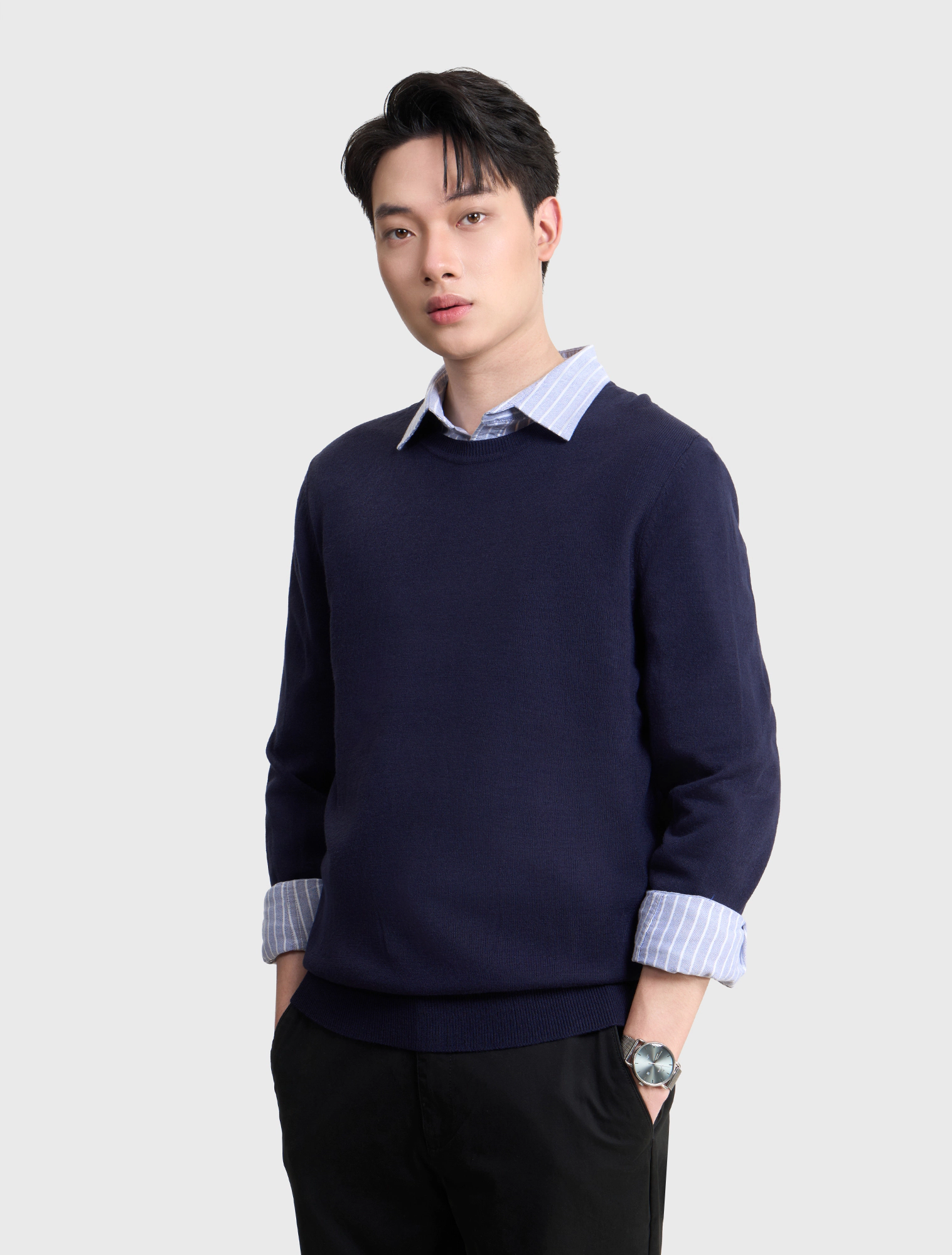 Áo len trơn cổ tròn. Thân áo và tay áo thiết kế ôm nhẹ vào người đem đến cảm giác gọn gàng, lịch sự. Giữ ấm tốt, co giãn tốt, mềm mịn, bền đẹp, dễ bảo quản