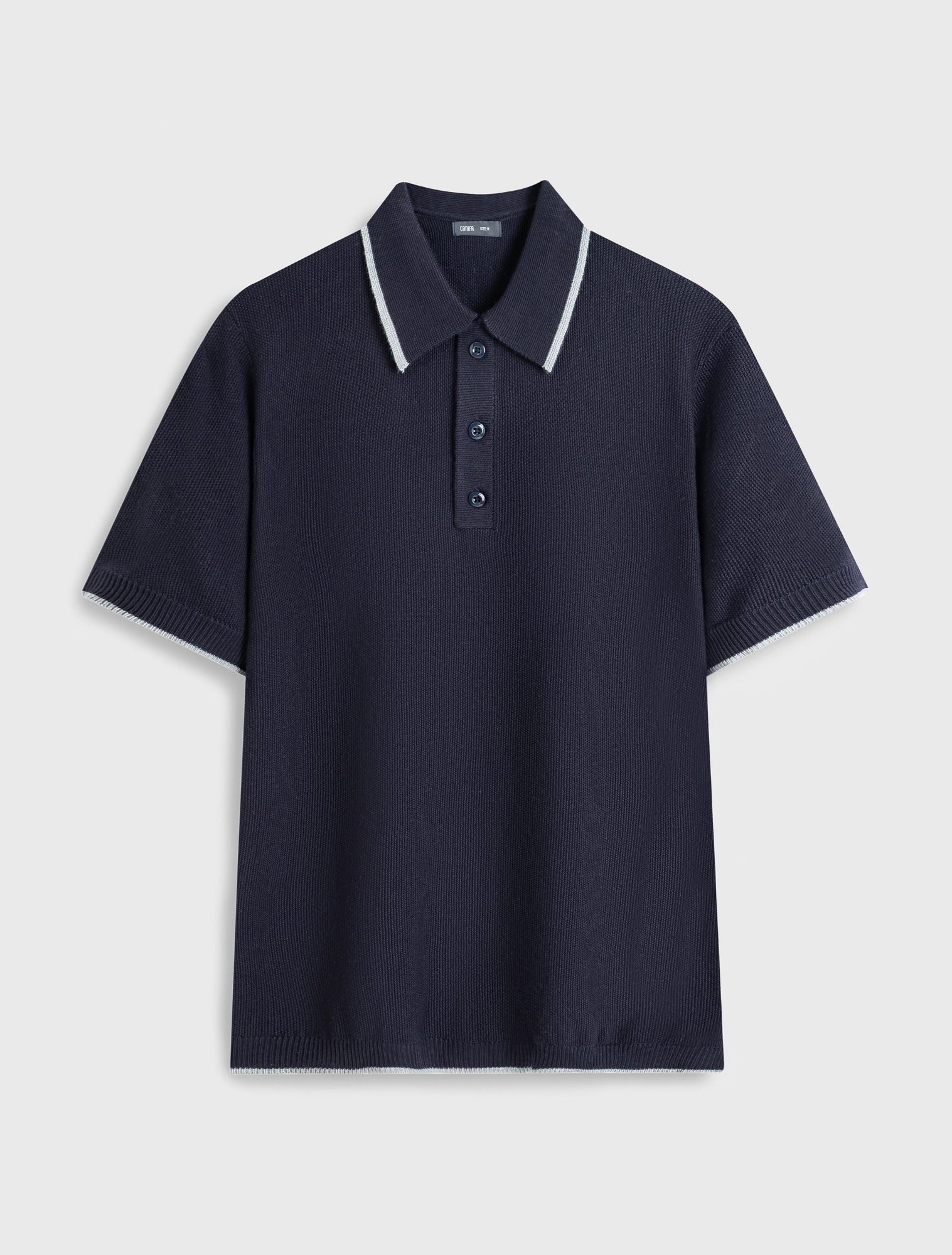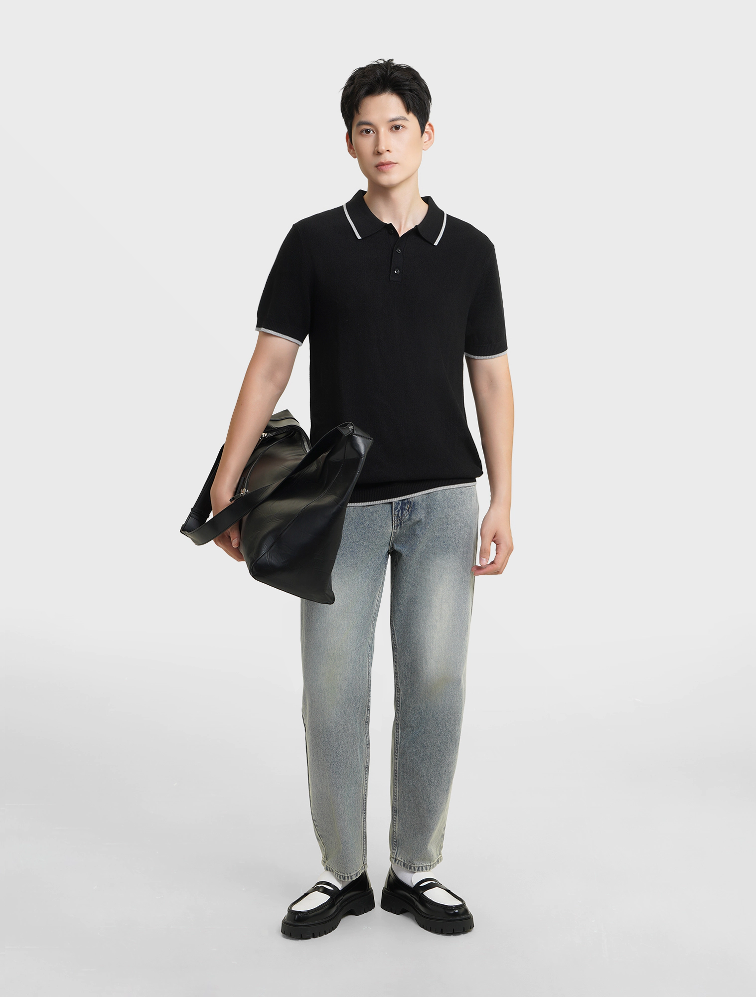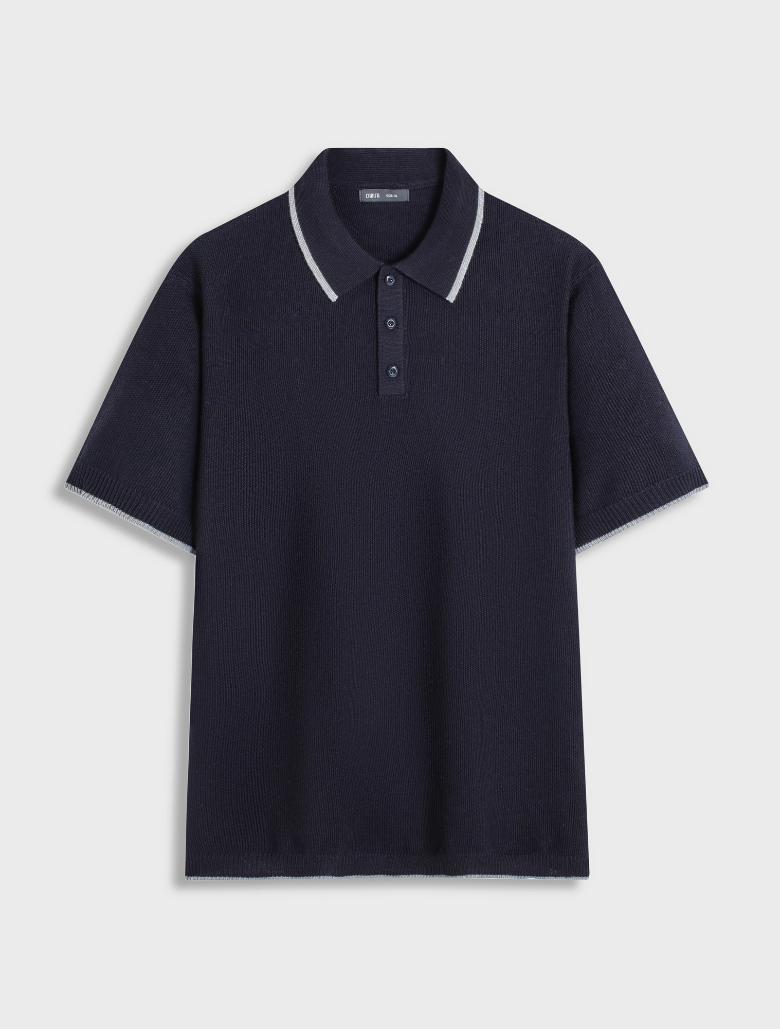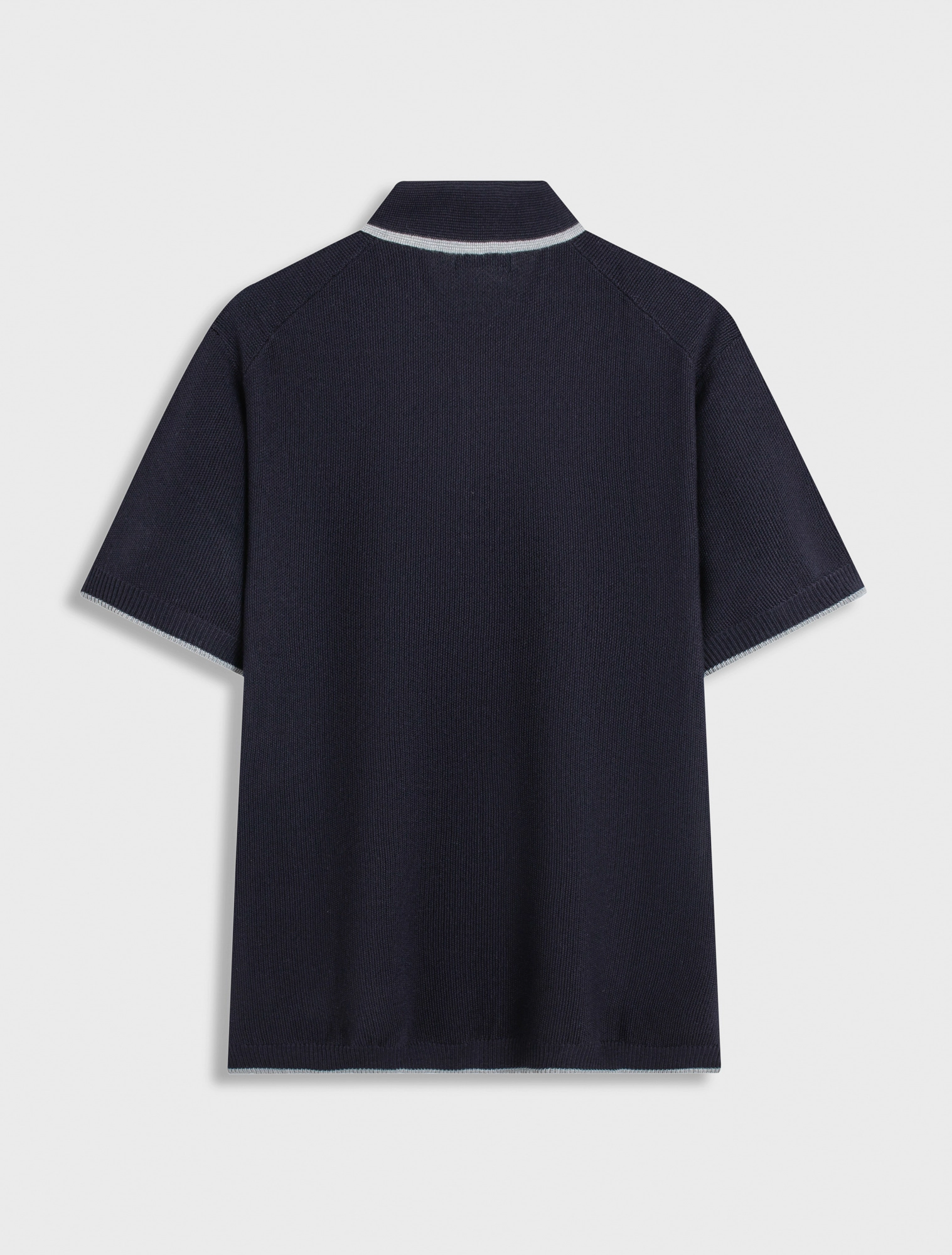 Áo len nam ngắn tay, cổ polo, dáng regular, mang phong cách hiện đại.