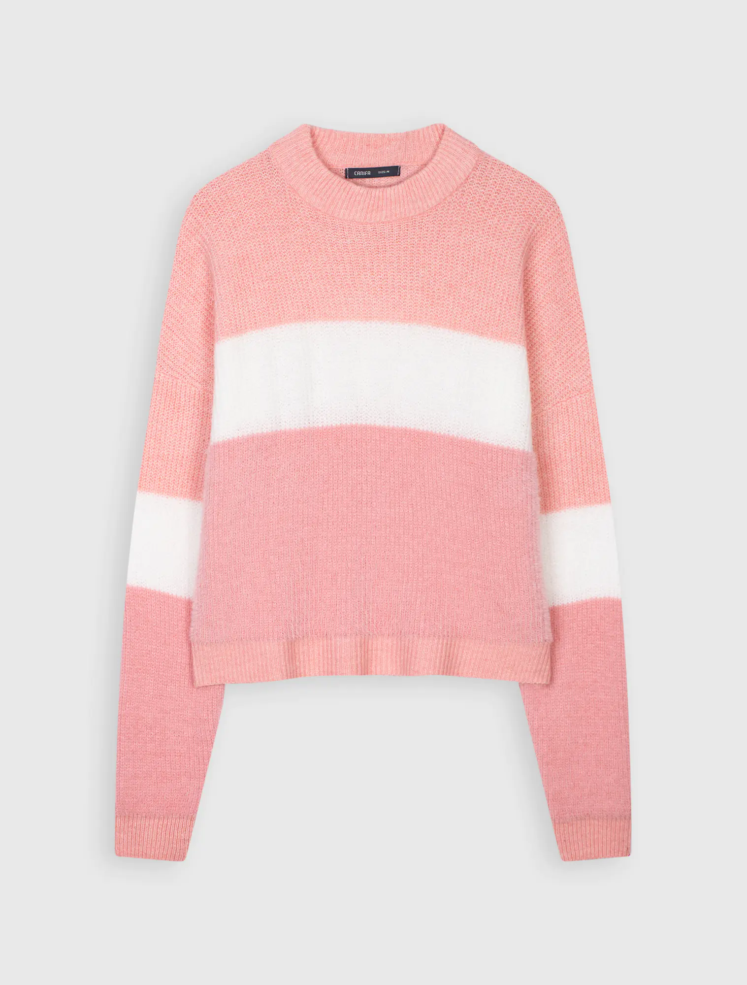 Áo len chất liệu pha Acrylic polyester nylon, phối kẻ, dáng rộng