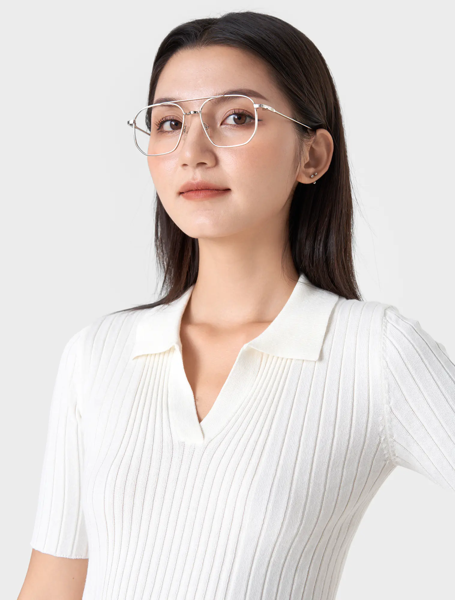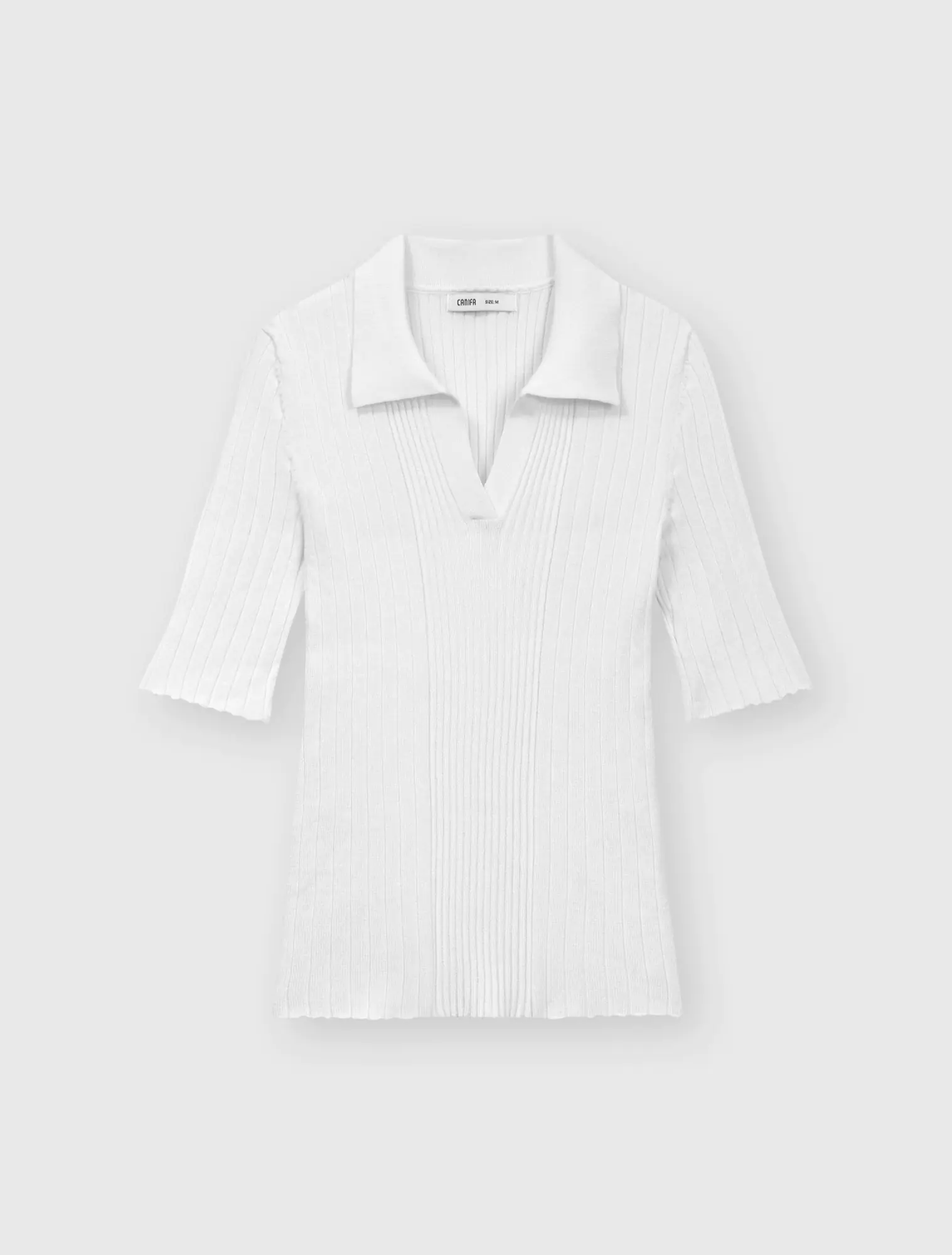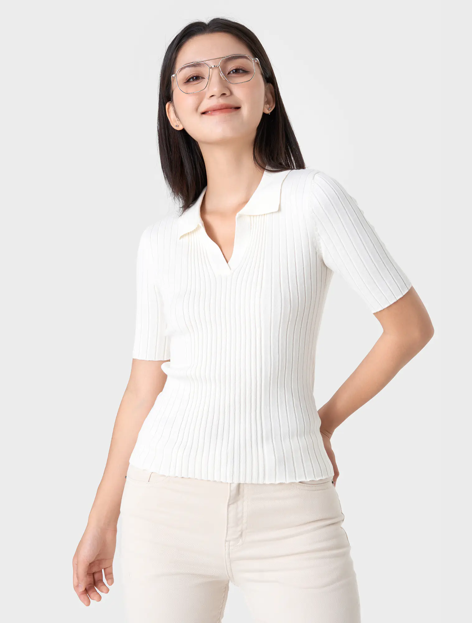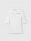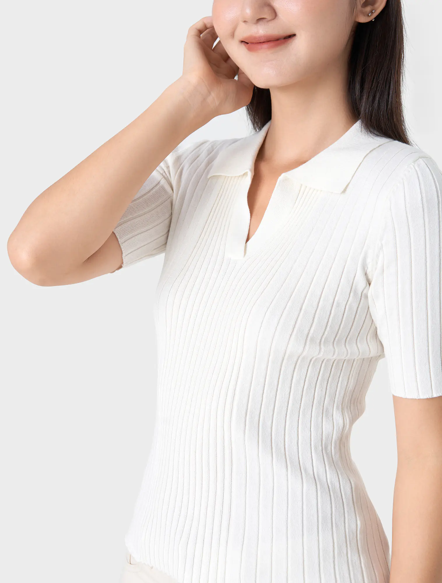 Áo len cổ polo tay lửng, phom dáng ôm vừa, chất liệu mềm mại, thoải mái.
