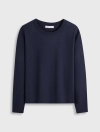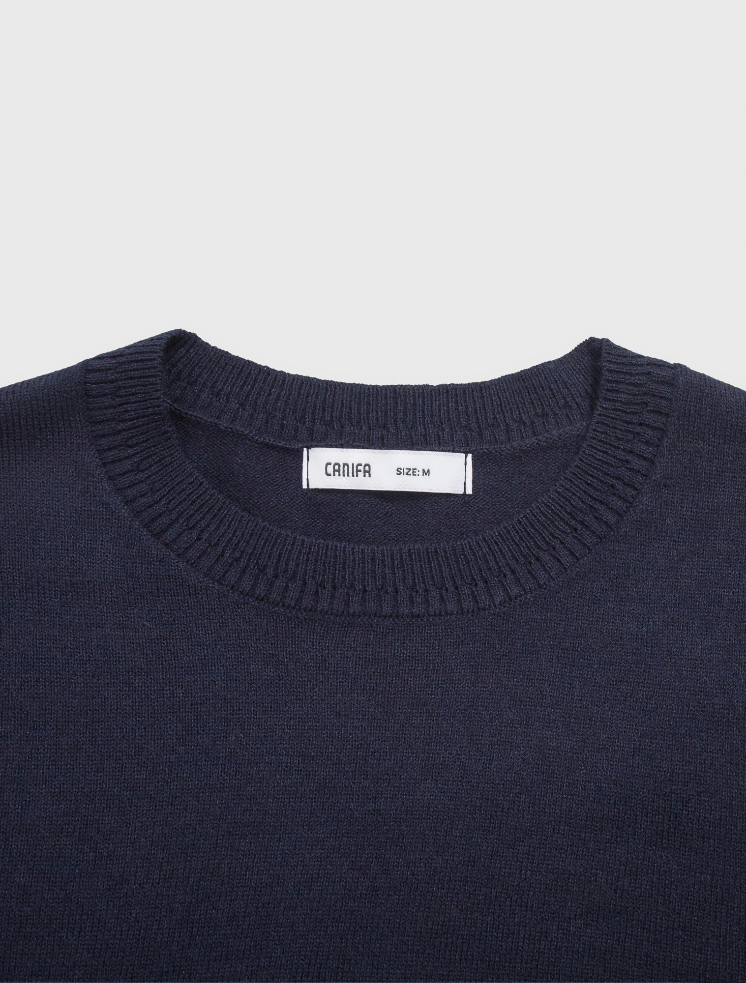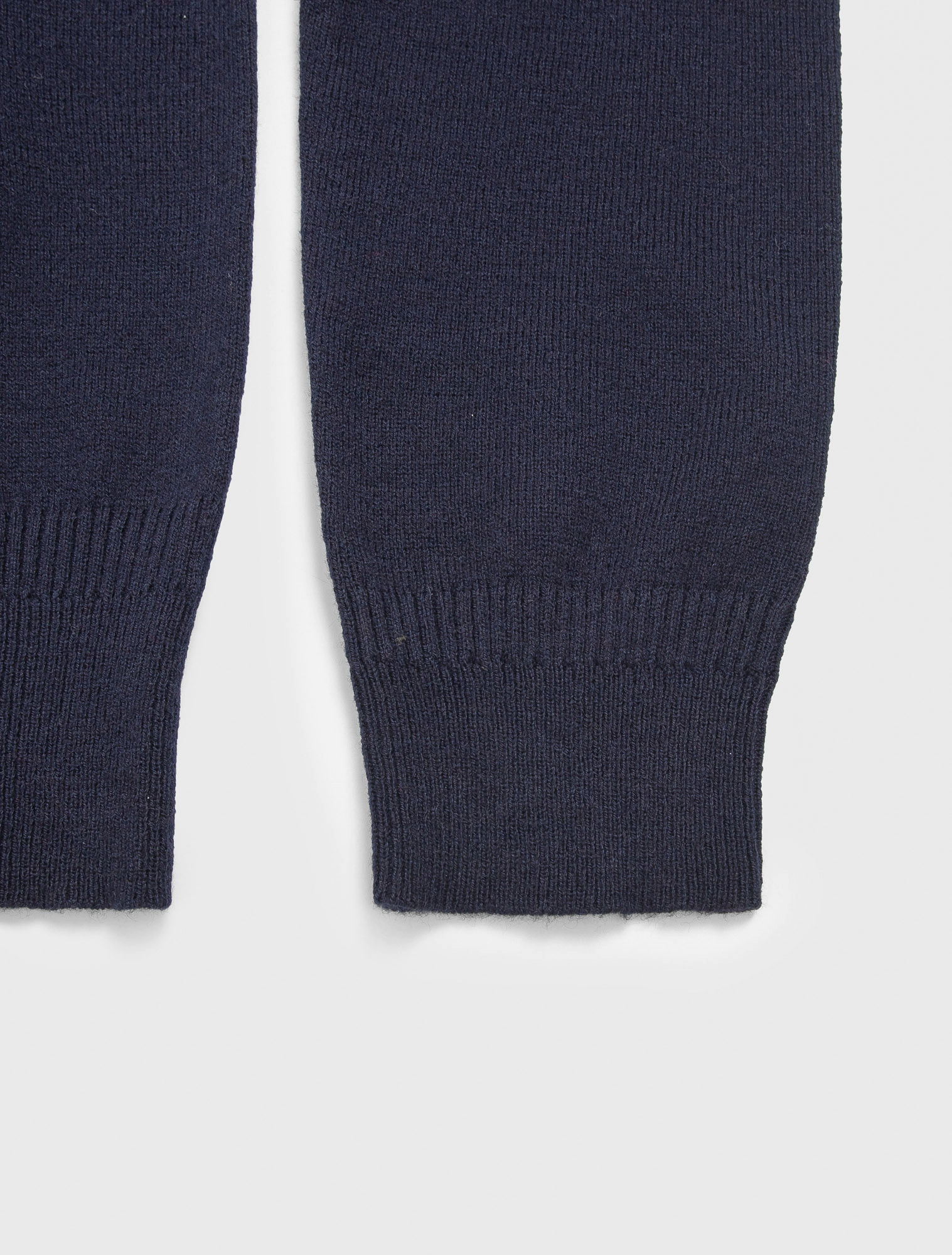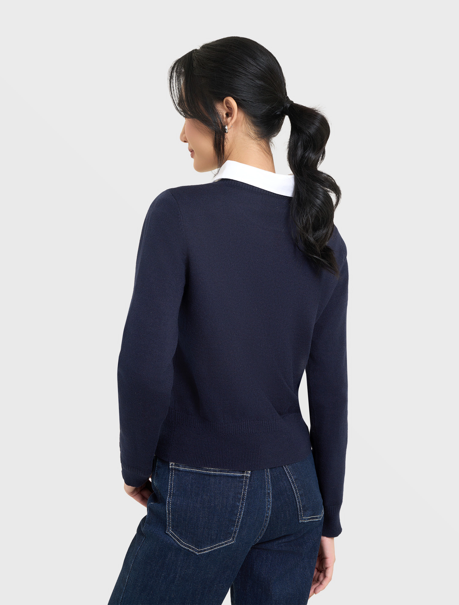 Áo len nữ dài tay cổ tròn,dáng rộng vừa, chi tiết kiểu ở cổ tay và gấu áo.