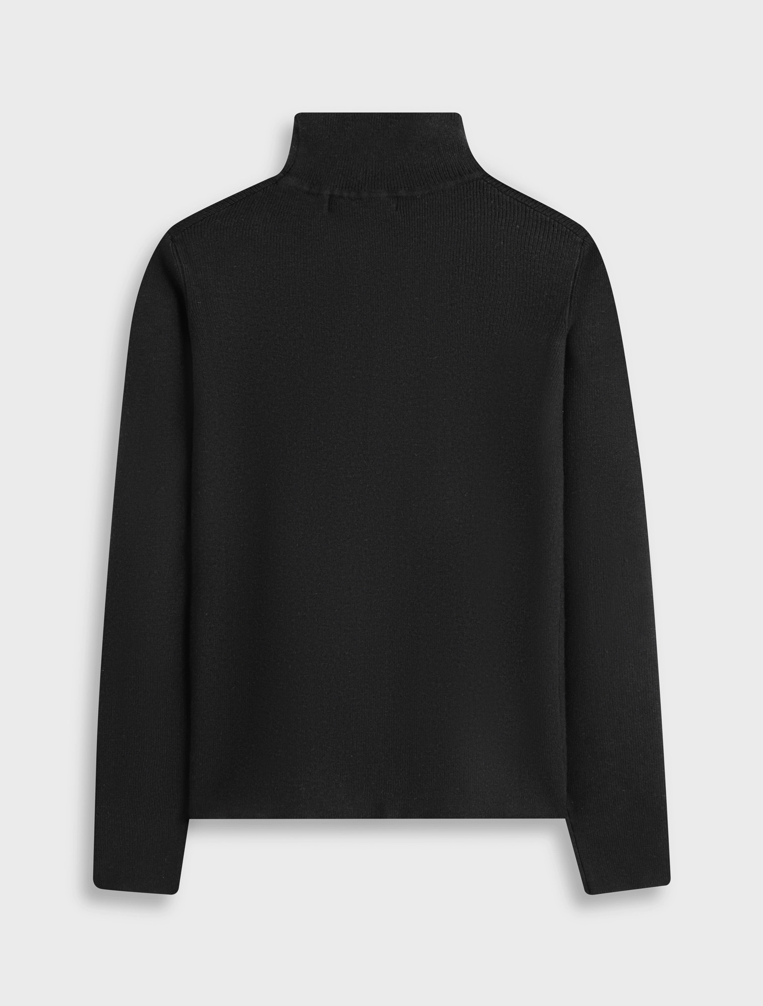 Áo len dài tay nữ cổ leo dáng ôm vừa, chất liệu mềm mại, thoải mái.