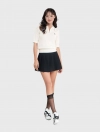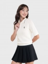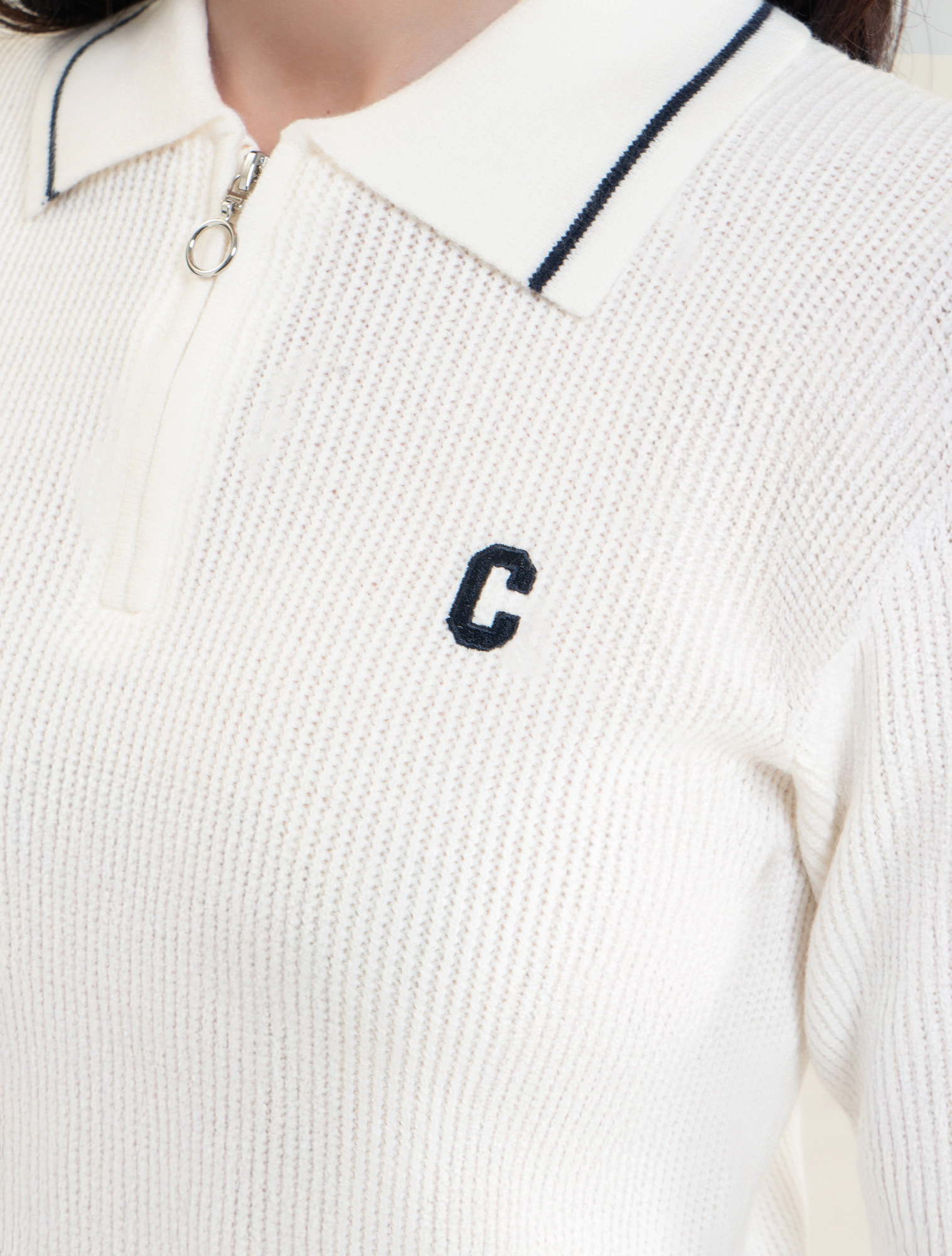 Áo len cổ polo, kéo khóa, tay ngắn, phối màu. Áo dáng rộng vừa, chất liệu mềm mại, ấm áp, hoàn cảnh sử dụng linh hoạt.