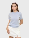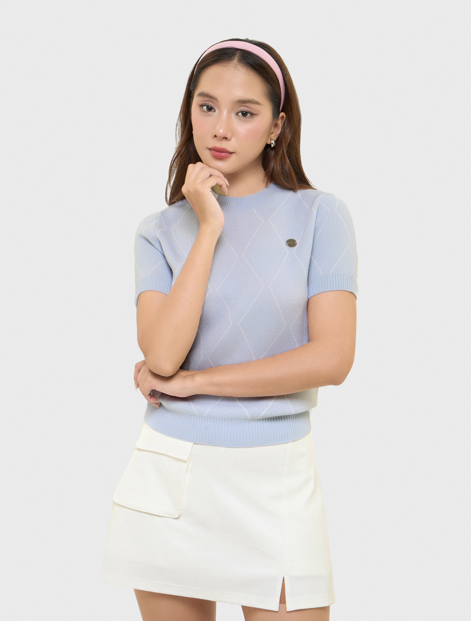 Áo len cộc tay nữ cổ tròn dáng rộng vừa, dệt họa tiết. Chất liệu mỏng nhẹ, có khả năng giữ ấm tốt.