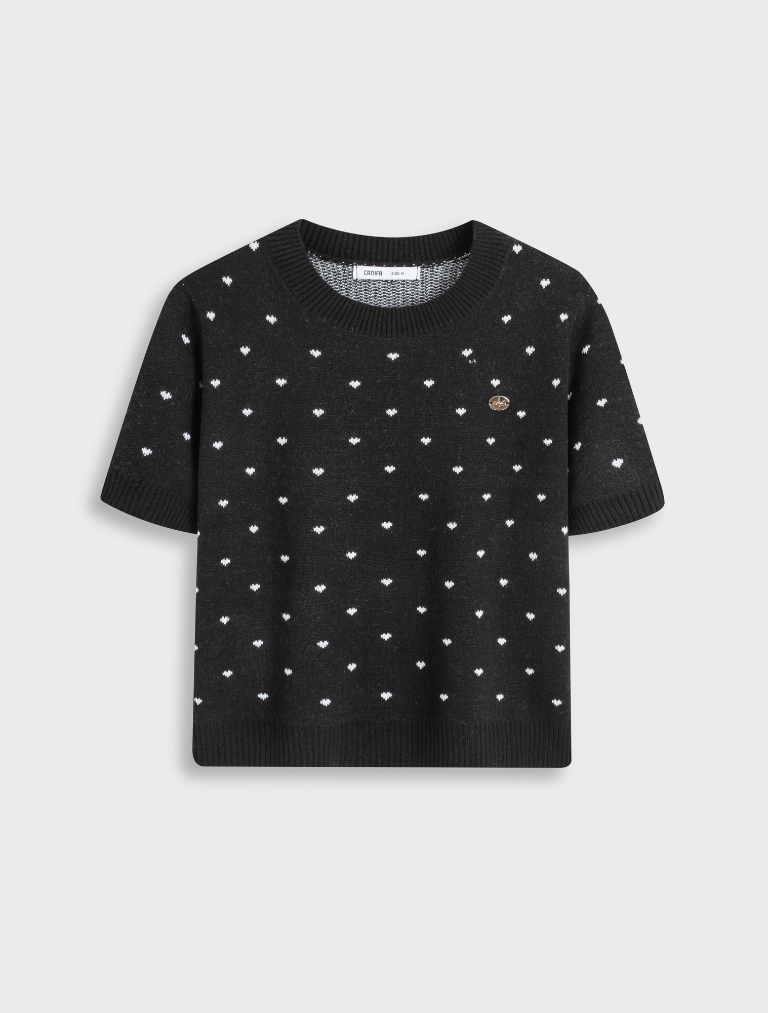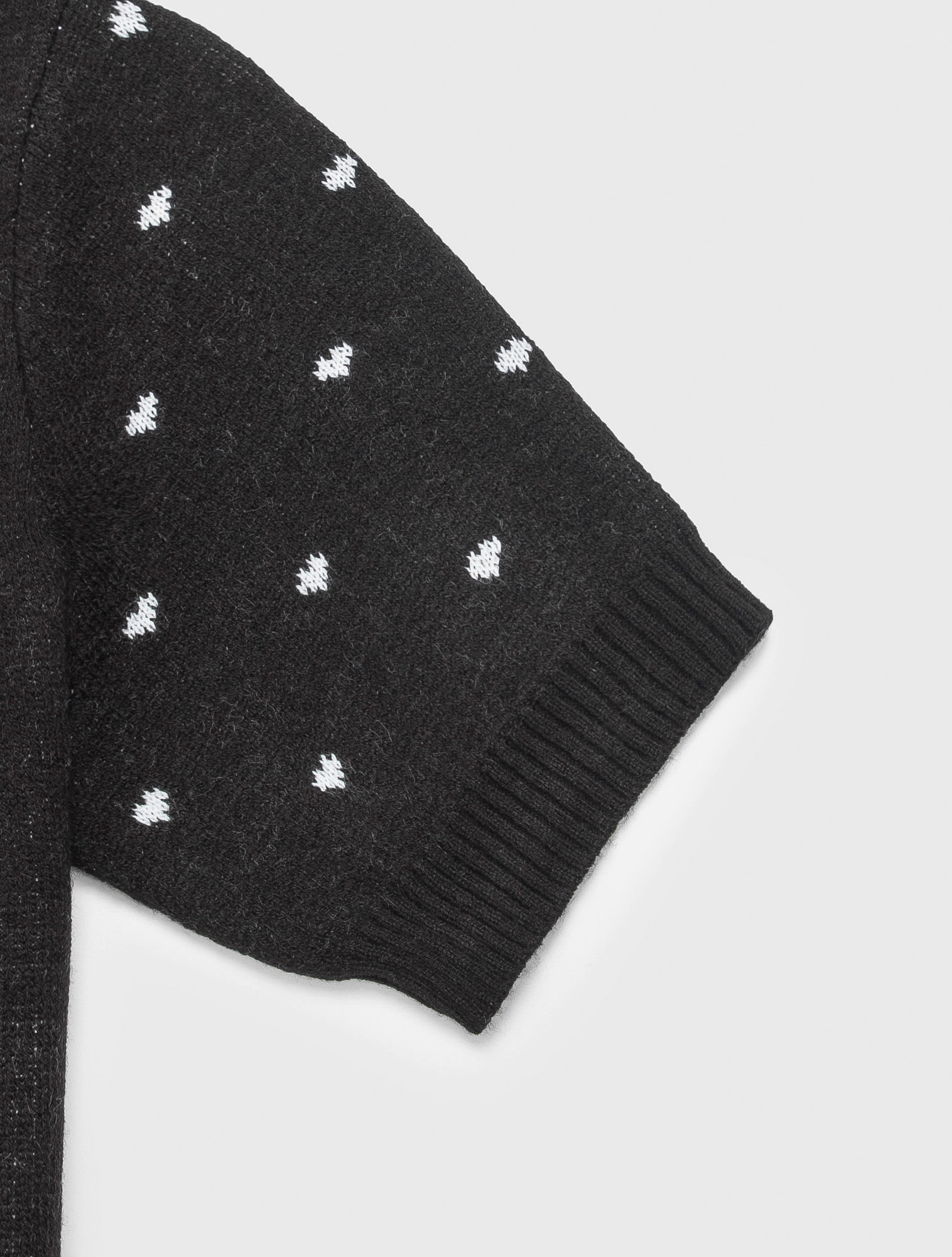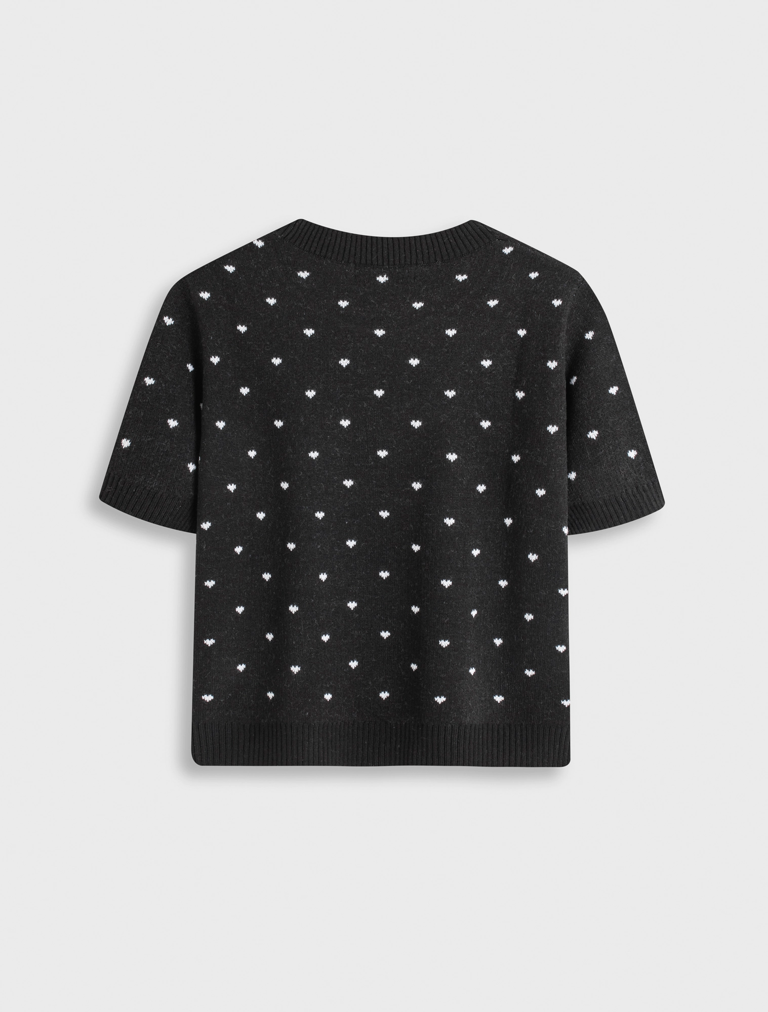 Áo len cộc tay nữ cổ tròn dáng rộng vừa, dệt họa tiết. Chất liệu mỏng nhẹ, có khả năng giữ ấm tốt.