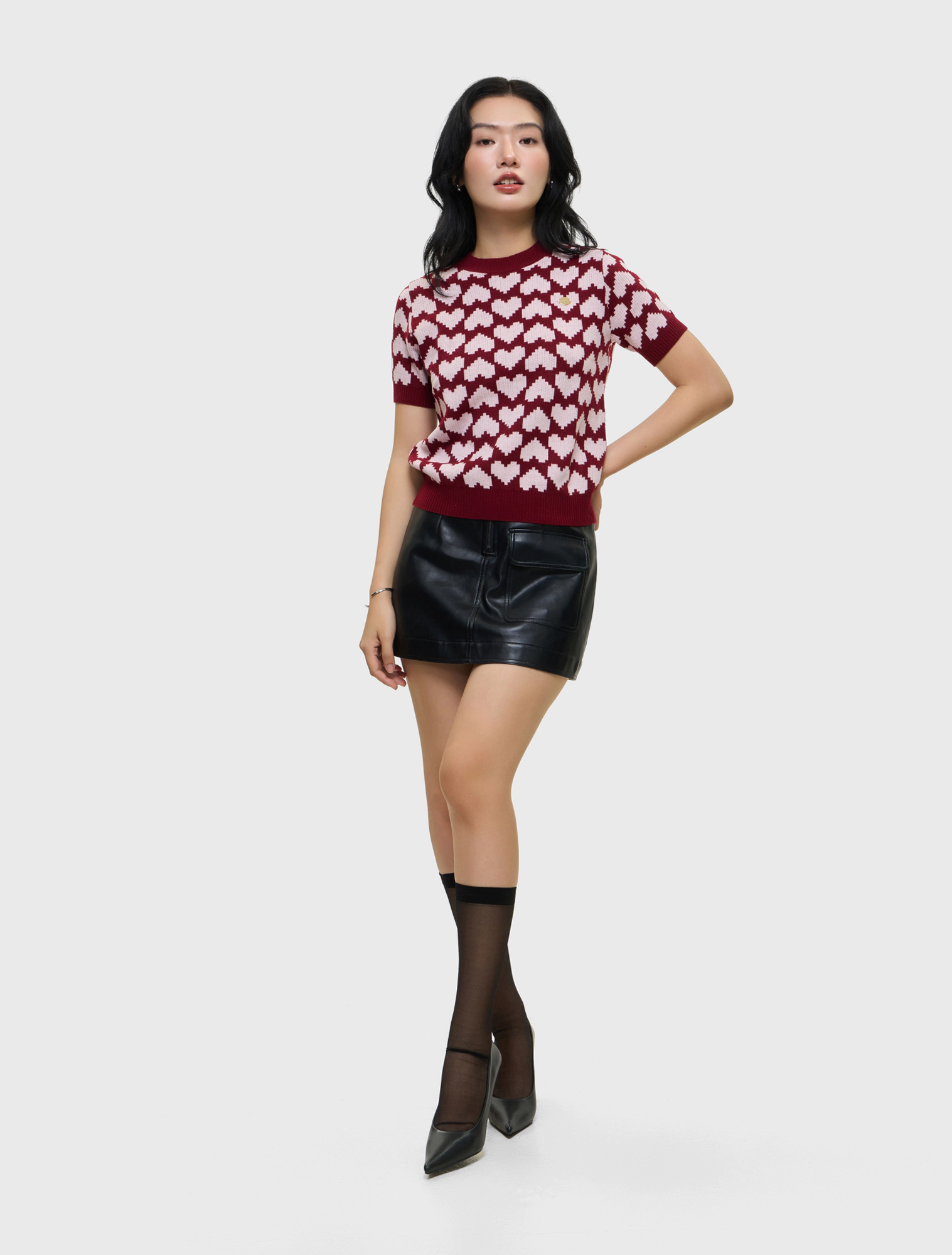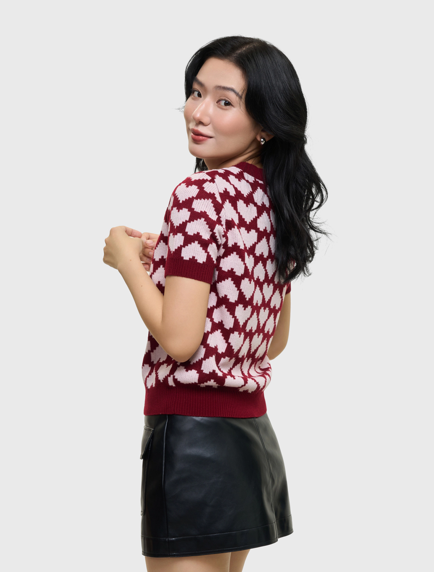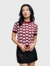 Áo len cộc tay nữ cổ tròn dáng rộng vừa, dệt họa tiết. Chất liệu mỏng nhẹ, có khả năng giữ ấm tốt.
